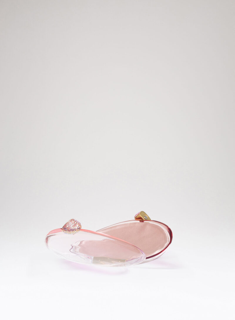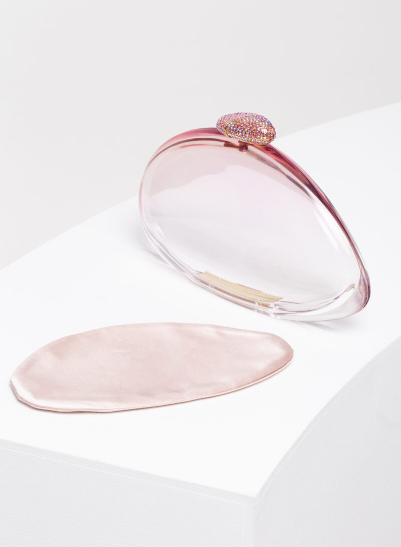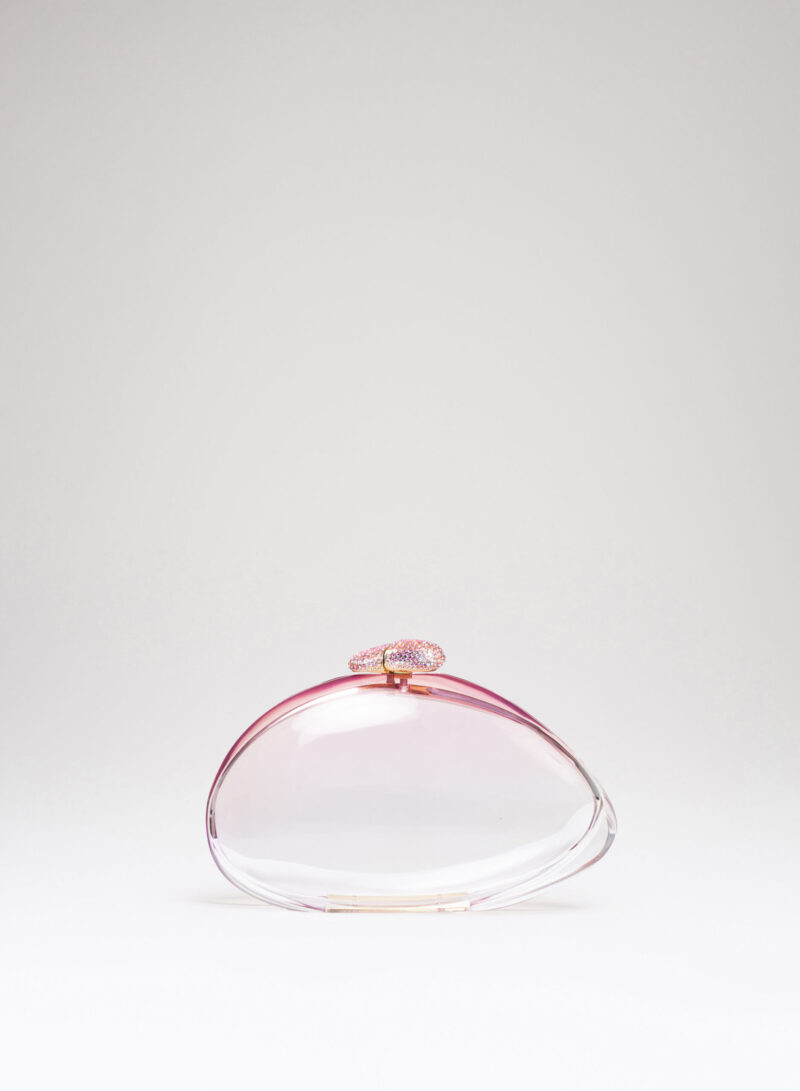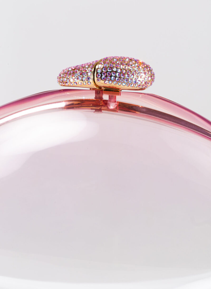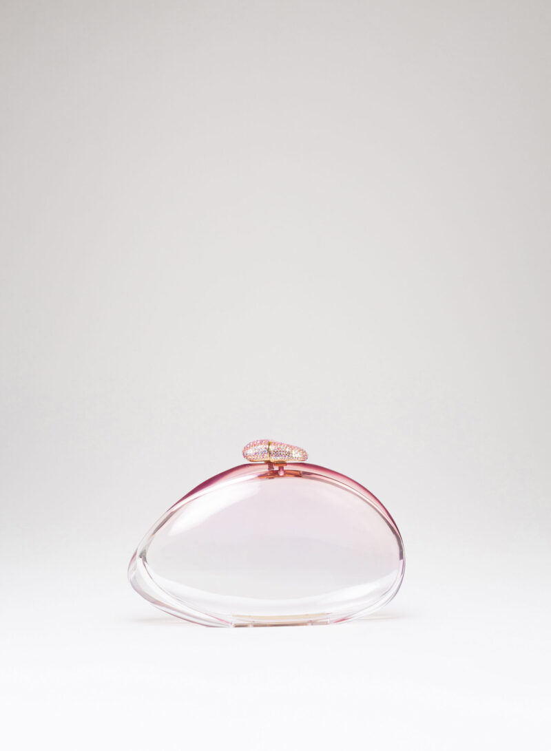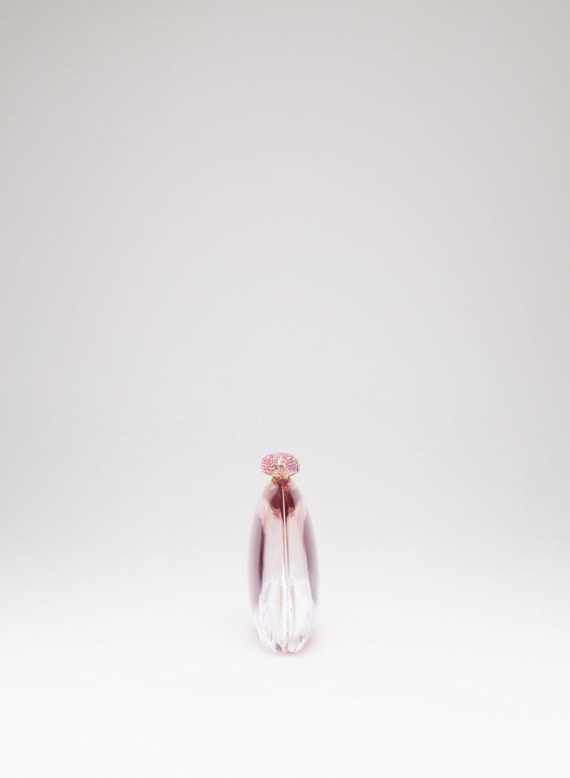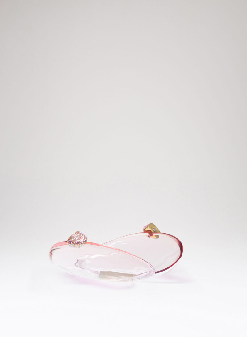Una bolla d’aria e di colore che è il risultato della scultura e della levigatura di pannelli di metacrilato colorato, incollati e stratificati l’uno sull’altro a formare un solo blocco. La maestria di Nando (uno dei primi artigiani a lavorare il metacrilato per farne oggetti d’arte) le fa assumere quella forma aerea, organica. E solo una delicata e accorta lucidatura finale ne rivela le sorprendenti sfumature, donandole alla luce che le attiva e ne rende visibili le trasparenze.