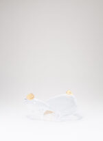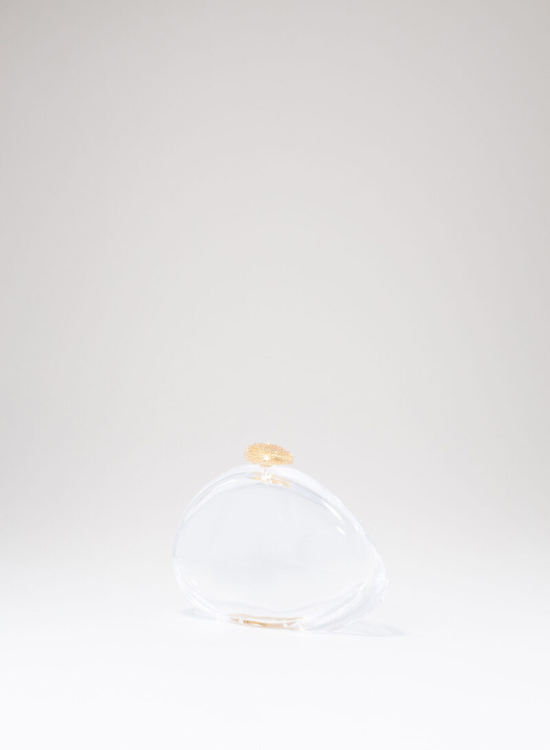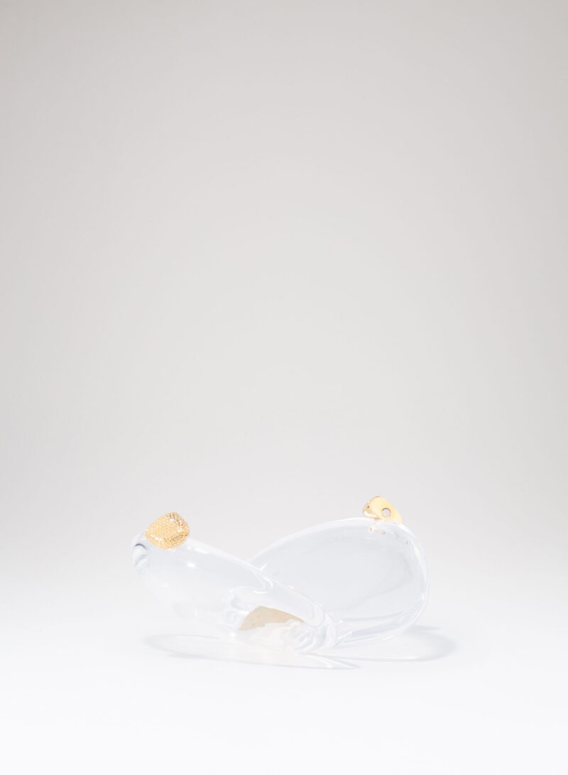 Una bolla d’aria e di colore che è il risultato della scultura e della levigatura di pannelli di metacrilato colorato, incollati e stratificati l’uno sull’altro a formare un solo blocco. La maestria di Nando (uno dei primi artigiani a lavorare il metacrilato per farne oggetti d’arte) le fa assumere quella forma aerea, organica. E solo una delicata e accorta lucidatura finale ne rivela le sorprendenti sfumature, donandole alla luce che le attiva e ne rende visibili le trasparenze.