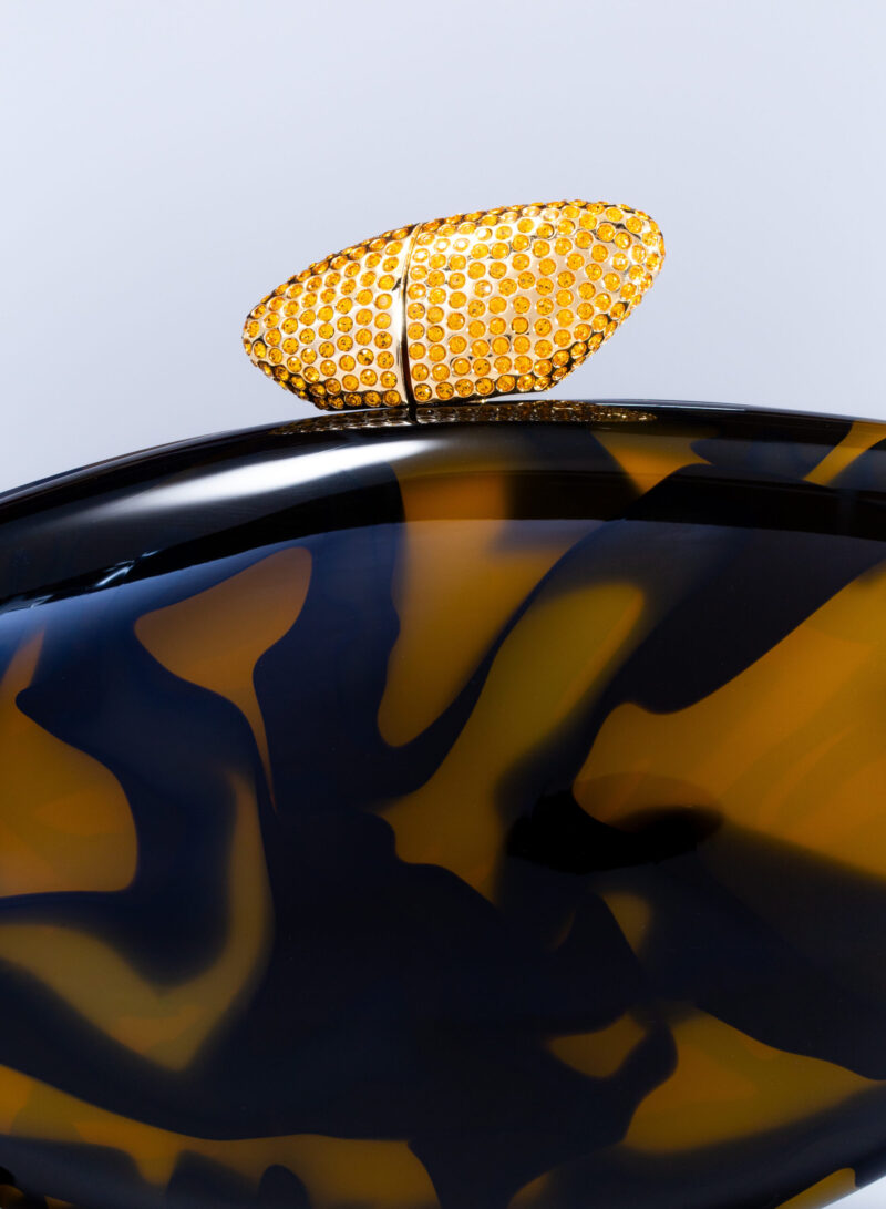 Numerata e prodotta in edizione limitata, come tutte le nostre clutch più preziose, è dotata di un astuccio in raso di seta organica capace di contenere l’essenziale.