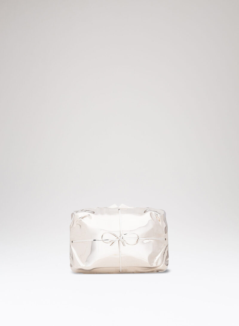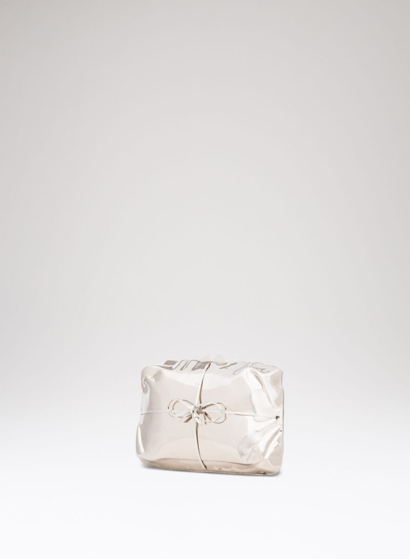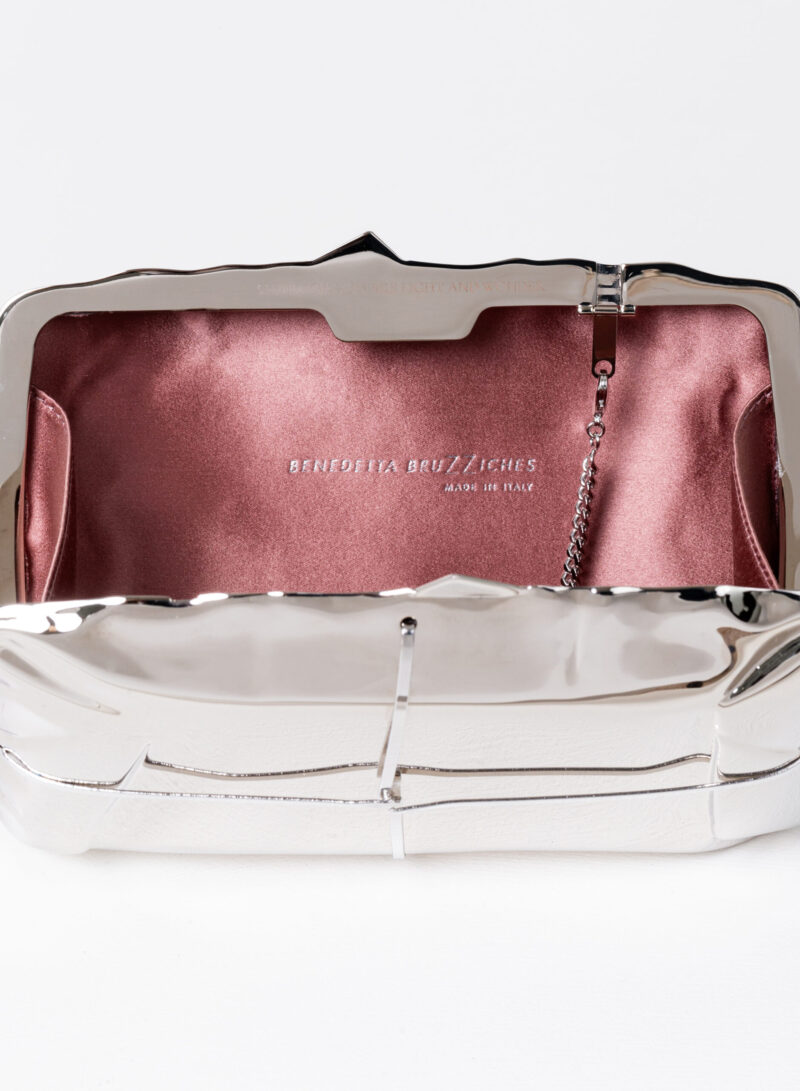Ispirandosi a Gian Lorenzo Bernini, la designer ha realizzato personalmente la scultura in gesso necessaria alla produzione dello stampo di questa speciale clutch rigida.