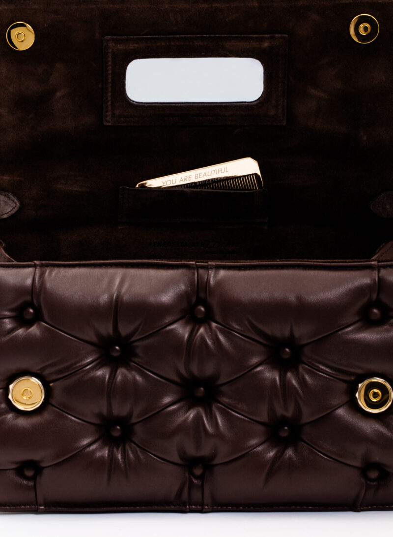 -15%“Non avrei mai pensato che, dopo una delusione d’amore, la cosa migliore che un uomo potesse lasciarmi fosse il mio divano, che è diventato per me una fonte d’ispirazione. Carmen è come una zona di comfort, una borsa progettata per essere abbracciata grazie alla sua morbida lavorazione capitonné. È un talismano di bellezza e resilienza che nasconde all’interno un piccolo specchietto: perché anche dopo la fine di una relazione, puoi conquistare il mondo.”