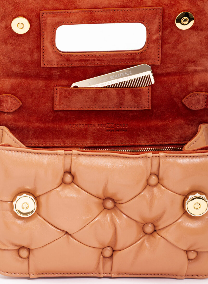 -15%“Non avrei mai pensato che, dopo una delusione d’amore, la cosa migliore che un uomo potesse lasciarmi fosse il mio divano, che è diventato per me una fonte d’ispirazione. Carmen è come una zona di comfort, una borsa progettata per essere abbracciata grazie alla sua morbida lavorazione capitonné. È un talismano di bellezza e resilienza che nasconde all’interno un piccolo specchietto: perché anche dopo la fine di una relazione, puoi conquistare il mondo.”