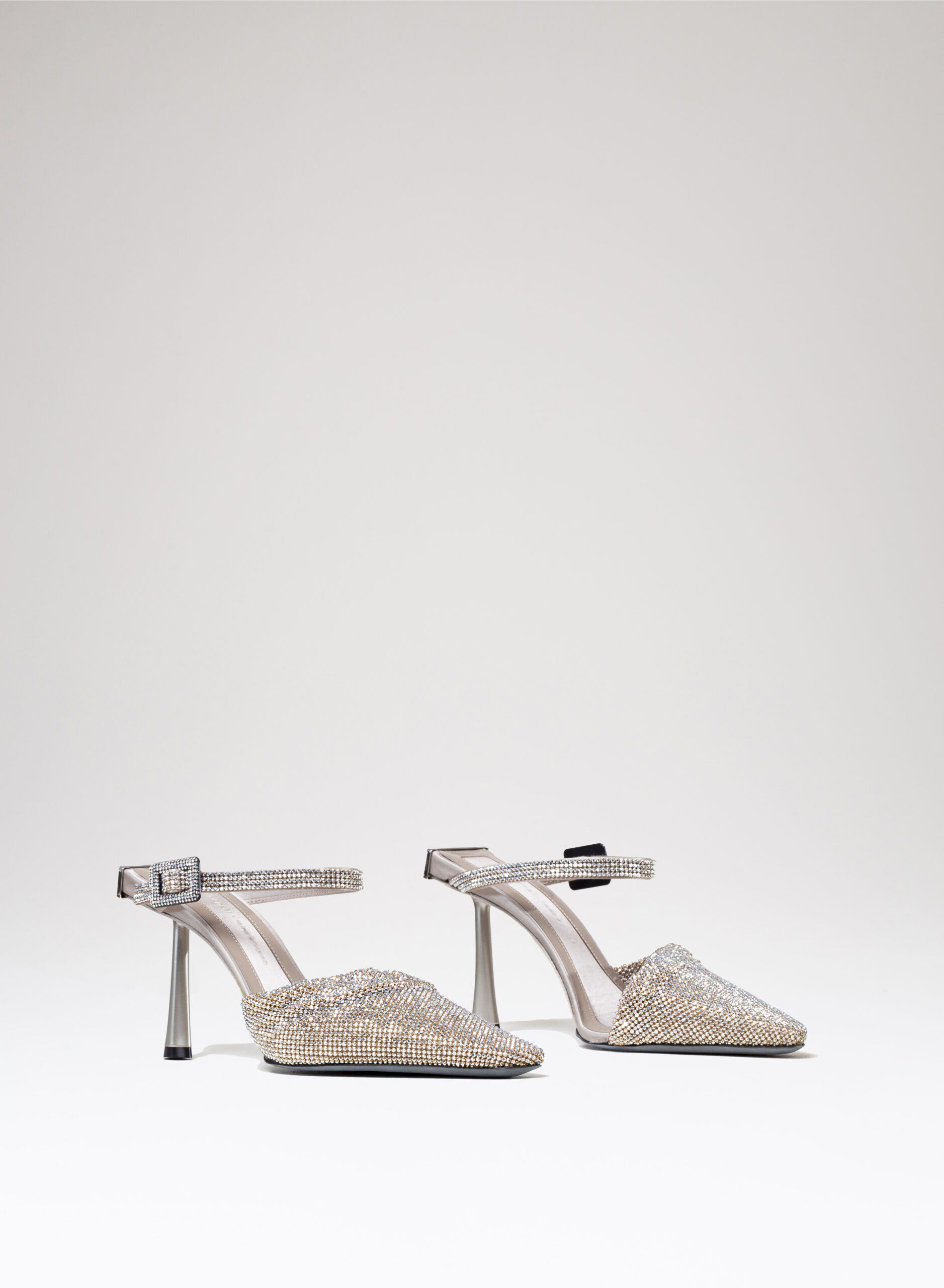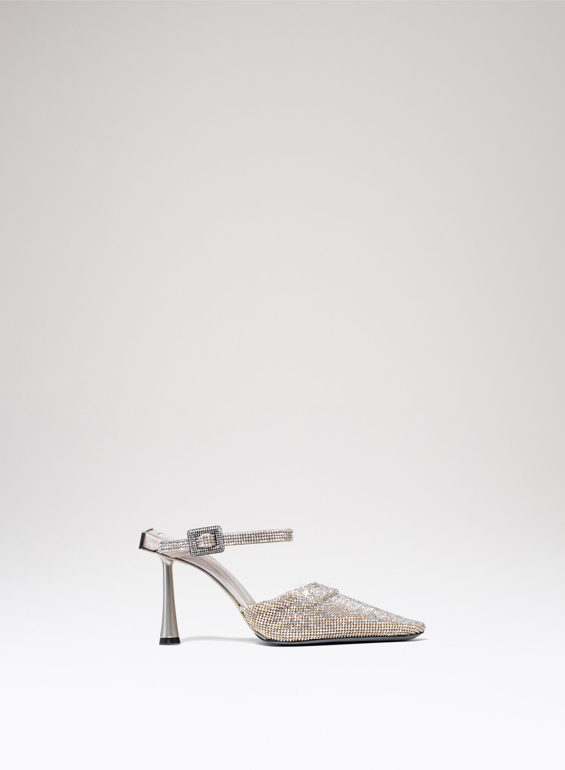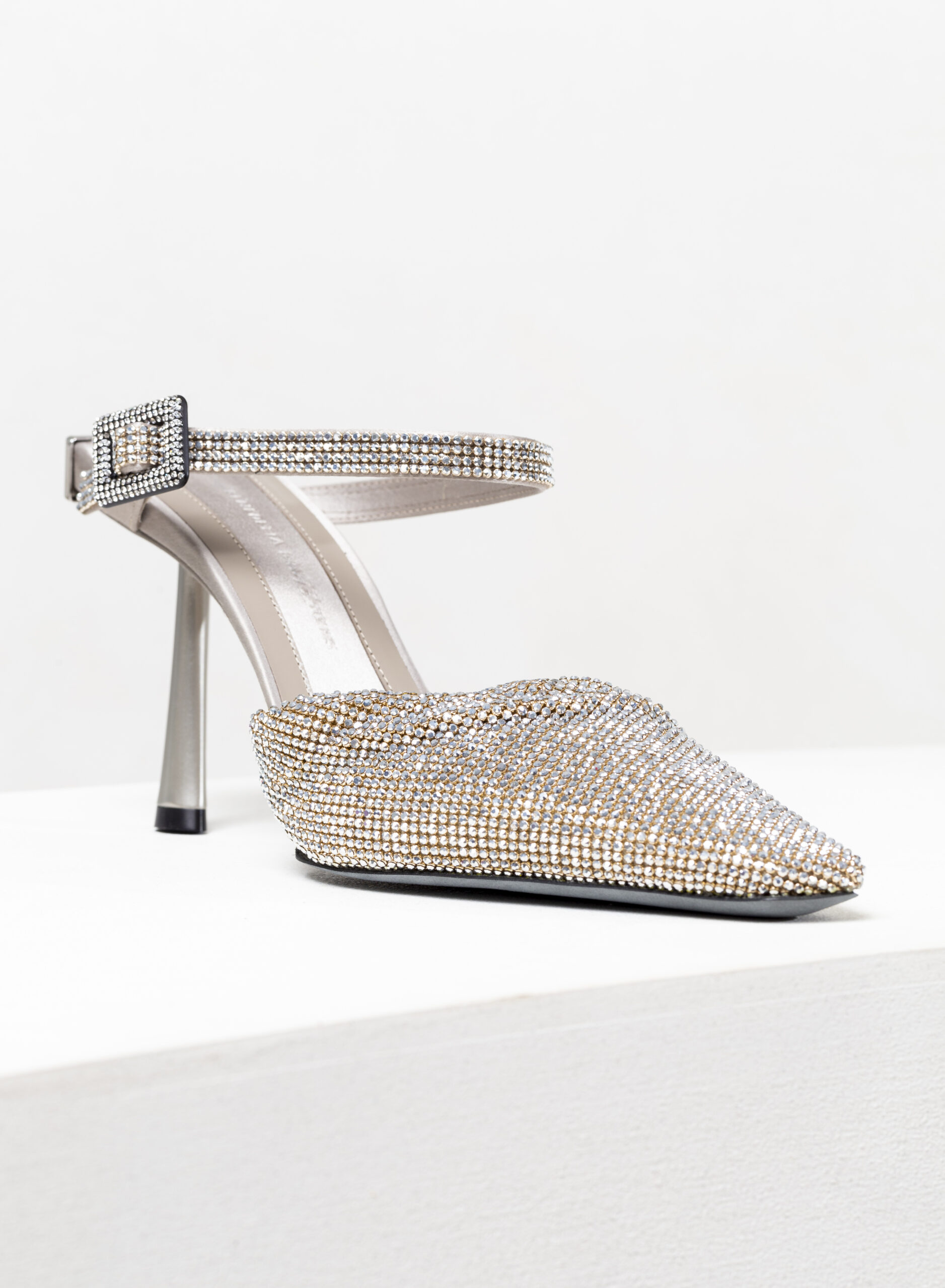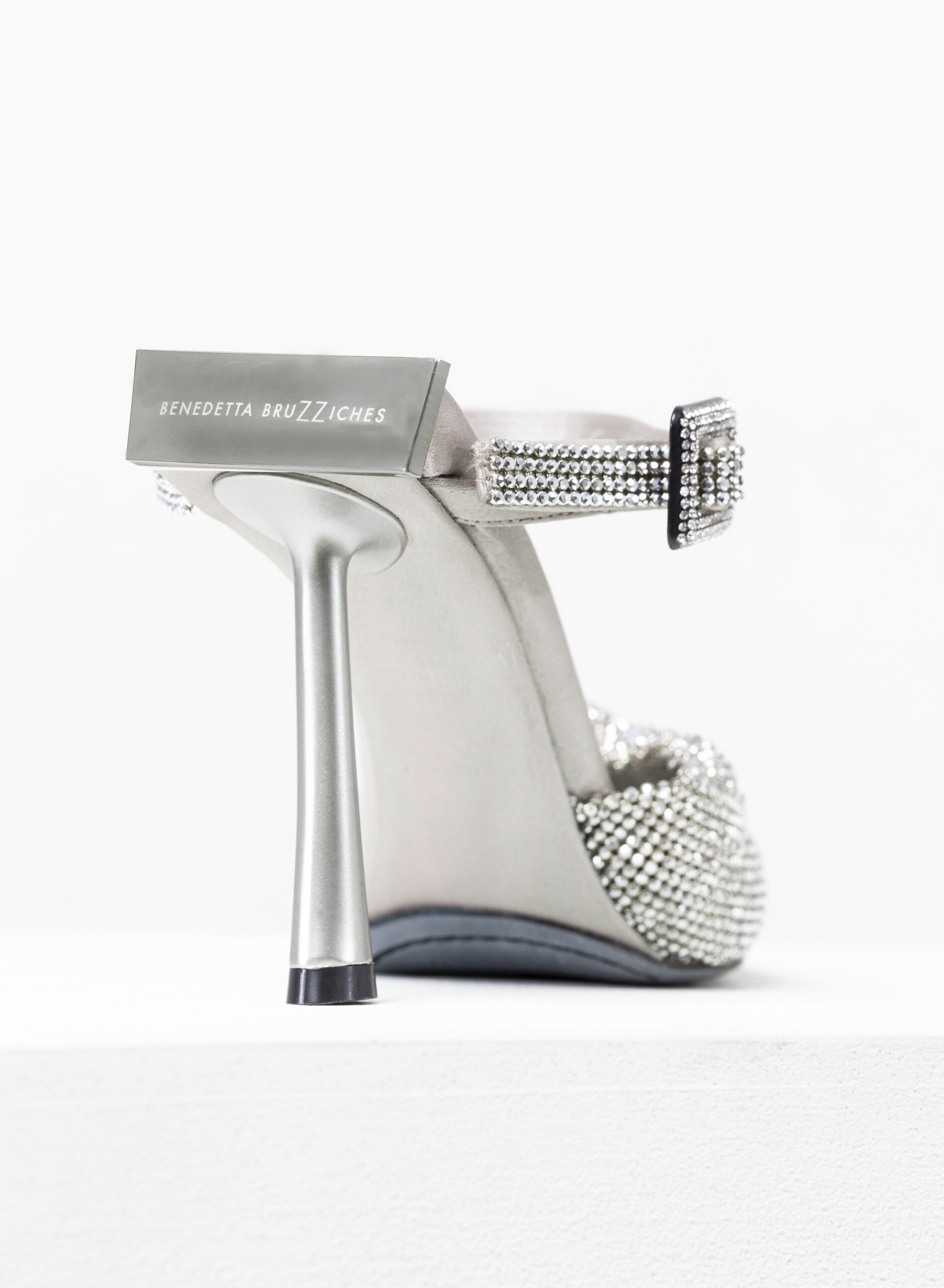 I miei amici piĂ¹ cari hanno rischiato di ignorare l’esistenza di Elena Ferrante, una delle scrittrici italiane piĂ¹ misteriose e con un talento inarrivabile. Elena ricorda la creativitĂ e la genialitĂ di un’artista che ha sempre nascosto la sua identitĂ con uno pseudonimo, ma che continua ad affascinarmi con la sua allure misteriosa. Elena è una creazione con una struttura rivestita in raso ed una tomaia in maglia metallica con cristalli. Il tacco di questo object d’heart richiama la forma della mia iconica Ariel. Completa la scarpa un elegante cinturino con fibbia ricoperta di cristalli.