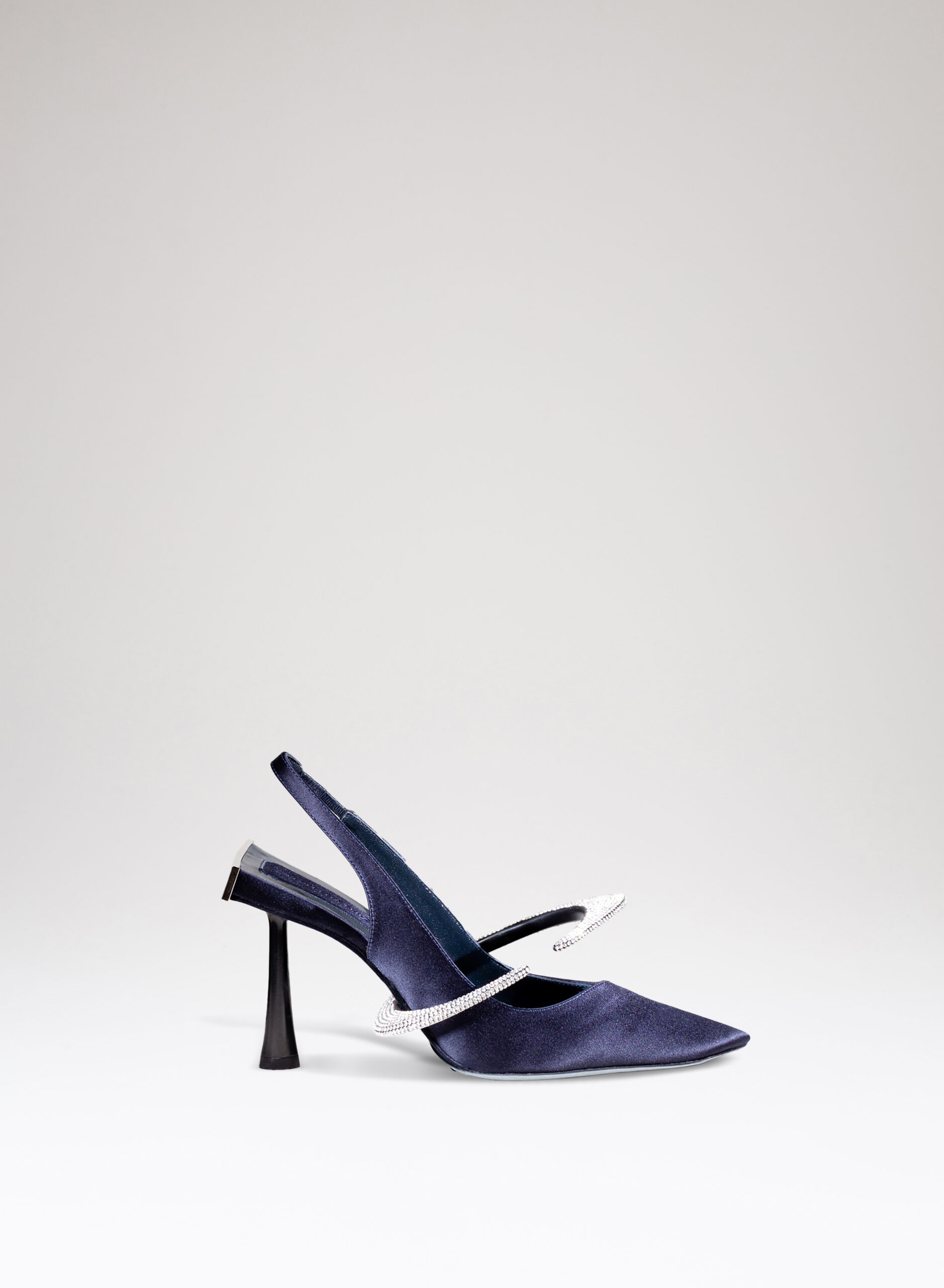 Un object d’heart che ridefinisce completamente il concetto di scarpa, una creazione che sovverte le regole proprio come Elsa Morante, la geniale scrittrice che affermava con orgoglio: “Un vero scrittore è colui che di tutto si interessa, fuorché di letteratura”. Elsa è anticonformista, non segue nessuna regola, stupisce con il suo dettaglio in alluminio e non segue nessuna strada già percorsa. Elsa è una creazione con una struttura rivestita in raso. Il tacco di questo object d’heart richiama la forma della mia iconica Ariel. Il dettaglio in alluminio a forma di manetta rende questa scarpa una vera e propria scultura.