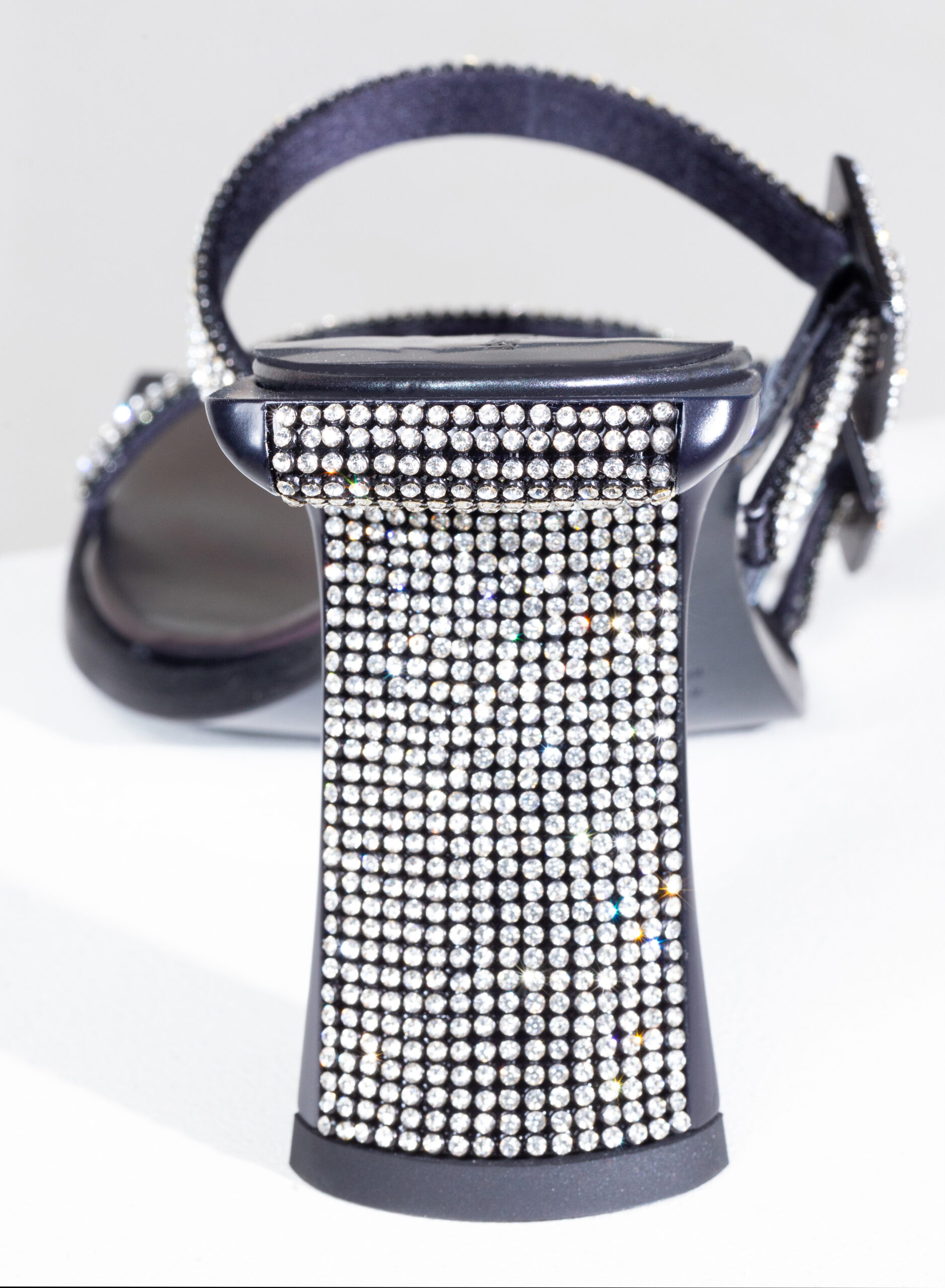Ewa è un sandalo che incarna l’essenza della poesia, della fisica, della matematica, dell’architettura e dell’anatomia, intrecciate in modo armonioso per creare un capolavoro unico e innovativo. La struttura di Ewa è una testimonianza della sua straordinaria leggerezza ed evoca la sensazione di camminare su veli di foglie. Il tacco di 8 cm invita a vivere un poetico viaggio ad ogni passo. Realizzata a mano da maestri calzolai, Ewa vanta una meticolosa attenzione ai dettagli e l’utilizzo di materiali di altissima qualitĂ . Due fasce di raso ricoperte di crystal mesh abbracciano elegantemente il piede, mentre il tacco inclinato diventa un palcoscenico…