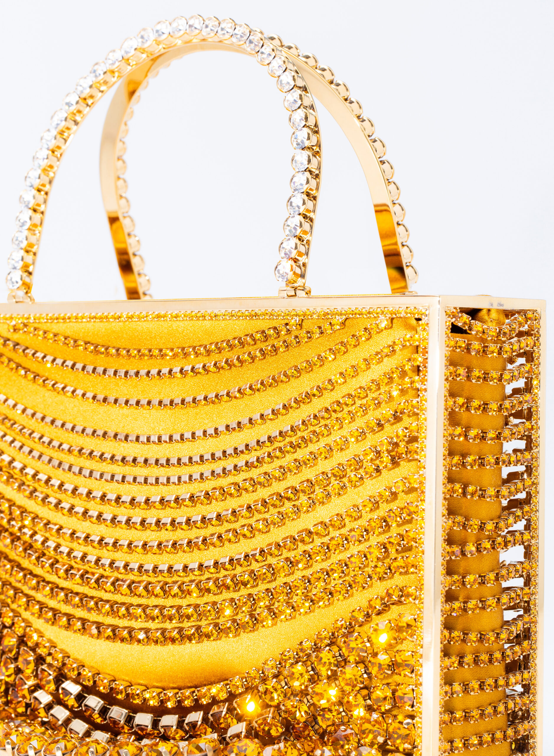 Come si dice a una donna che il destino non è una gabbia ma un volo, e che dalle catene si possono fare altalene? Come si dice a una donna che, se solo ne avesse voglia davvero, potrebbe volare? Omaggio alla Giulietta felliniana che ha saputo tramutare le ombre in luci e gioie. La micro tote Giulietta degli Spiriti è completamente realizzata a mano dai nostri artigiani orafi di Arezzo, adornata con un elegante degradé di catene di cristalli di varie dimensioni. All’interno ospita un sacchetto di morbida organza per contenere gli effetti personali.