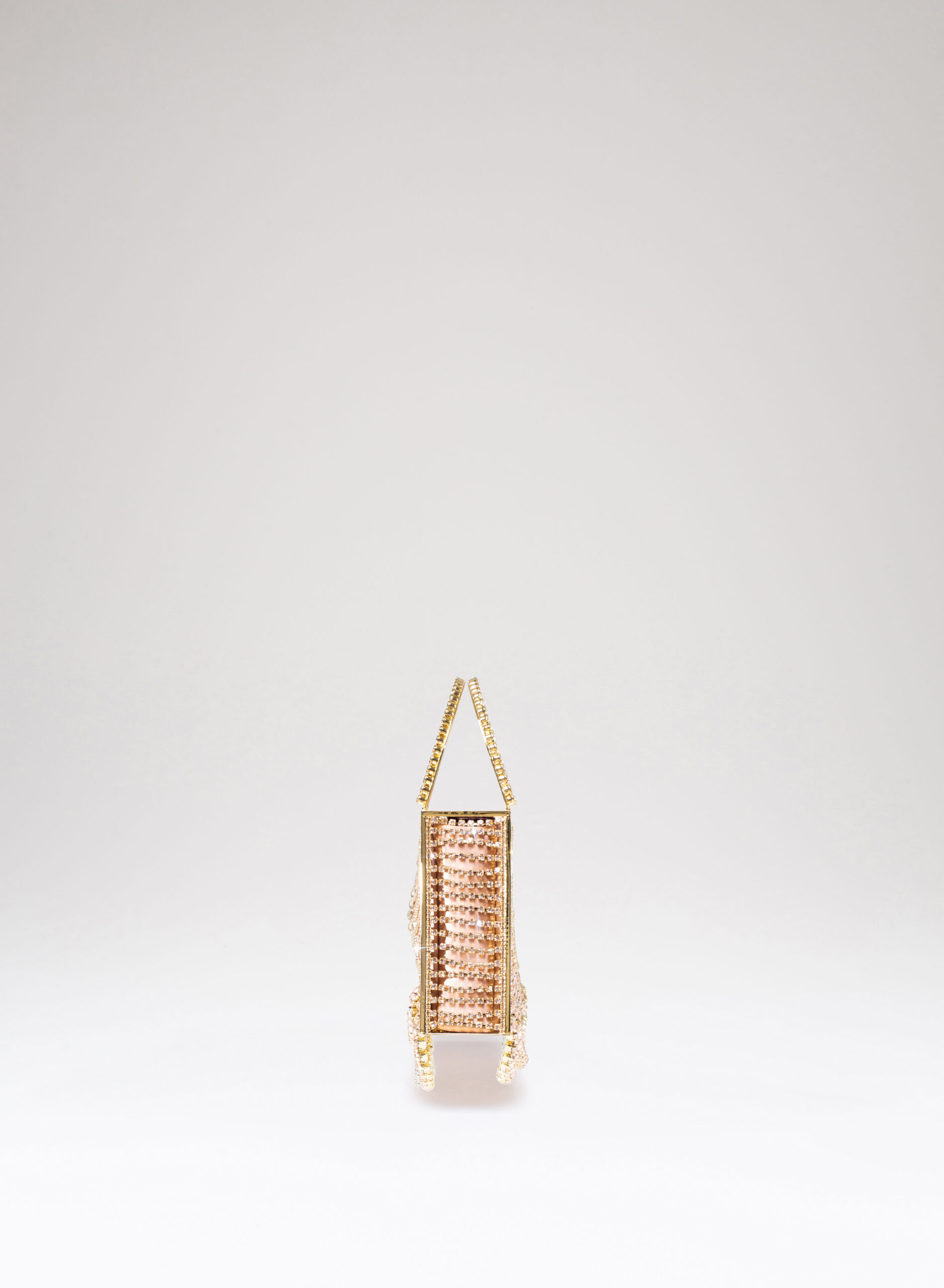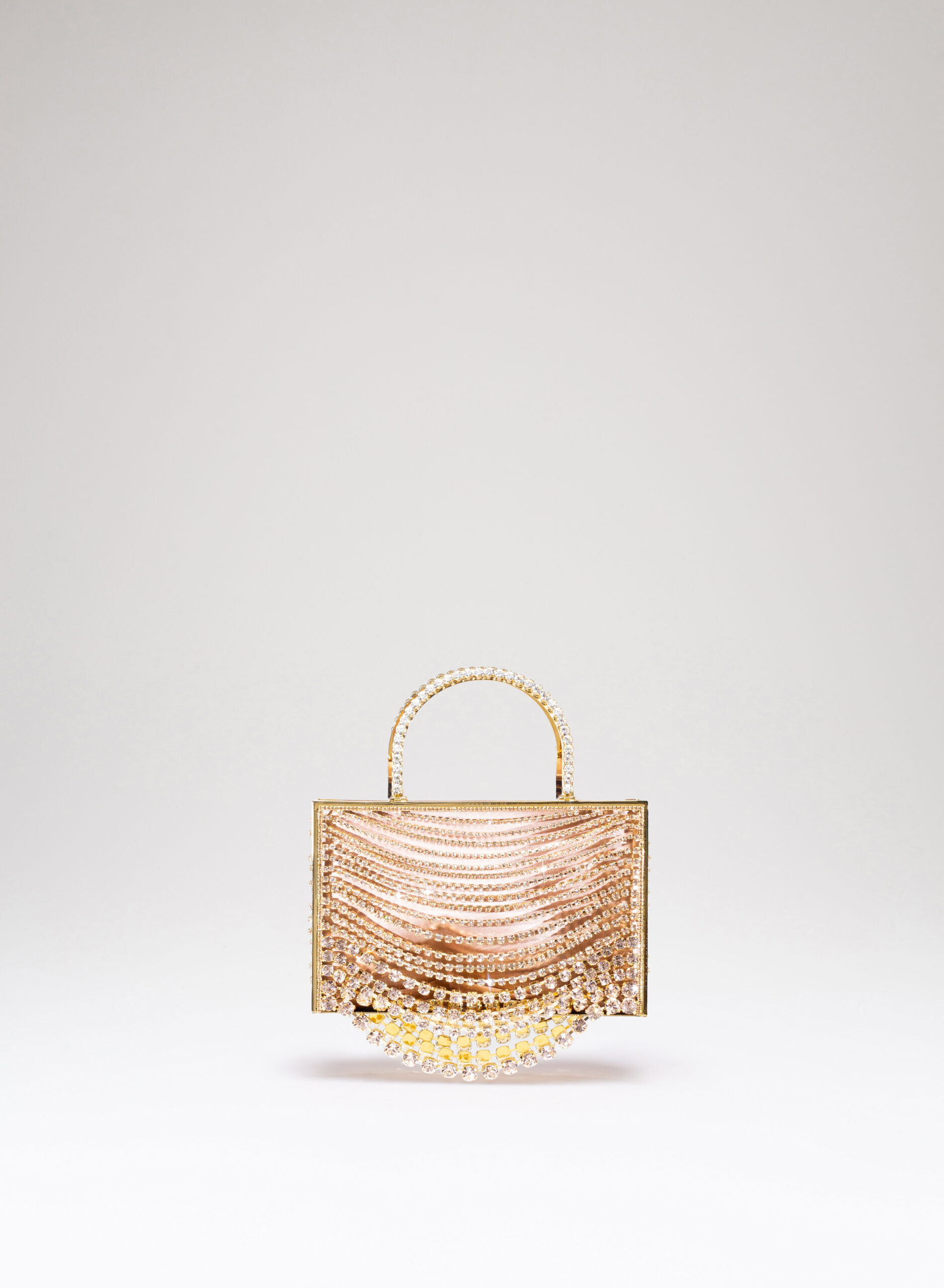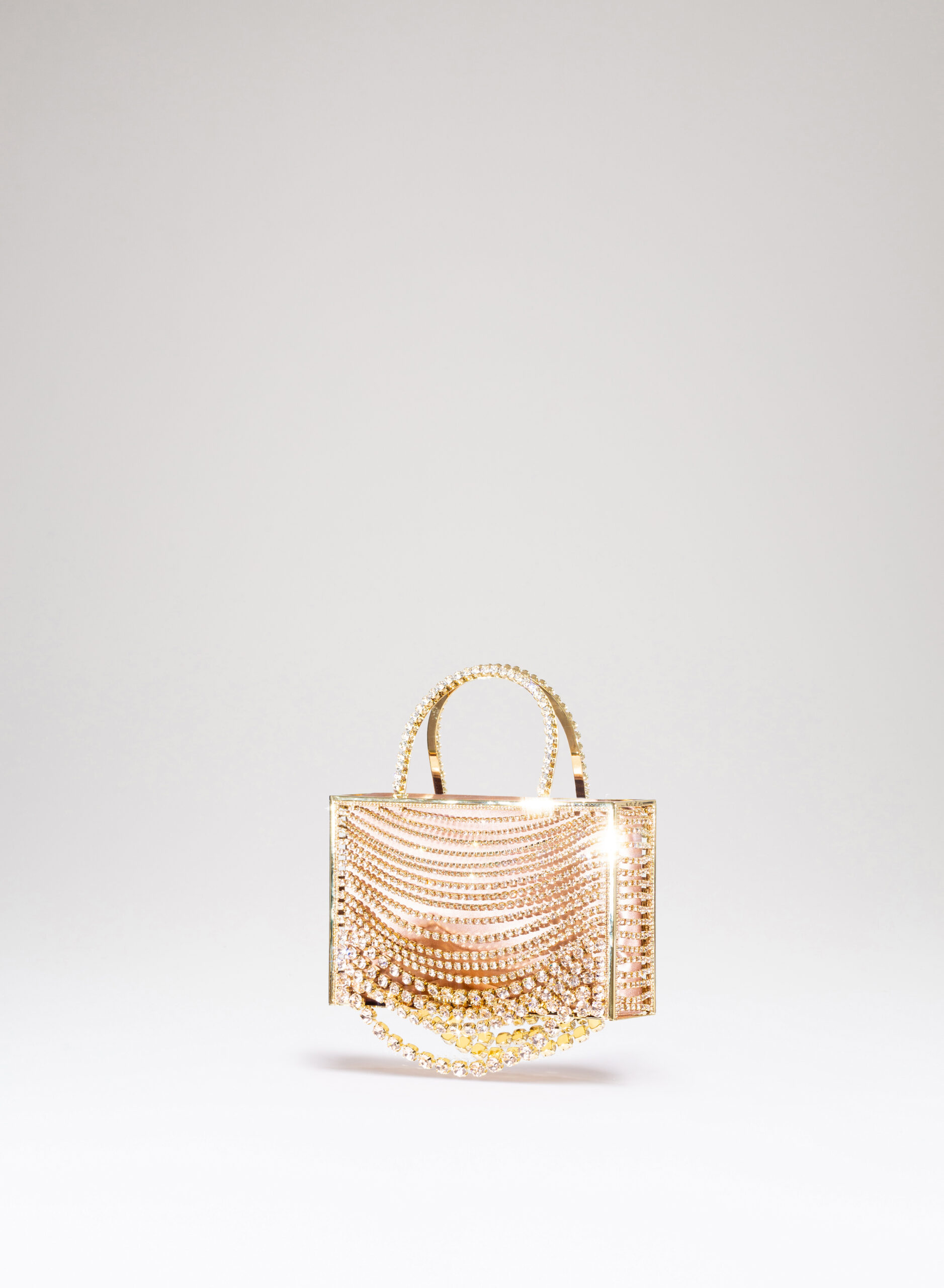 How do you tell a woman that fate is not a cage but a flight, and that swings can be made from the chains? How do you tell a woman that if she really wanted to, she could fly? Homage to the Fellinian Giulietta who was able to turn shadows into lights and joys. The micro tote Giulietta degli Spiriti is completely handmade by our artisan goldsmiths of Arezzo, adorned with an elegant degradation of chains of crystals of various sizes. Inside it houses a bag of soft organza to contain personal belongings.