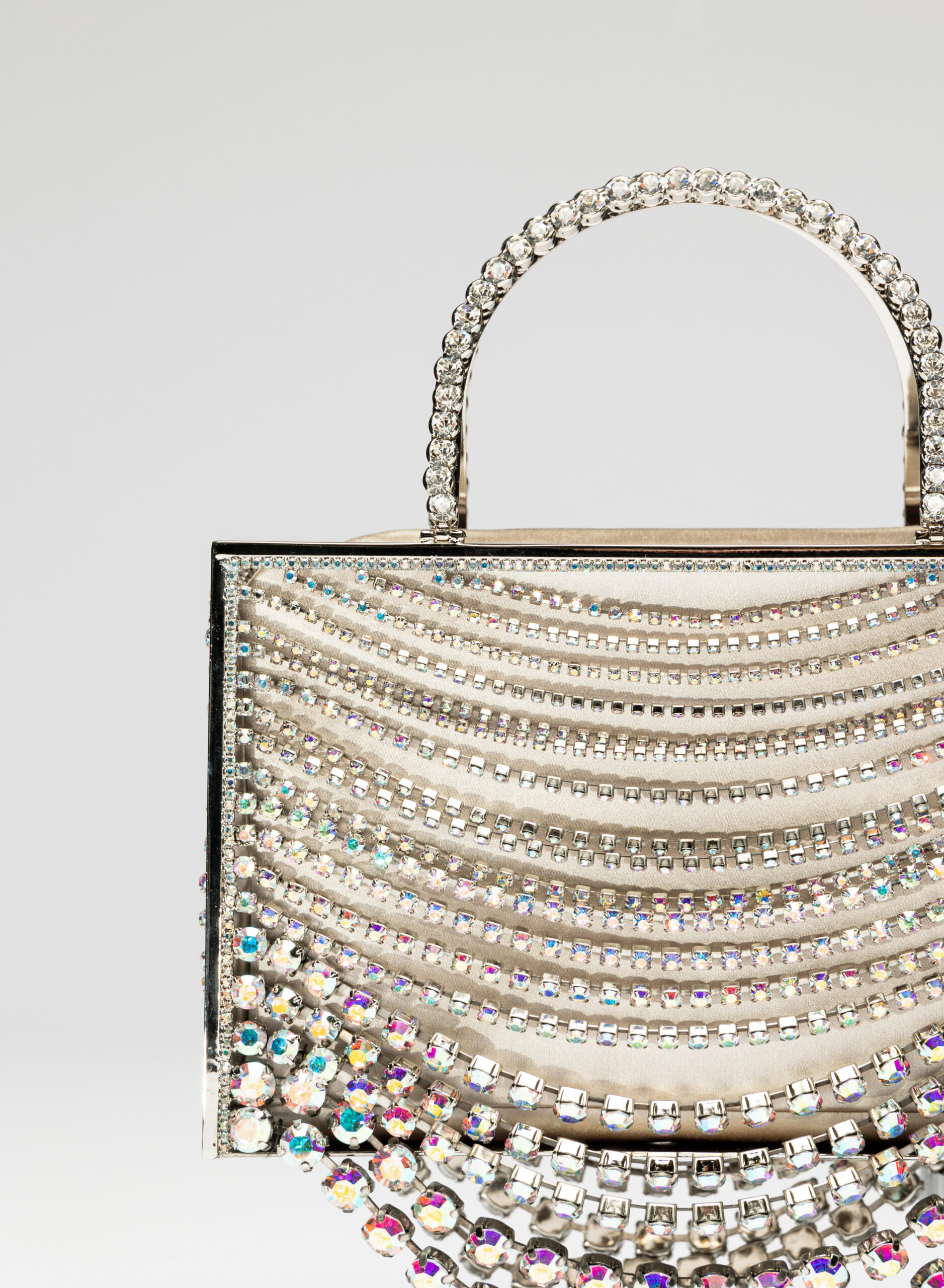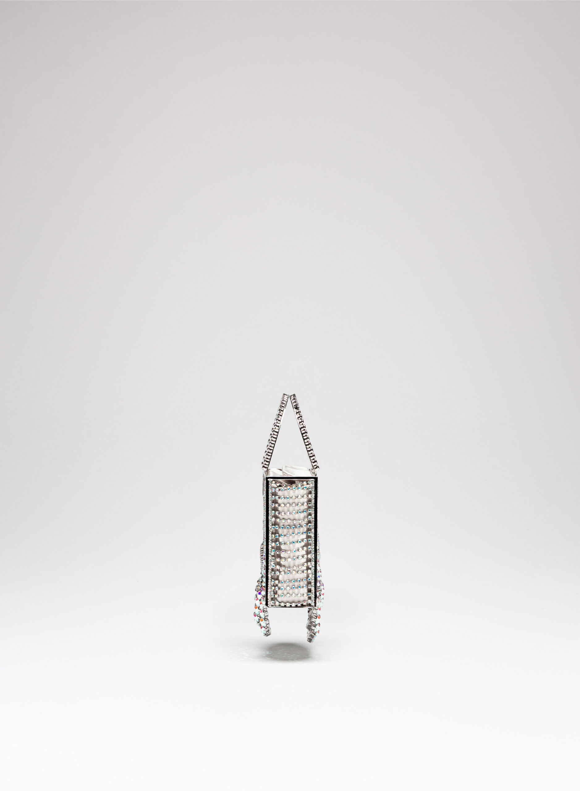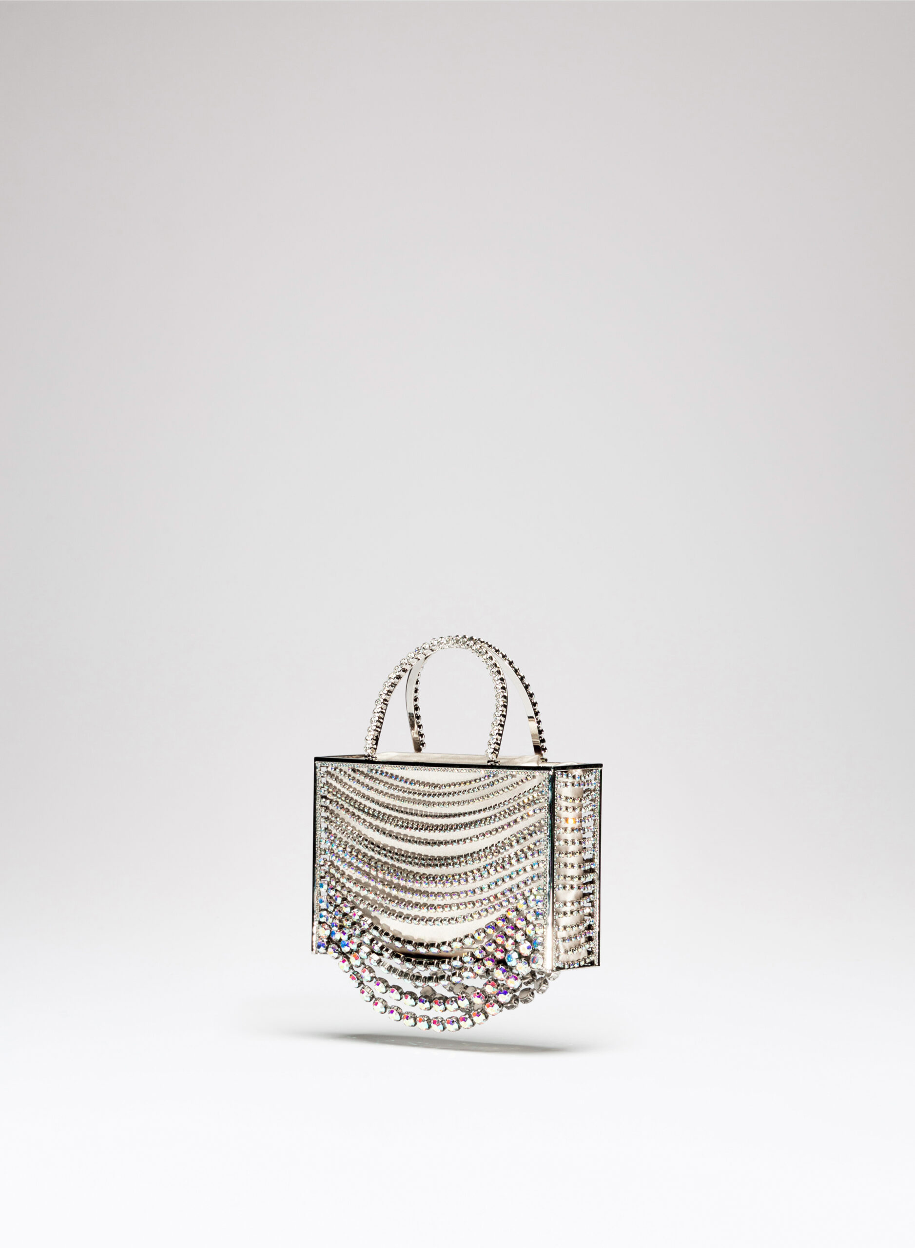 How do you tell a woman that fate is not a cage but a flight, and that swings can be made from the chains? How do you tell a woman that if she really wanted to, she could fly? Homage to the Fellinian Giulietta who was able to turn shadows into lights and joys. The micro tote Giulietta degli Spiriti is completely handmade by our artisan goldsmiths of Arezzo, adorned with an elegant degradation of chains of crystals of various sizes. Inside it houses a bag of soft organza to contain personal belongings.