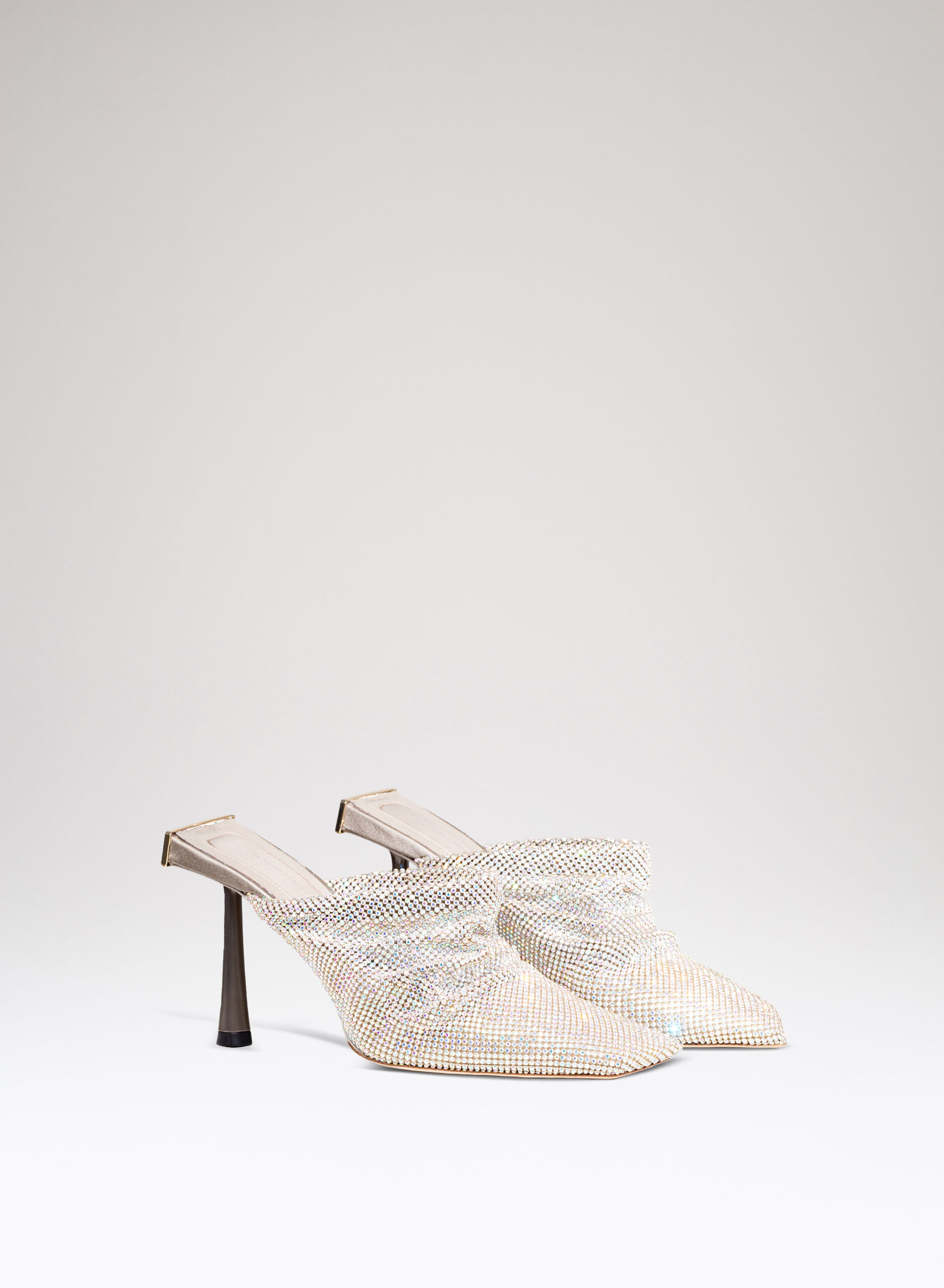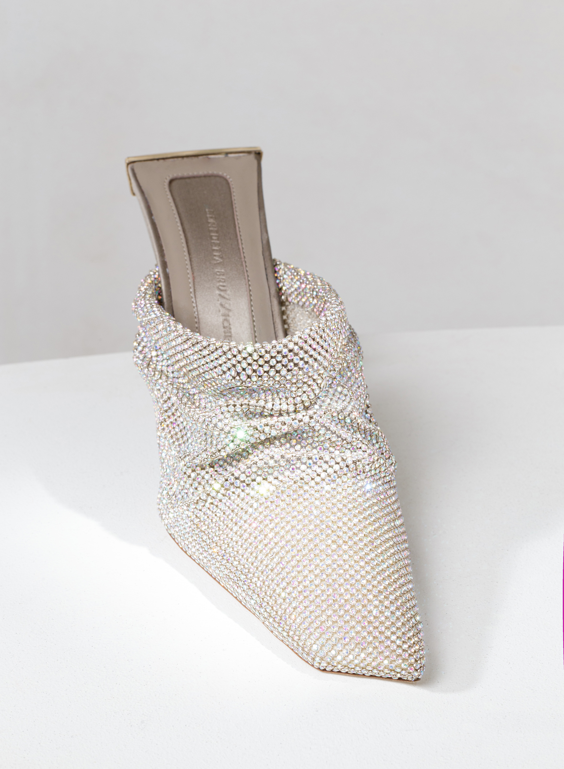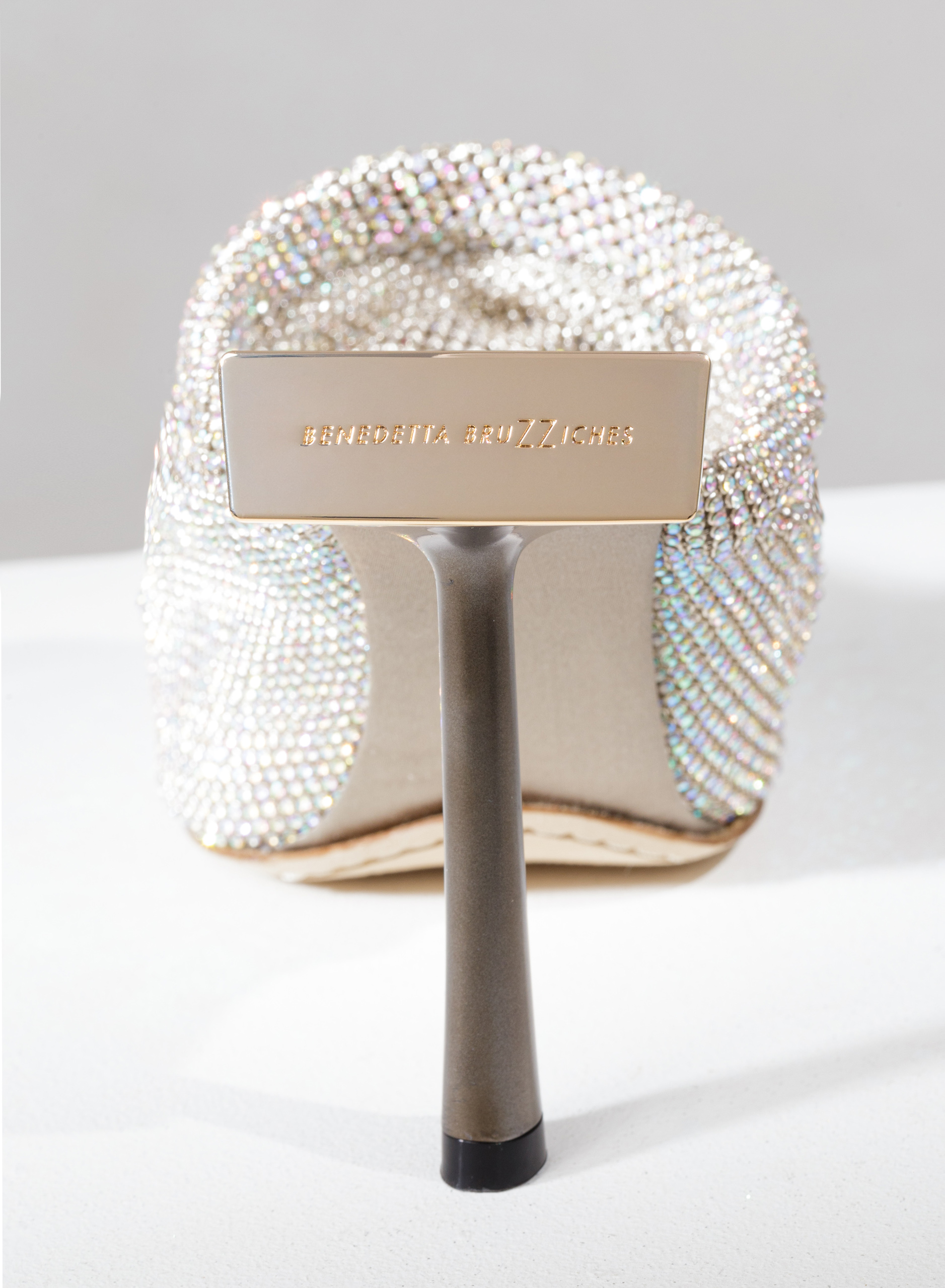 La libertà è ciò che permette di sperimentare ogni passo di quella passeggiata che chiamiamo vita. Bisogna essere liberi per riuscire a guardare fuori dalla finestra e seguire la luce che si insinua tra le imposte. Goliarda diventa un espediente per andare oltre i propri limiti e per esprimersi nel modo più sensuale possibile, proprio come Modesta nel romanzo “L’arte della gioia” di Goliarda Sapienza. Questo object d’heart è un inno alla libertà, alla sensualità, al potere dell’essere donna. Goliarda è una creazione con una struttura rivestita in raso e una tomaia in maglia metallica con cristalli. Il tacco di…