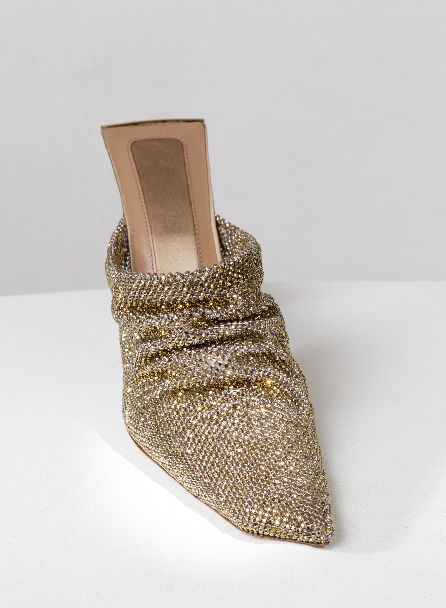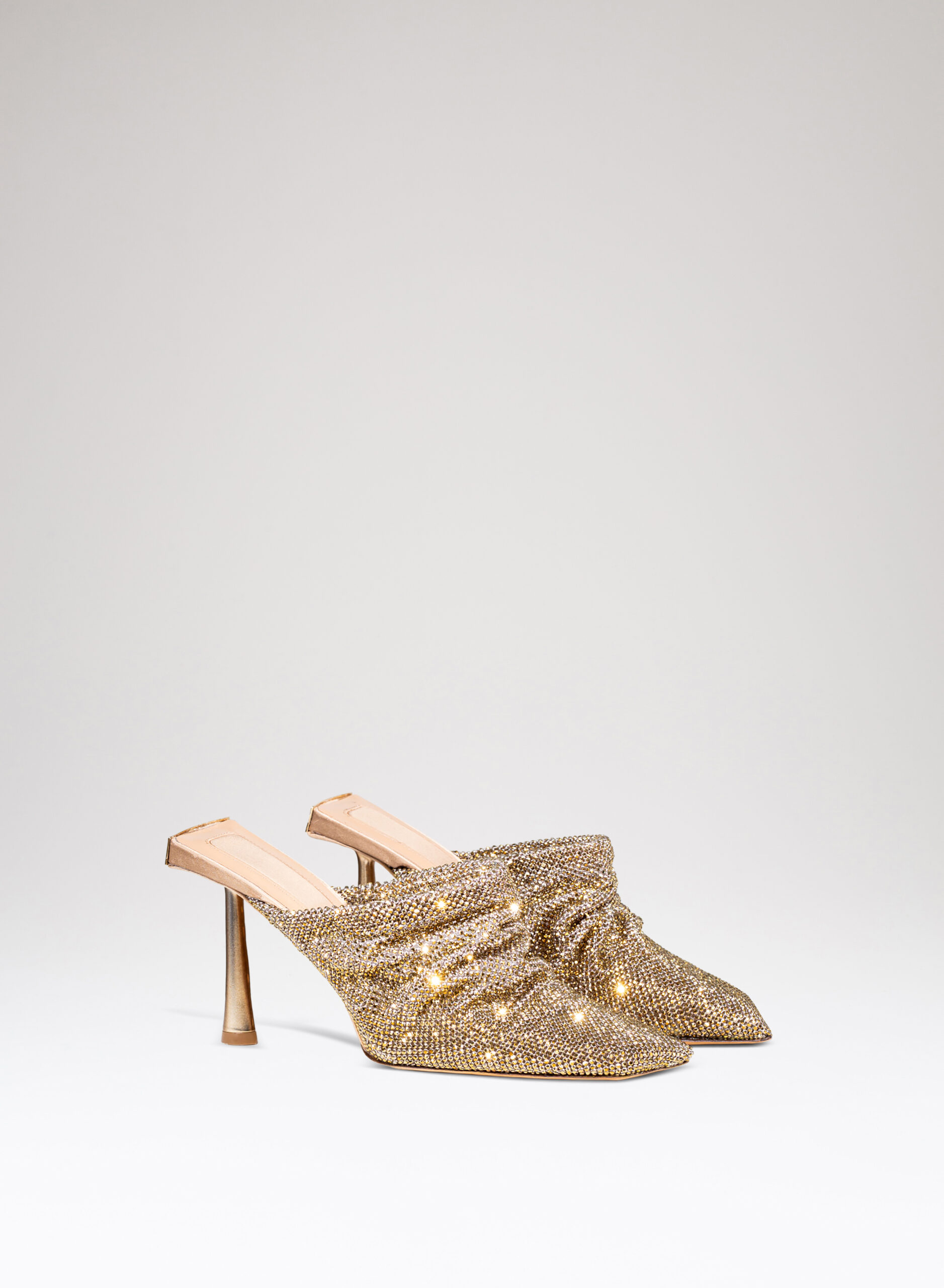 La libertà è ciò che permette di sperimentare ogni passo di quella passeggiata che chiamiamo vita. Bisogna essere liberi per riuscire a guardare fuori dalla finestra e seguire la luce che si insinua tra le imposte. Goliarda diventa un espediente per andare oltre i propri limiti e per esprimersi nel modo più sensuale possibile, proprio come Modesta nel romanzo “L’arte della gioia” di Goliarda Sapienza. Questo object d’heart è un inno alla libertà, alla sensualità, al potere dell’essere donna. Goliarda è una creazione con una struttura rivestita in raso e una tomaia in maglia metallica con cristalli. Il tacco di…
