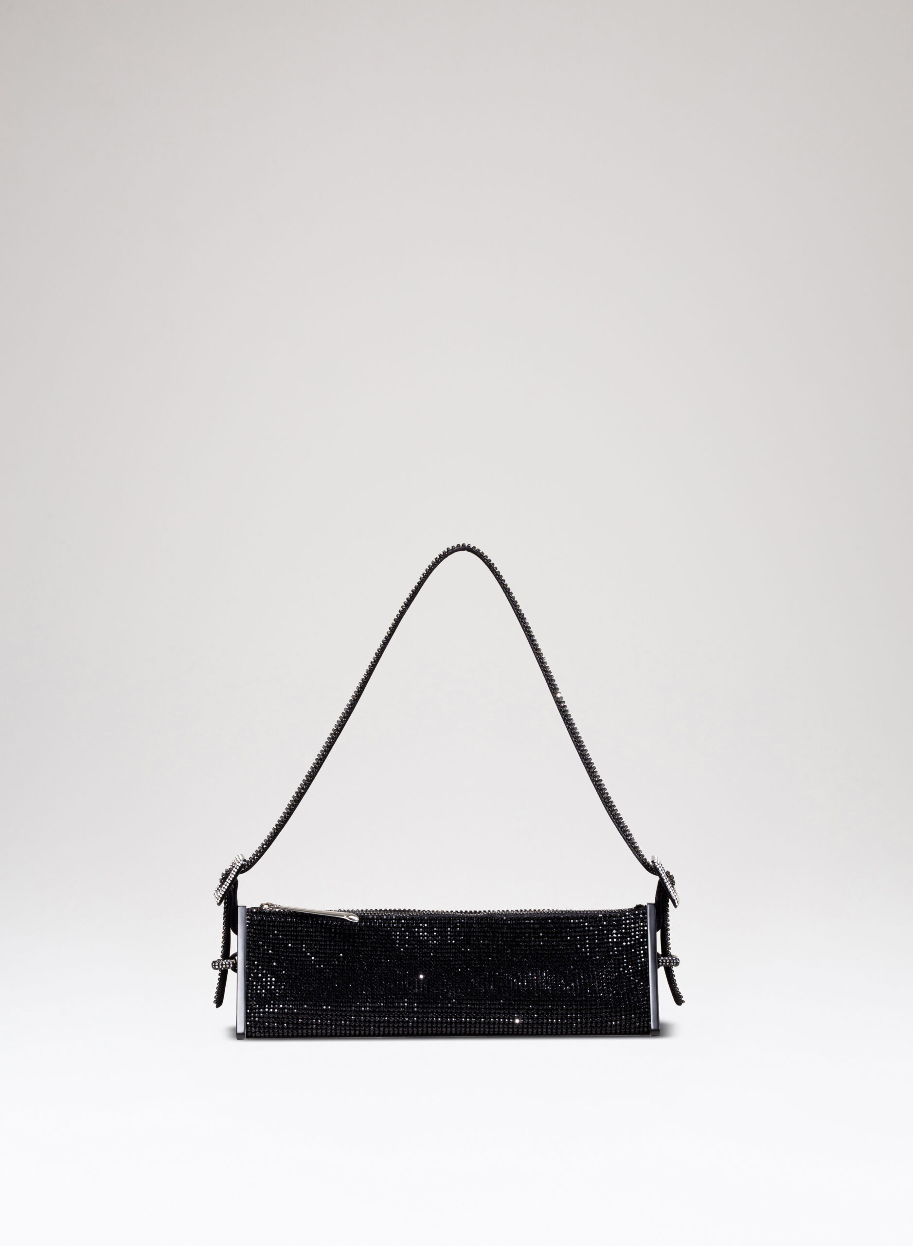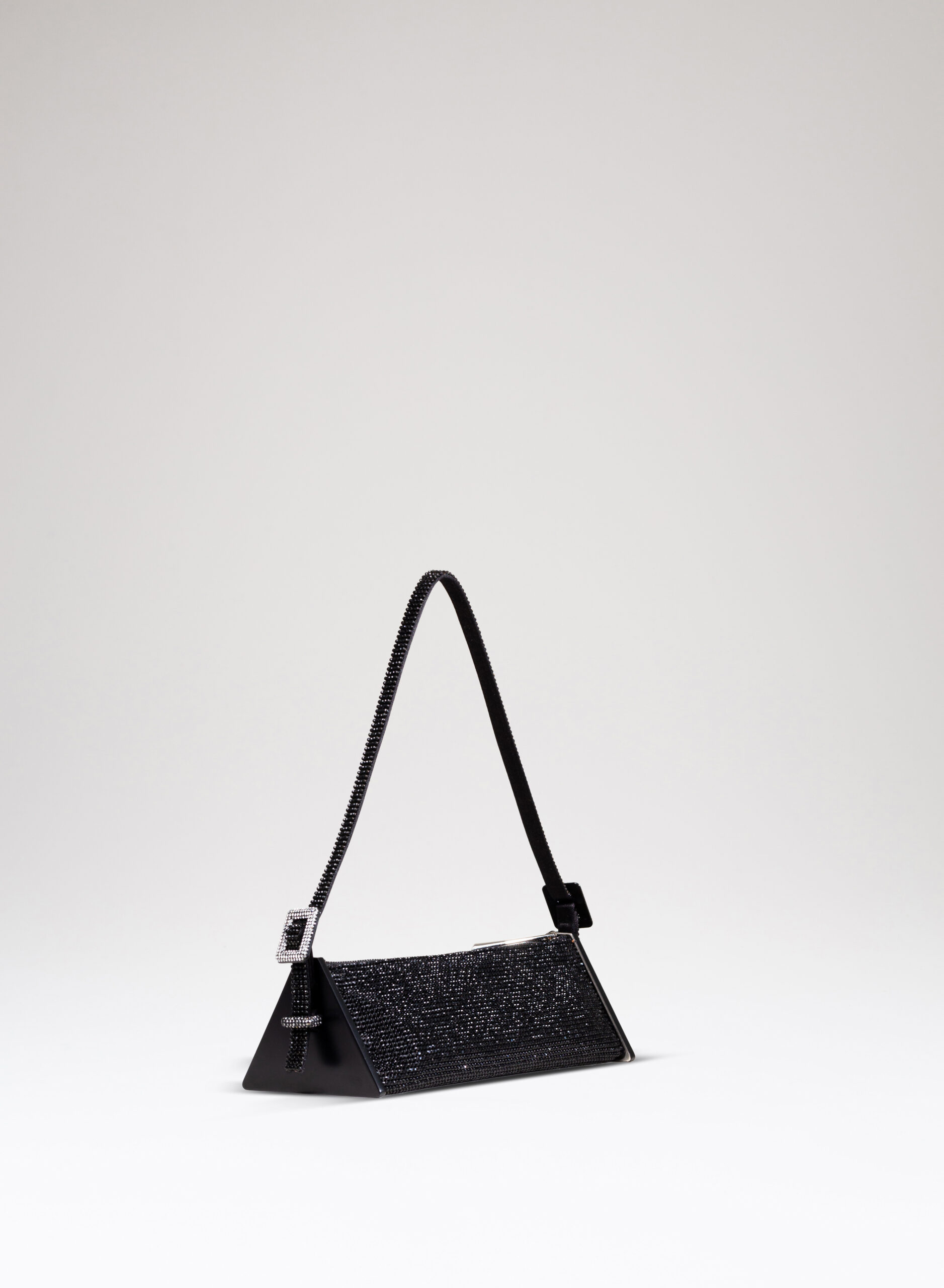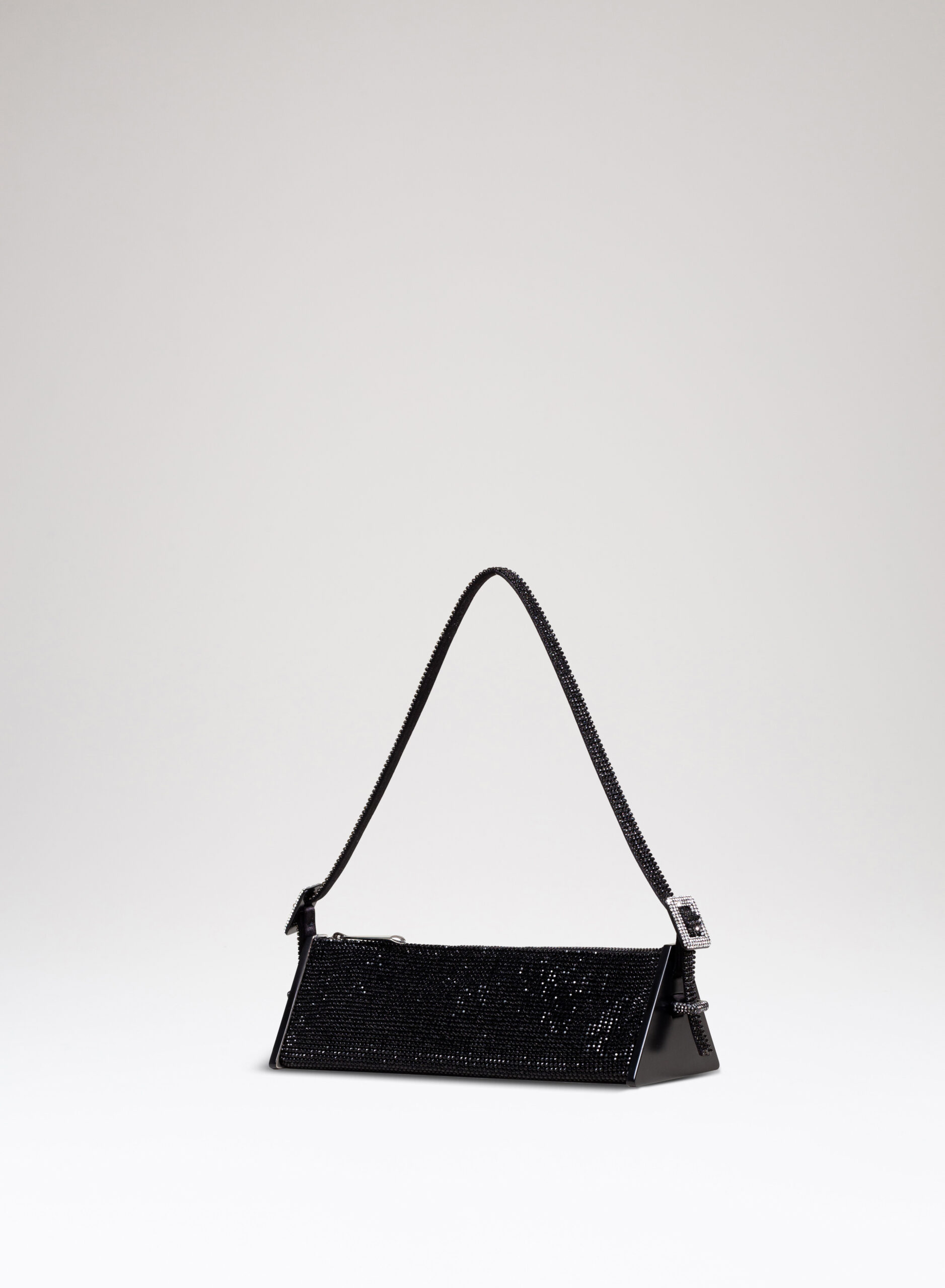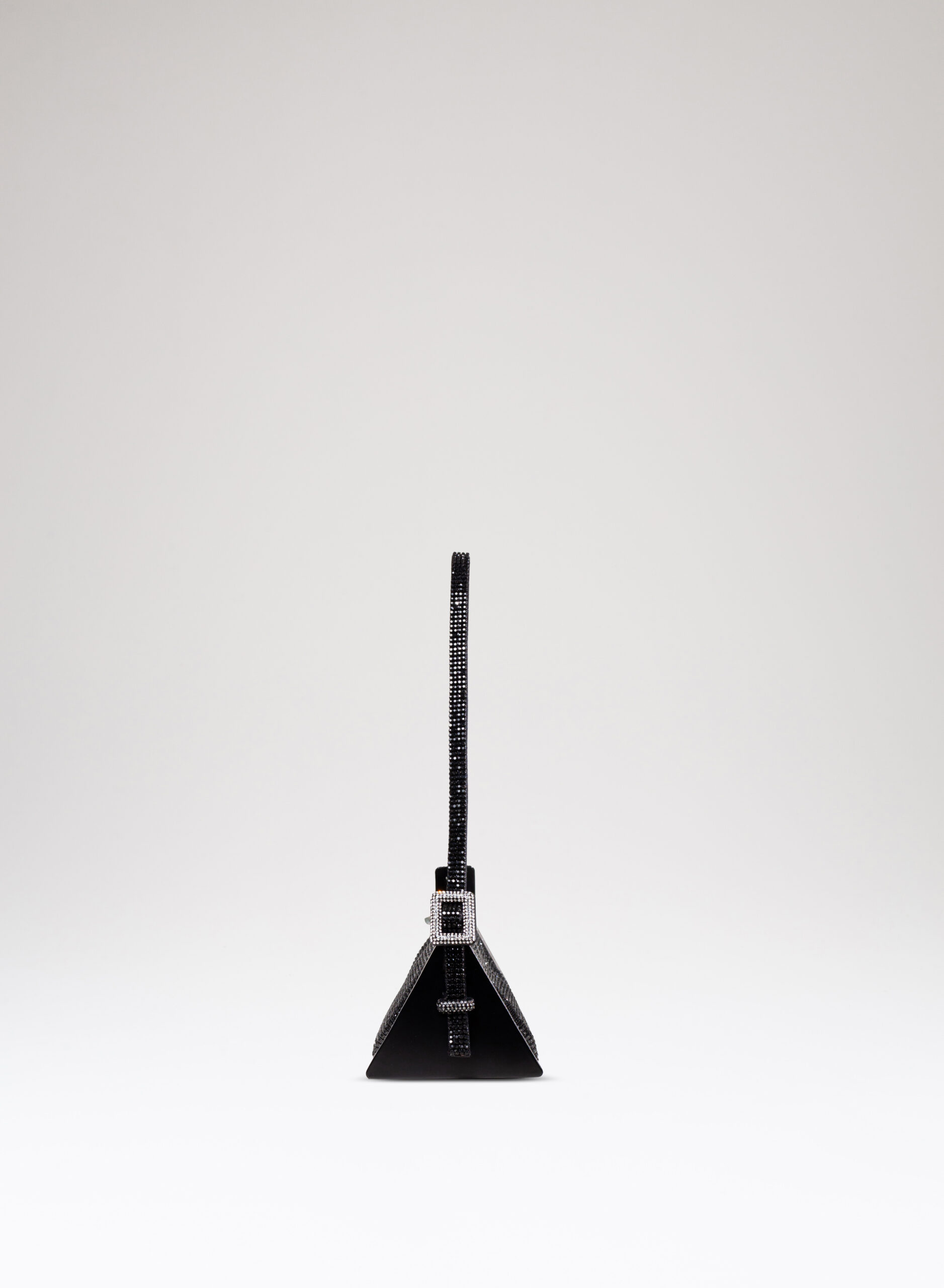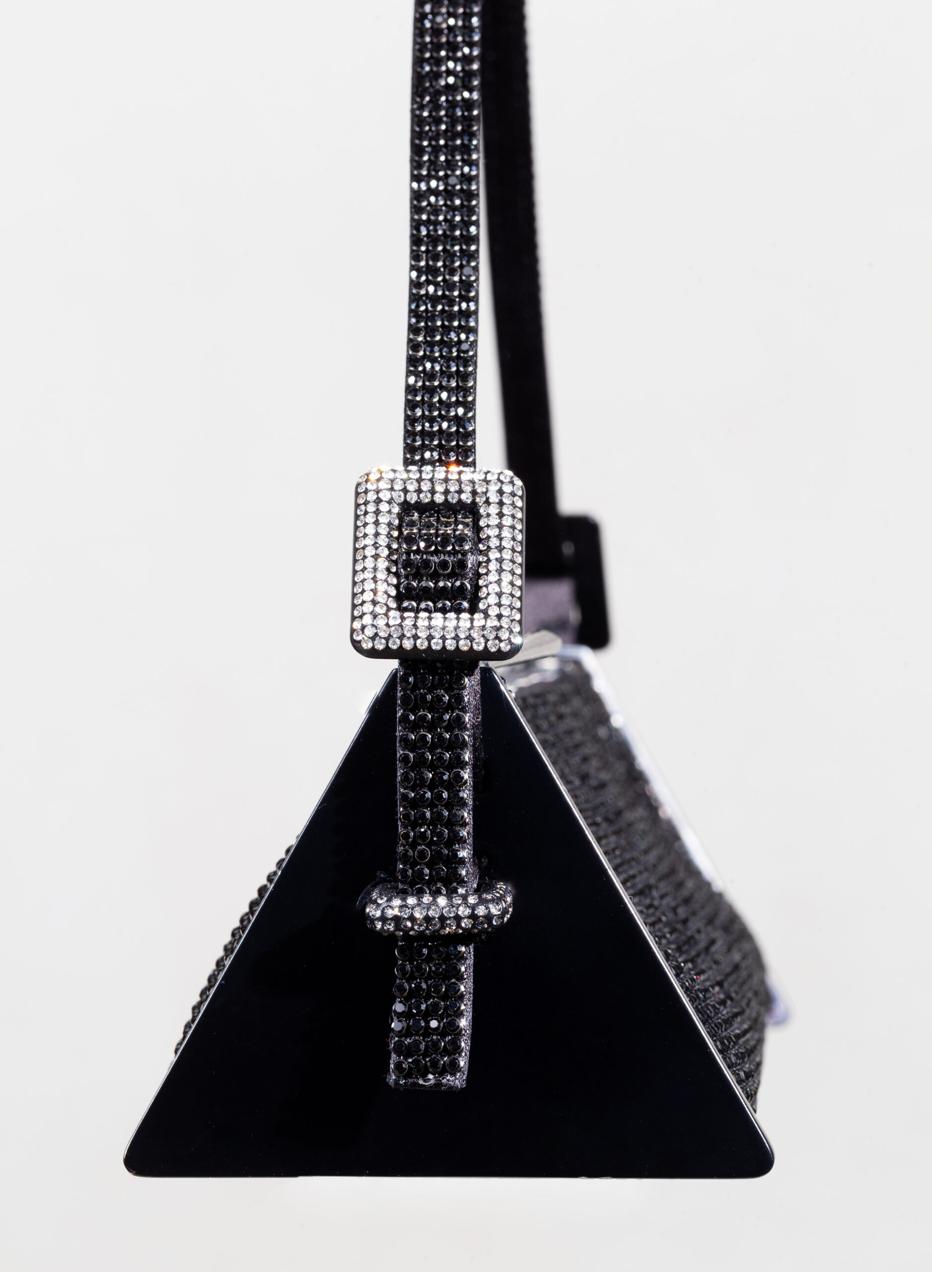 Hai mai pensato di dare una forma al divertimento? Joy è una borsa giocosa realizzata in puro raso di seta, ricoperta in crystal mesh e con due piastre triangolari in ottone che le danno la caratteristica forma ad astuccio. Con le sue linee geometriche, Joy richiama nel nome l’elemento più prezioso da indossare ogni giorno: la felicità.