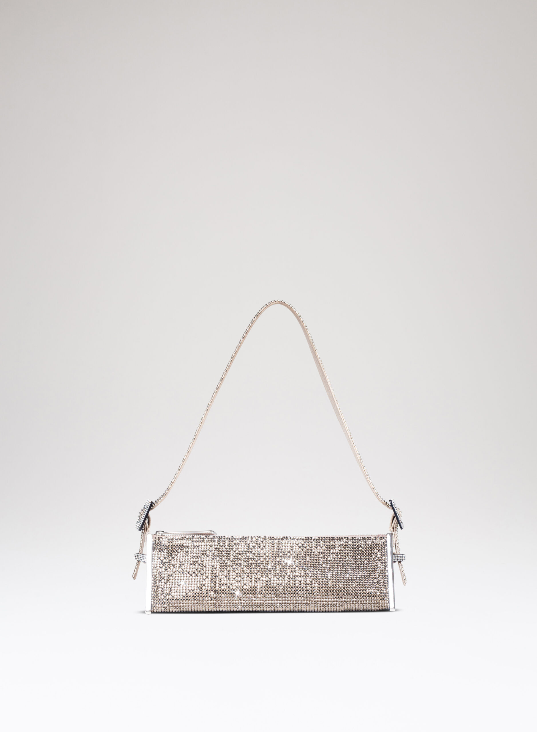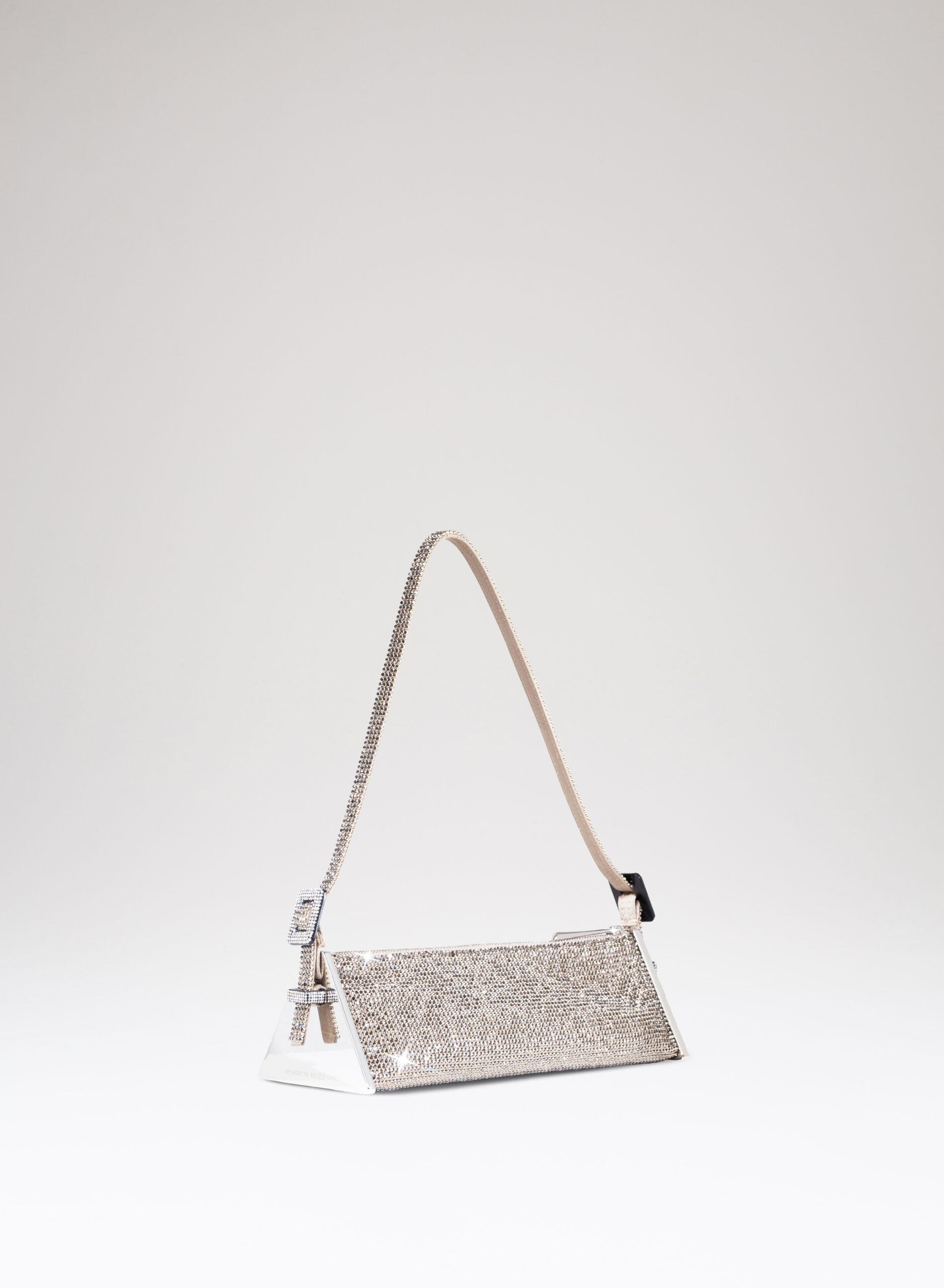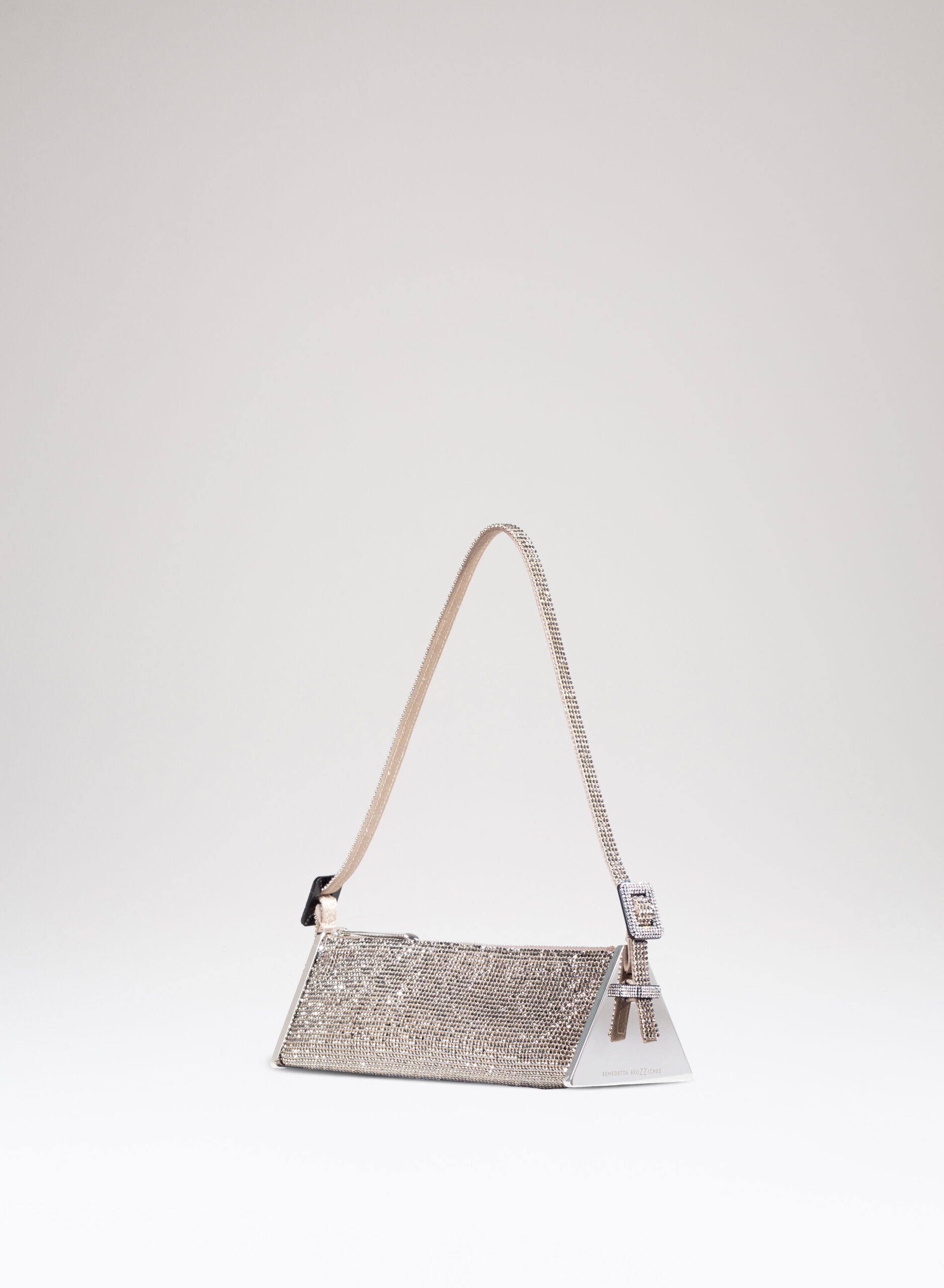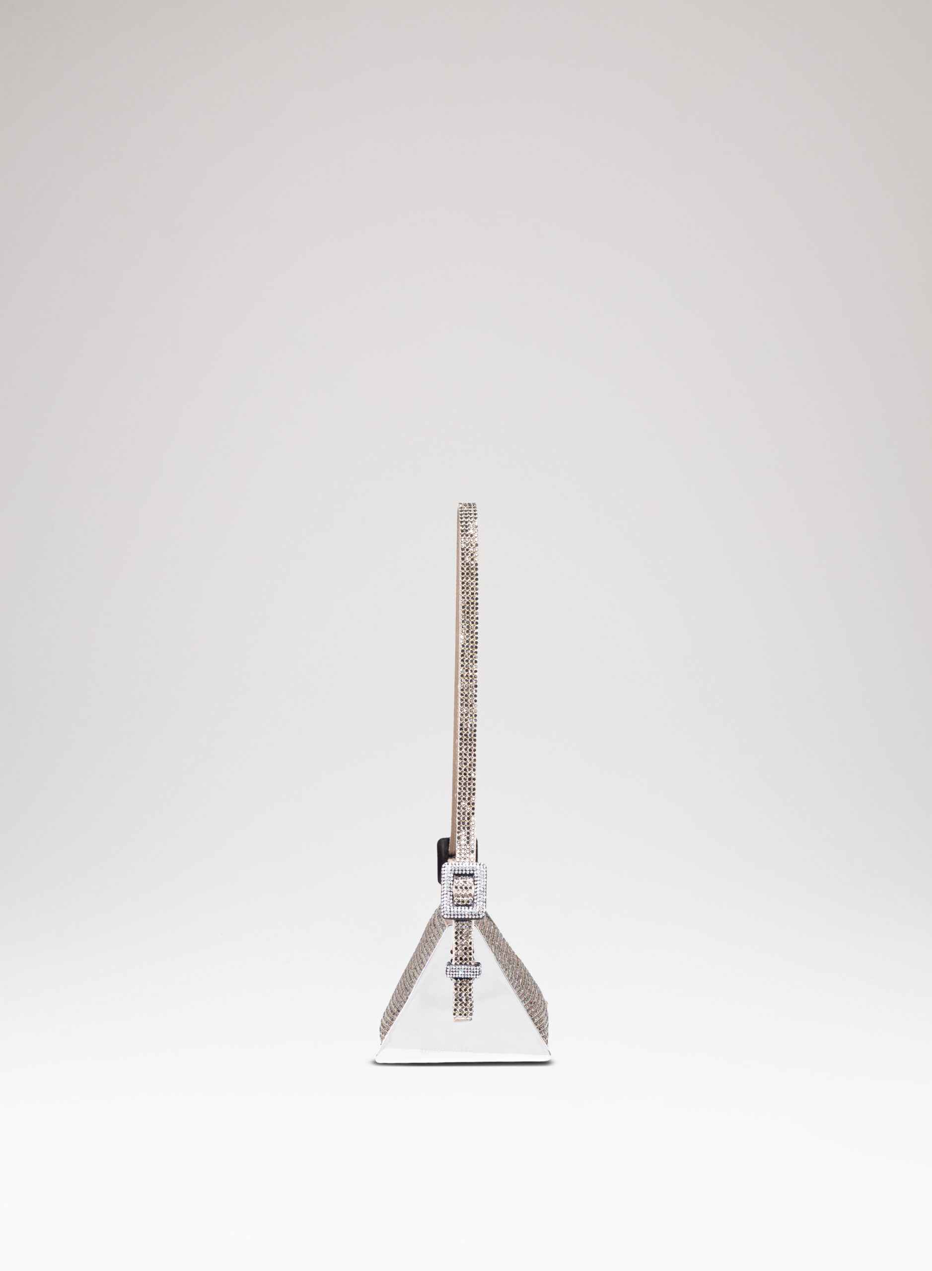 Have you ever thought about shaping fun? Our Joy is carefully built around two triangular brass plates that shape its body in silk satin and crystal mesh. Linear, almost geometric, and yet so superb, Joy recalls with its name the most precious element to wear every day.