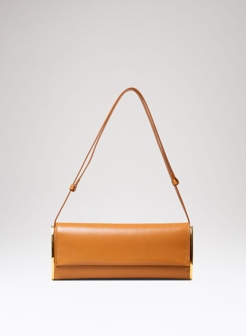 Impreziosita da due elementi ovali laterali, realizzata in pelle e foderata in puro raso di seta organico,