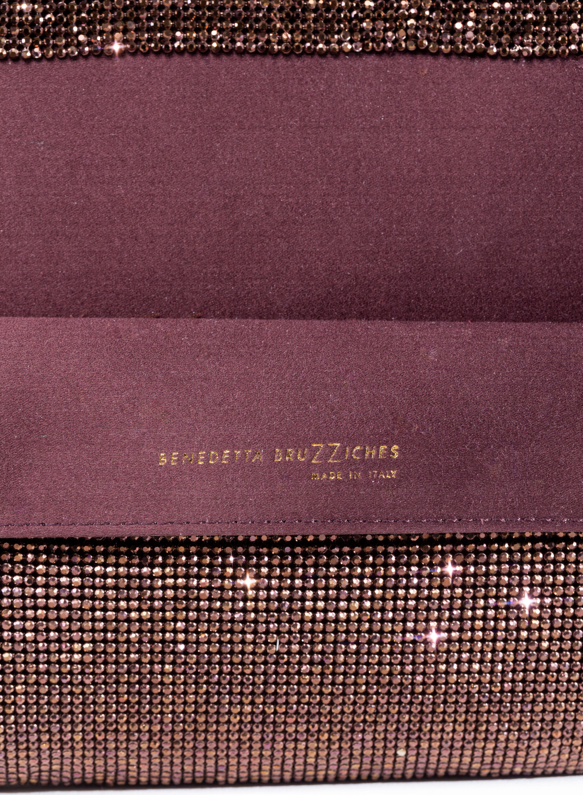 La regalità non ha niente a che fare con il lignaggio, Proprio come l’eleganza, che non è legata alle formalità . Eleganza significa Sentirsi a proprio agio in qualsiasi parte del mondo! Impreziosita da due elementi ovali laterali, realizzata in crystal mesh e foderata in puro raso di seta organico, Kate ha una tracolla regolabile per permettere un indosso versatile. È preziosa come una tiara e, quando indossata, ti fa sentire una vera regina.