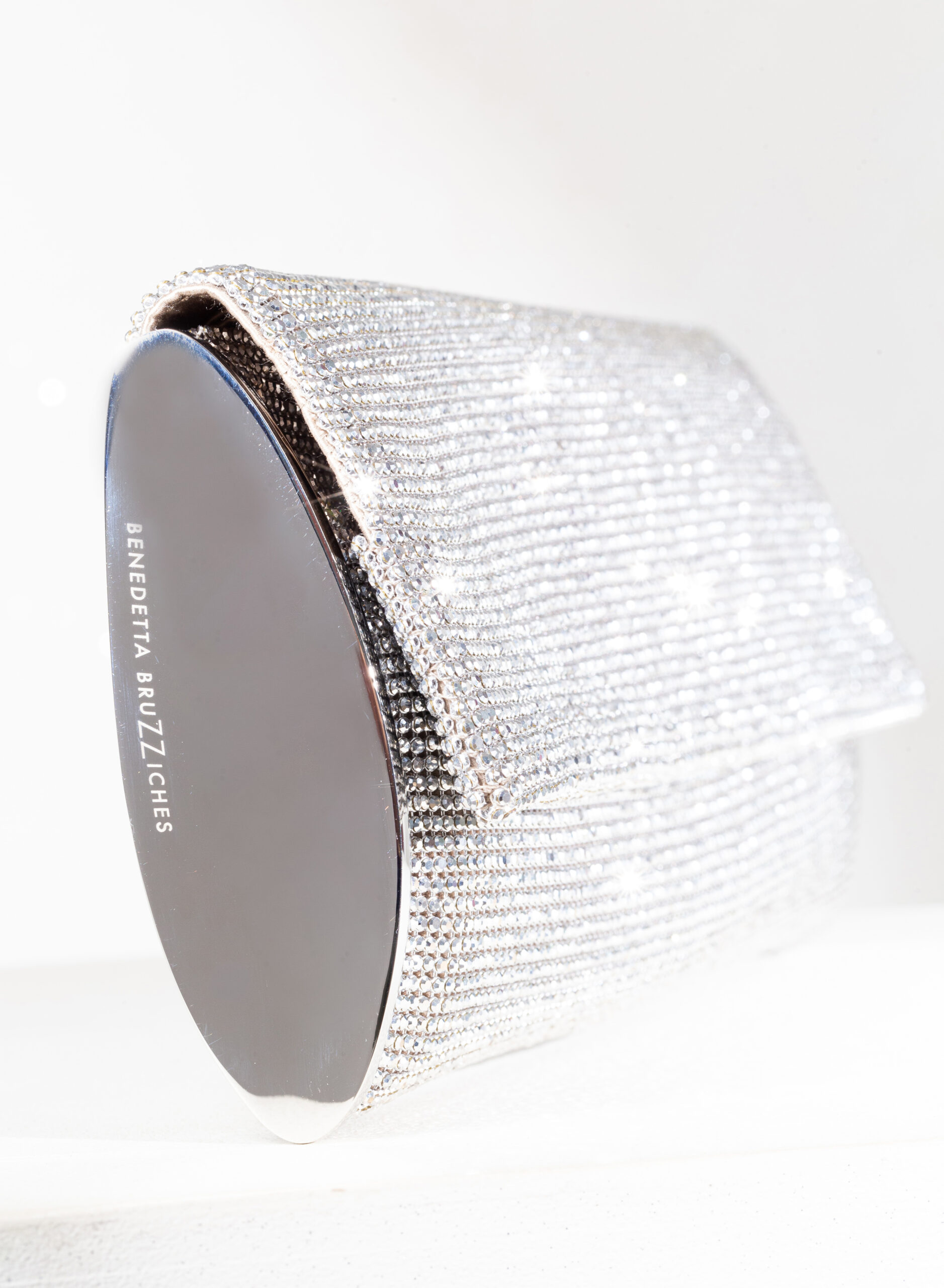 La regalità non ha niente a che fare con il lignaggio, Proprio come l’eleganza, che non è legata alle formalità . Eleganza significa Sentirsi a proprio agio in qualsiasi parte del mondo! Impreziosita da due elementi ovali laterali, realizzata in crystal mesh e foderata in puro raso di seta organico, Kate ha una tracolla regolabile per permettere un indosso versatile. È preziosa come una tiara e, quando indossata, ti fa sentire una vera regina.