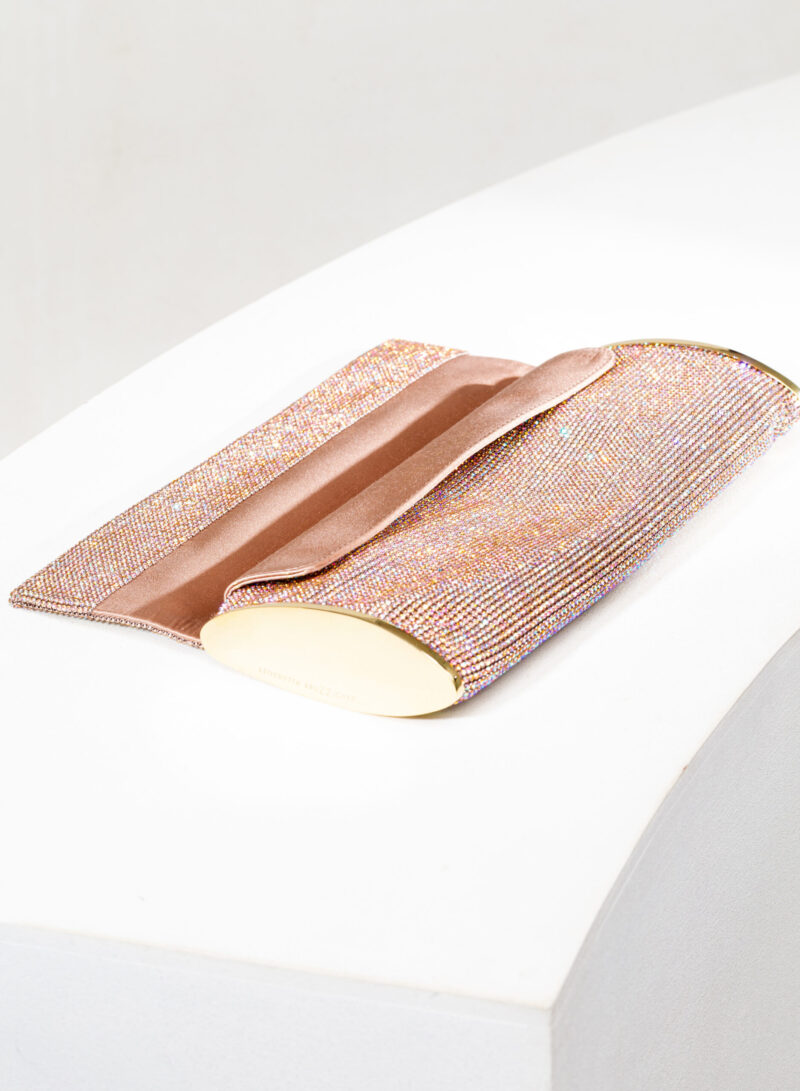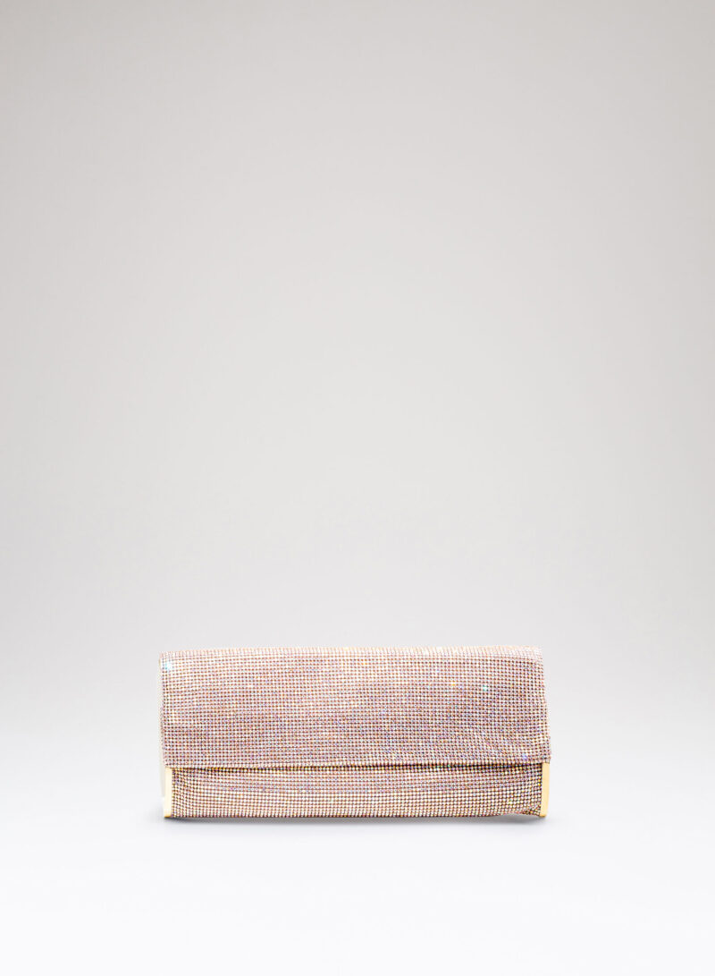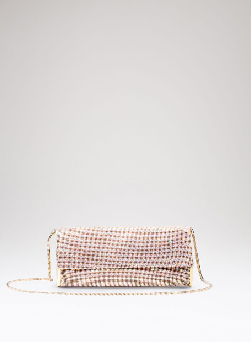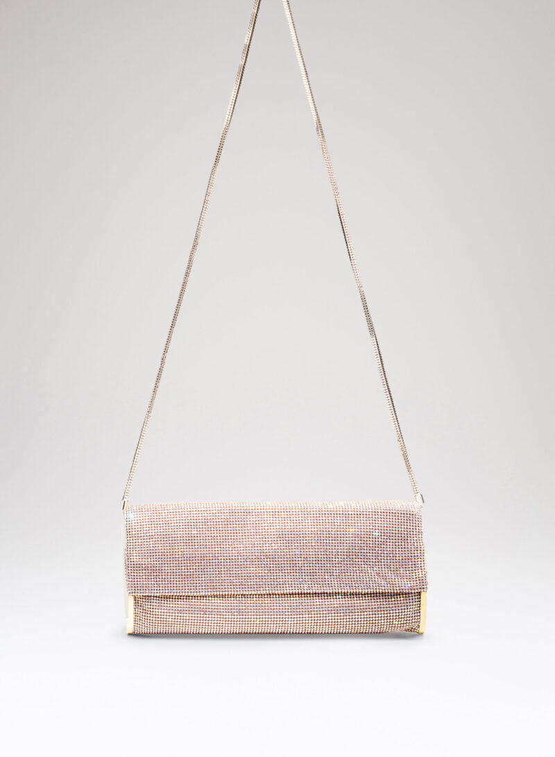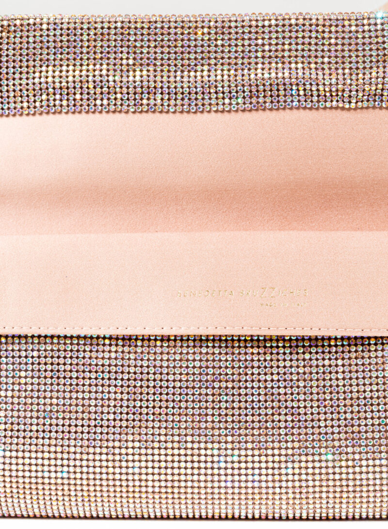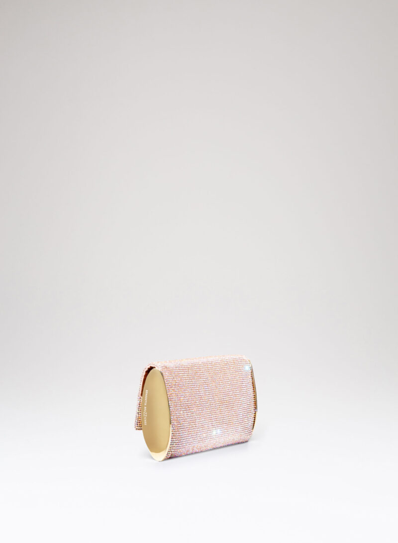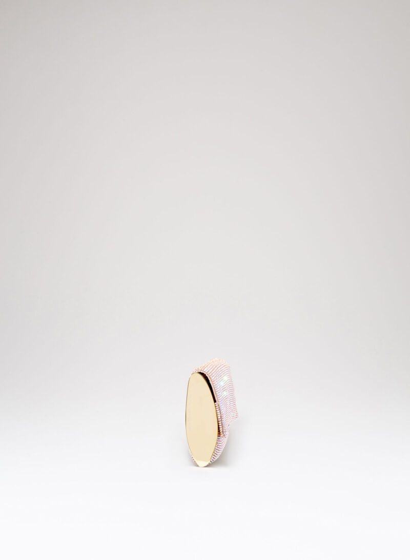 Impreziosita da due elementi ovali laterali, realizzata in crystal mesh e foderata in puro raso di seta organico,