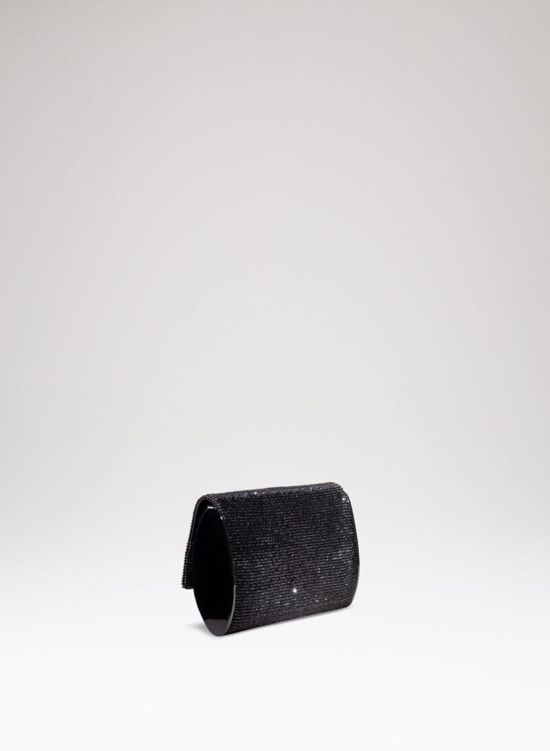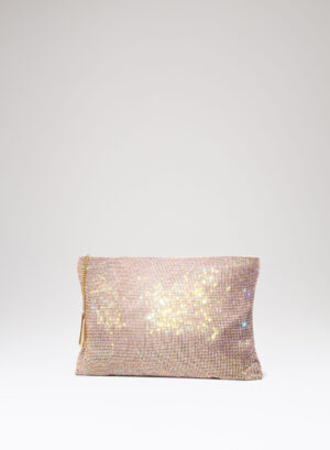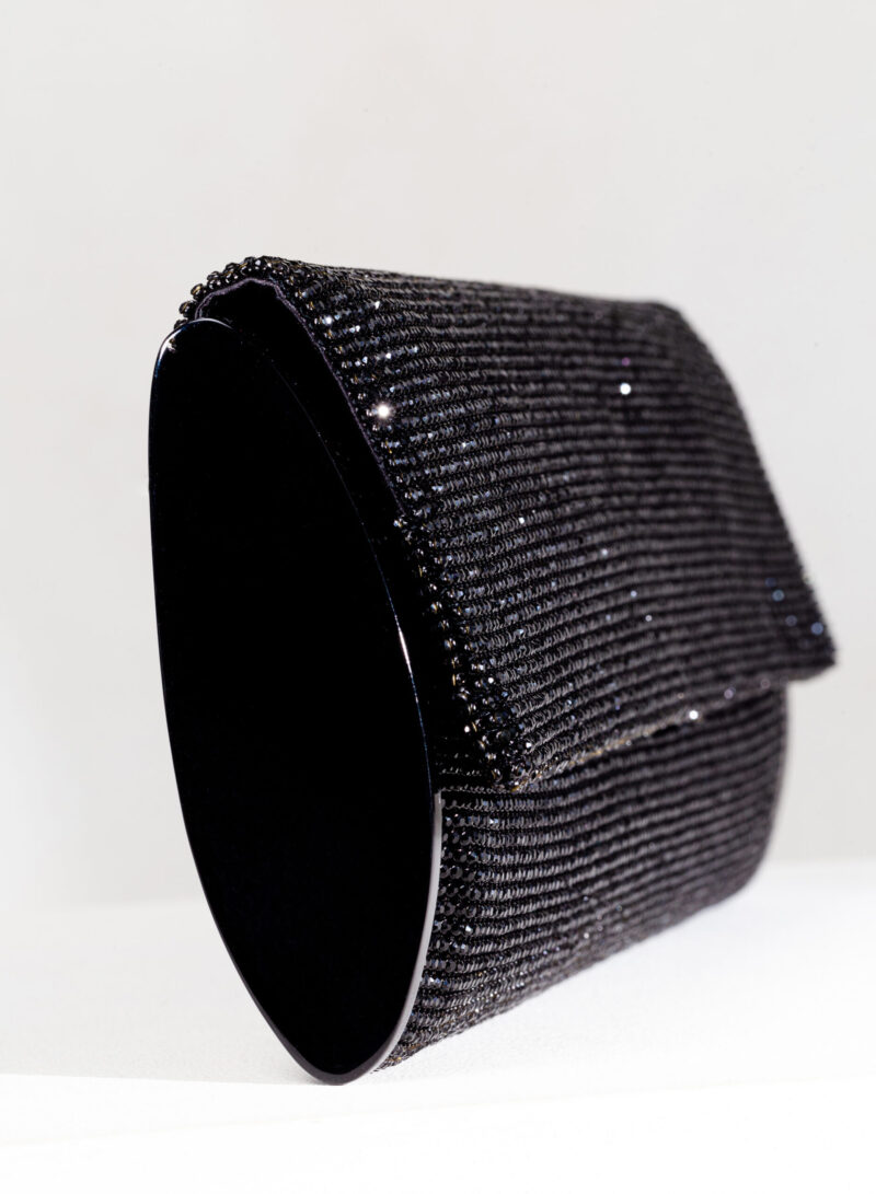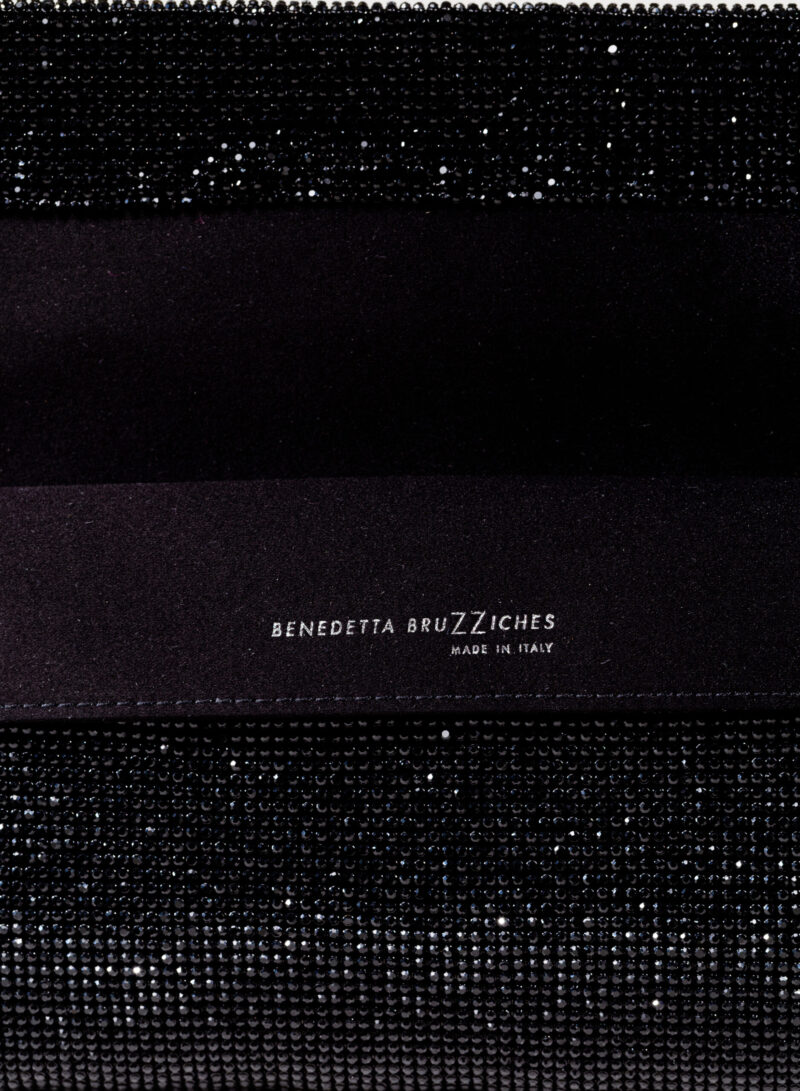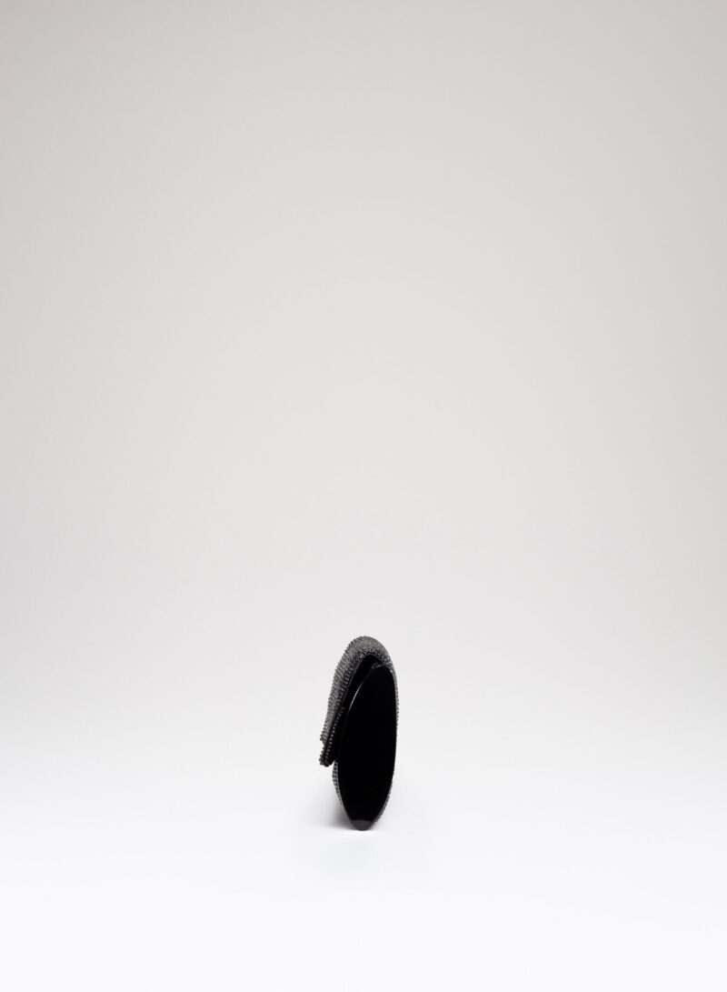 Impreziosita da due elementi ovali laterali, realizzata in crystal mesh e foderata in puro raso di seta organico,
