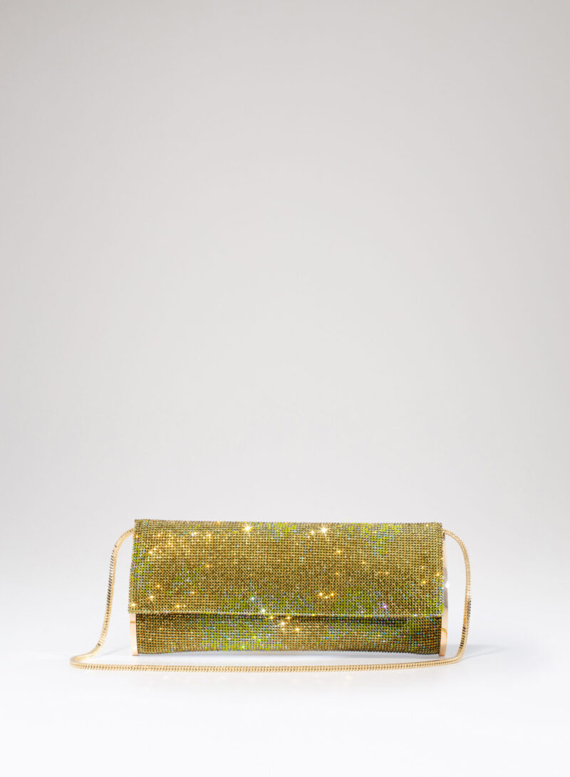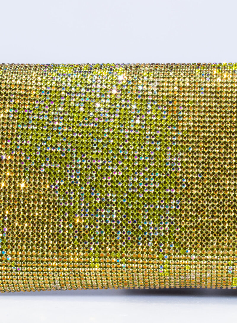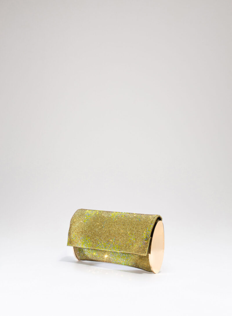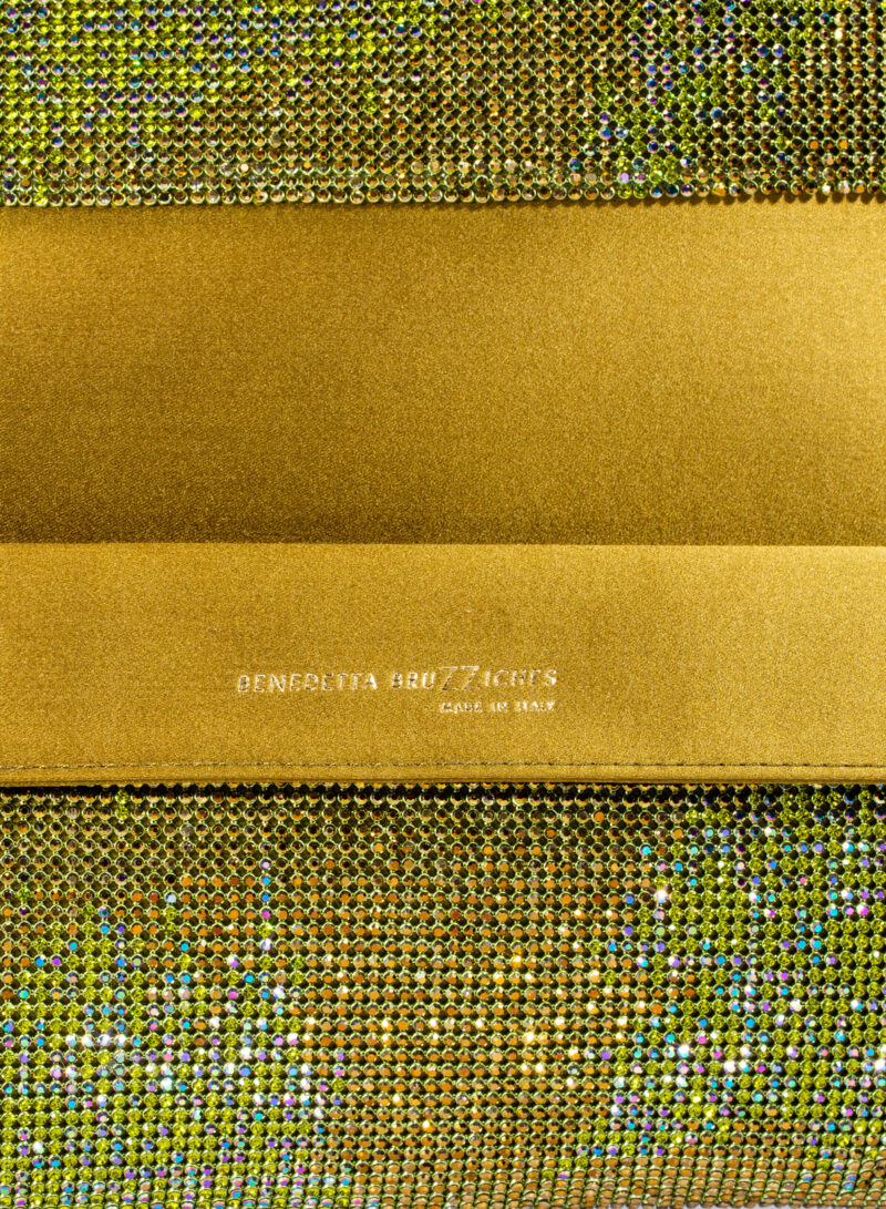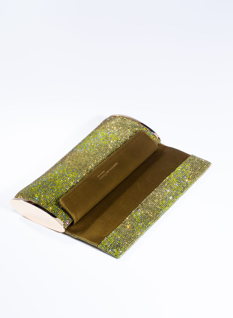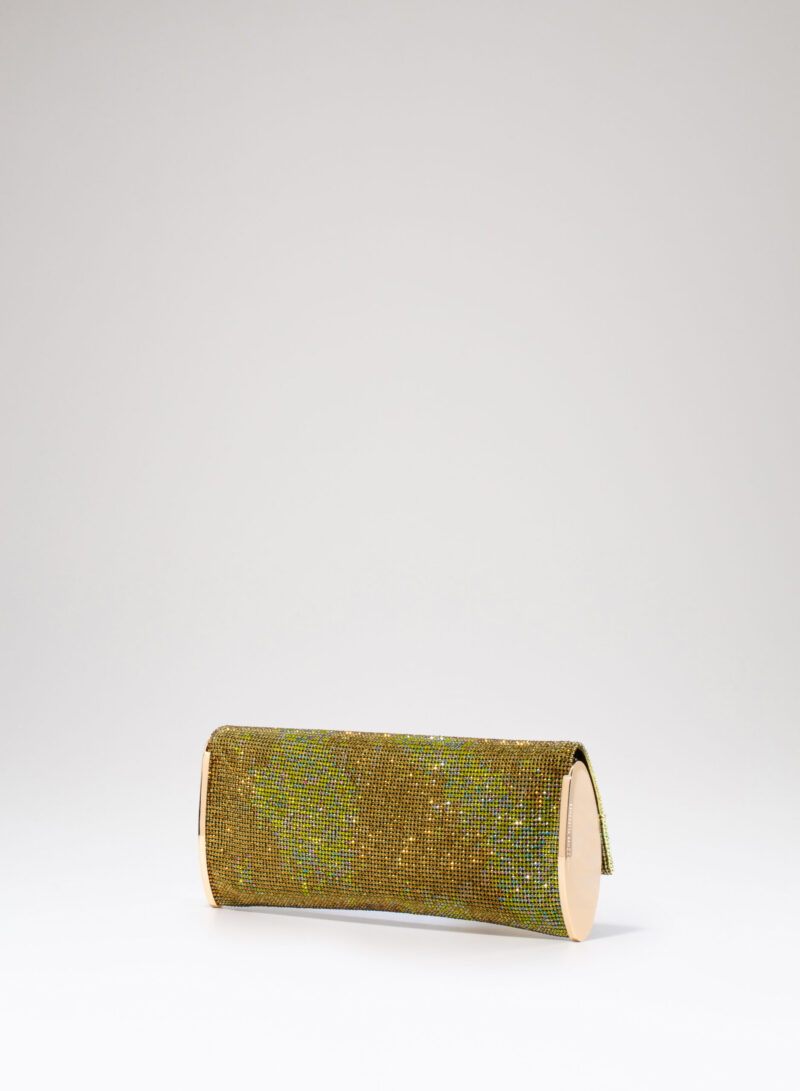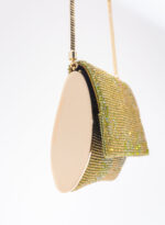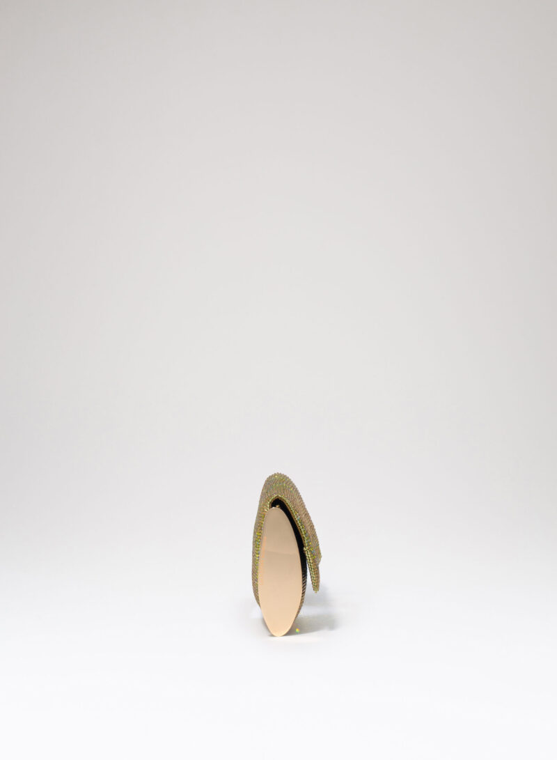 Impreziosita da due elementi ovali laterali, realizzata in crystal mesh e foderata in puro raso di seta organico,