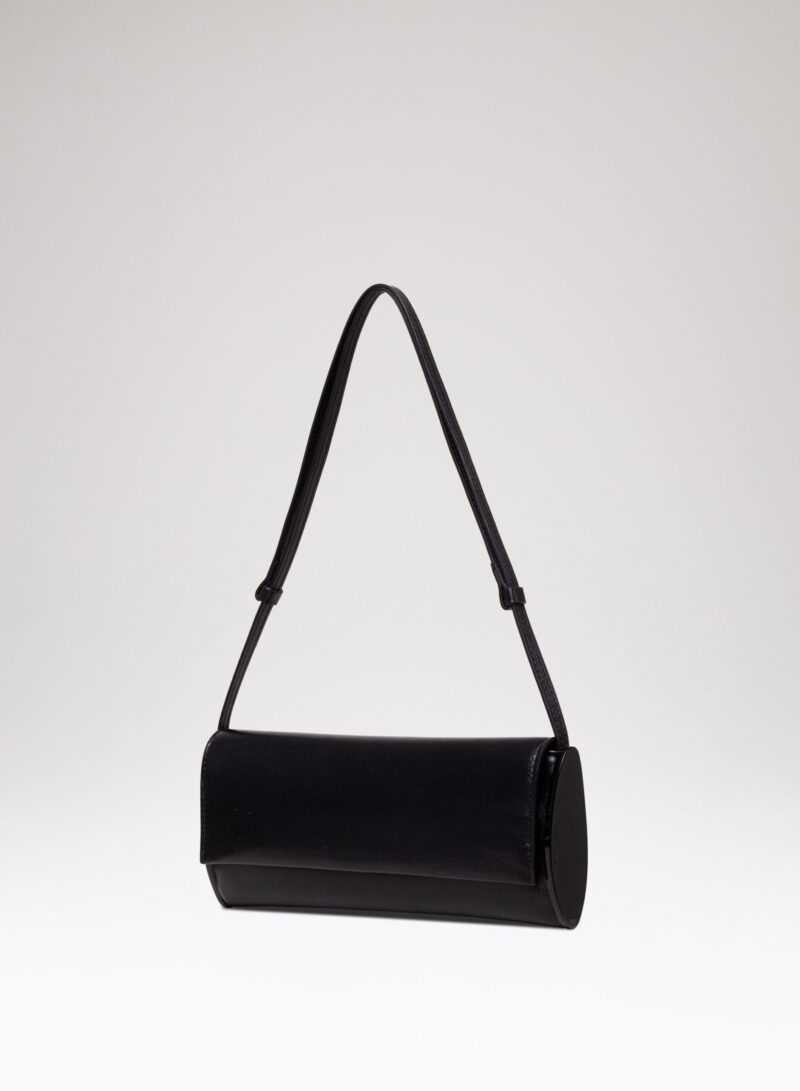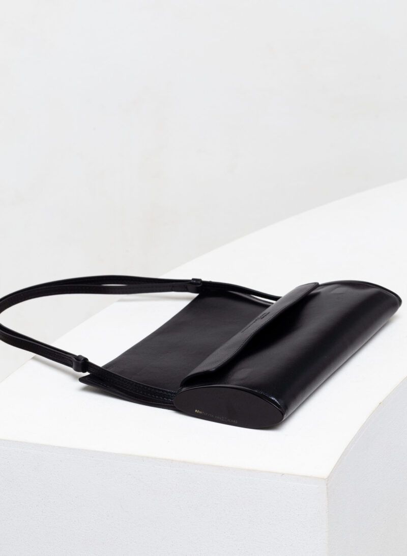 Impreziosita da due elementi ovali laterali, realizzata in pelle e foderata in puro raso di seta organico,