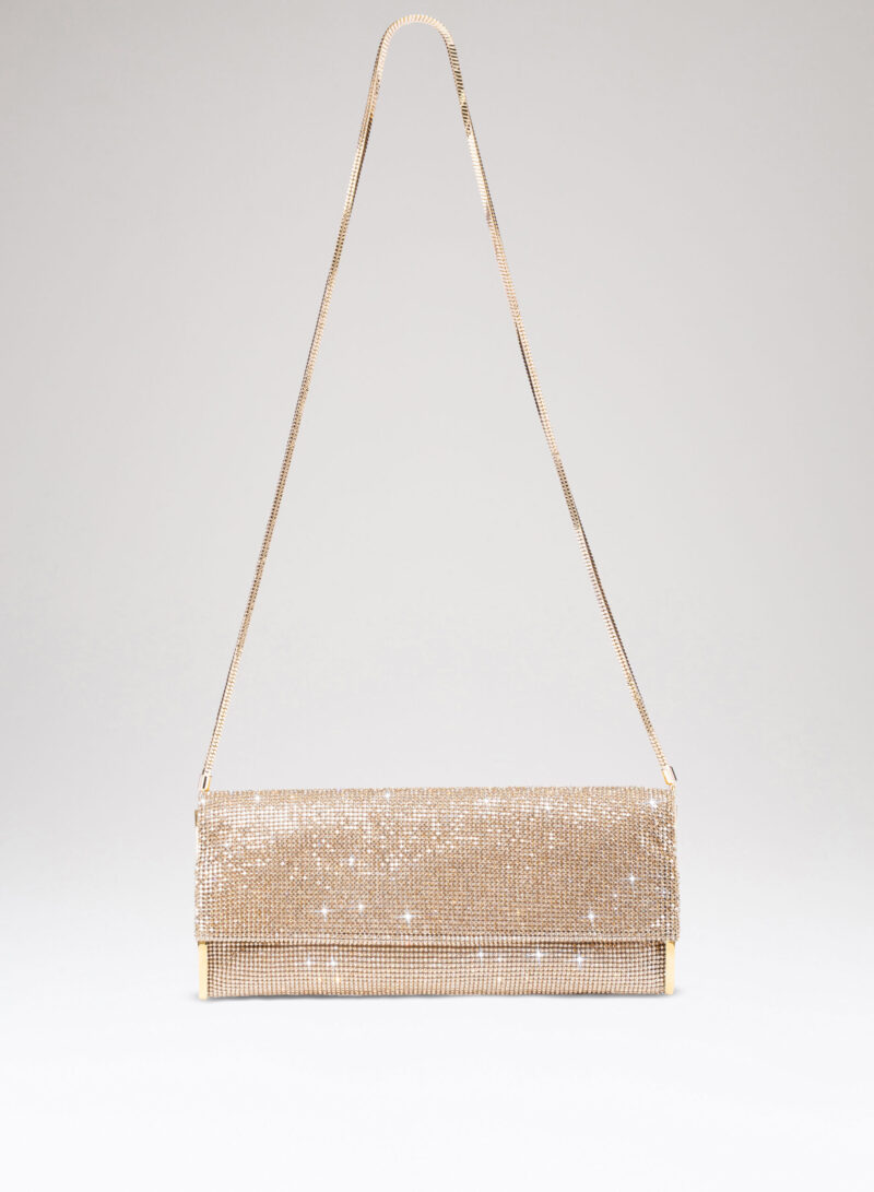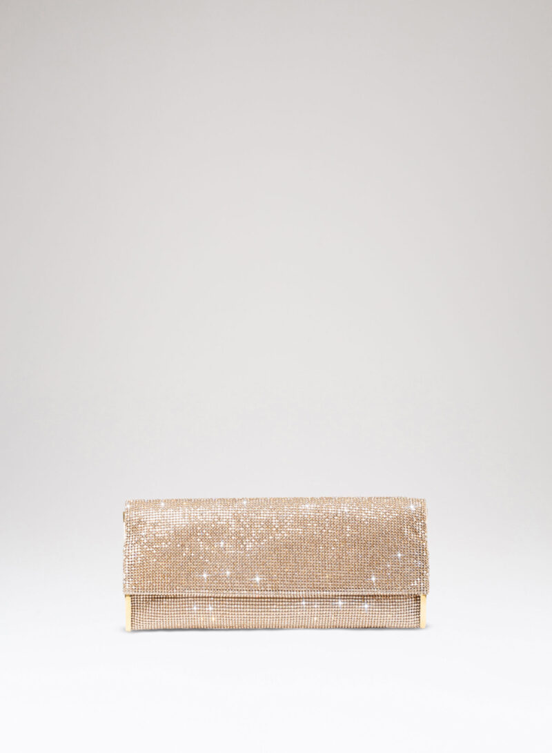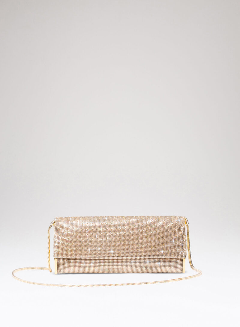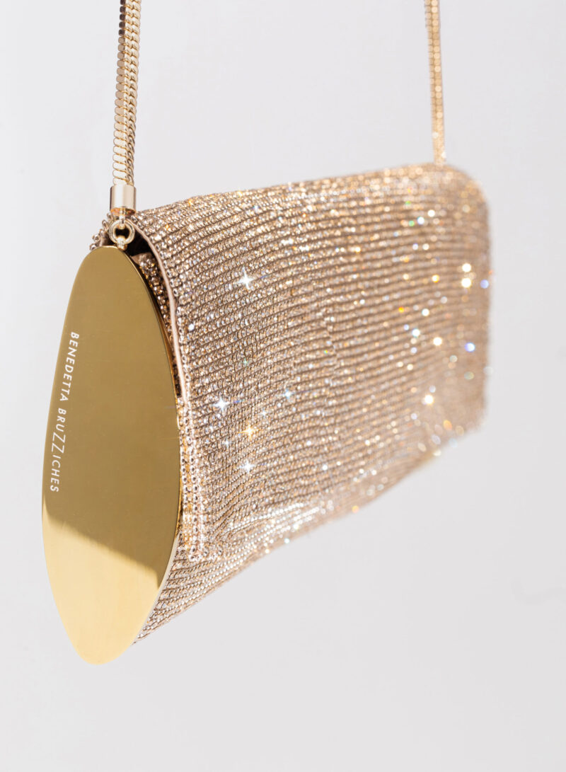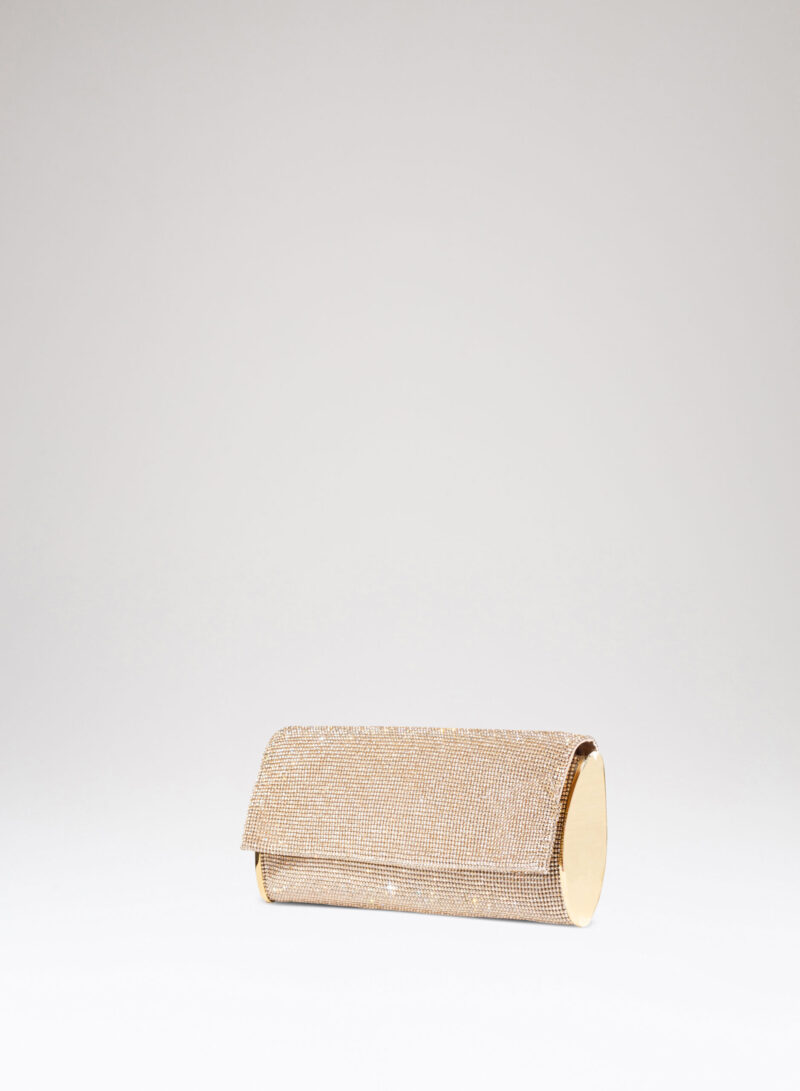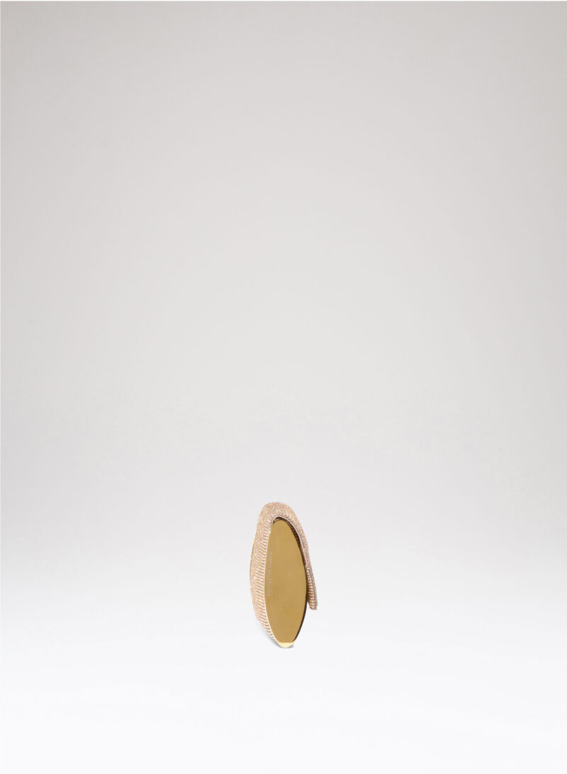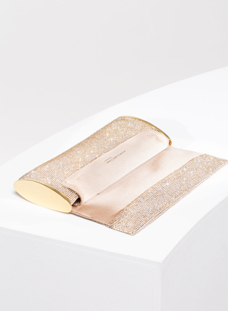 Impreziosita da due elementi ovali laterali, realizzata in crystal mesh e foderata in puro raso di seta organico,