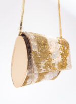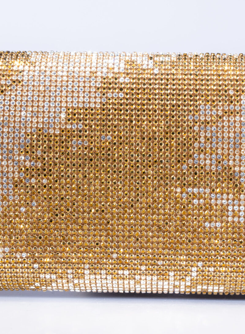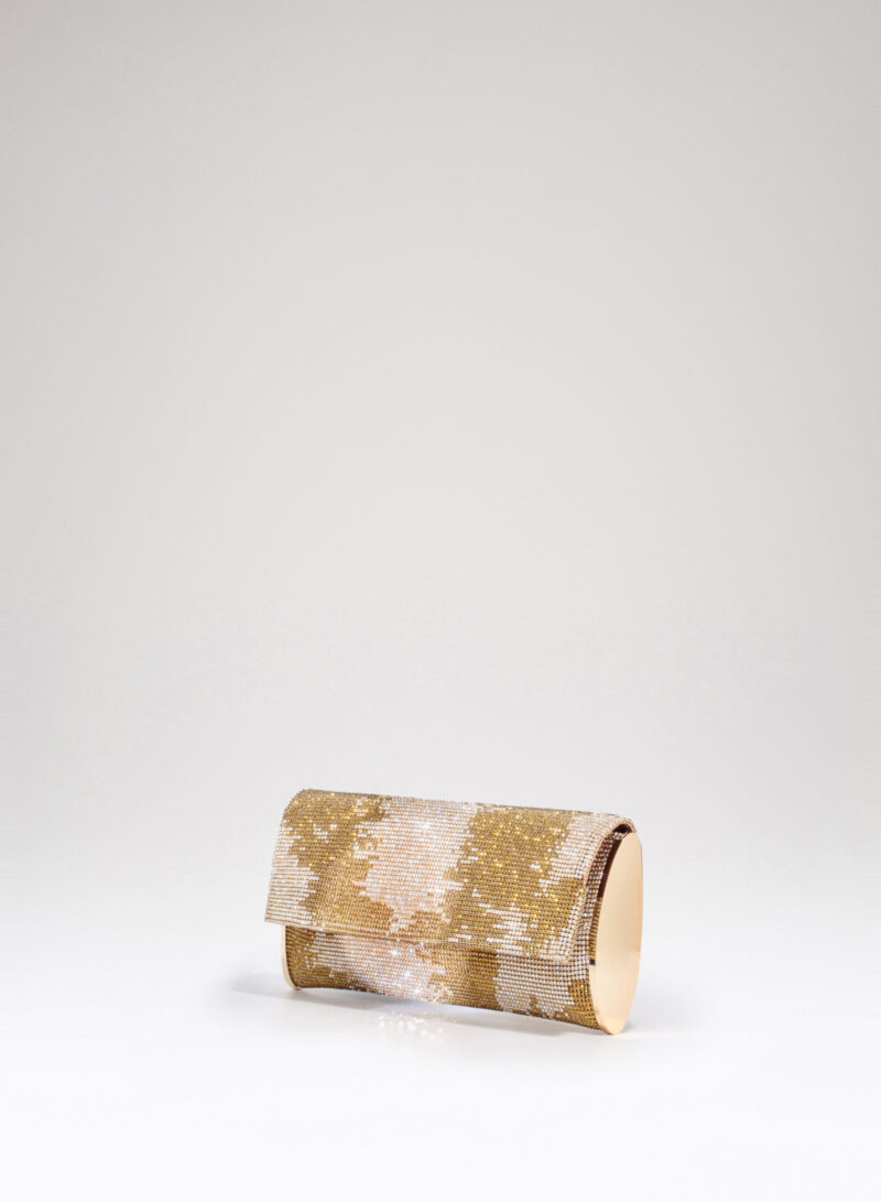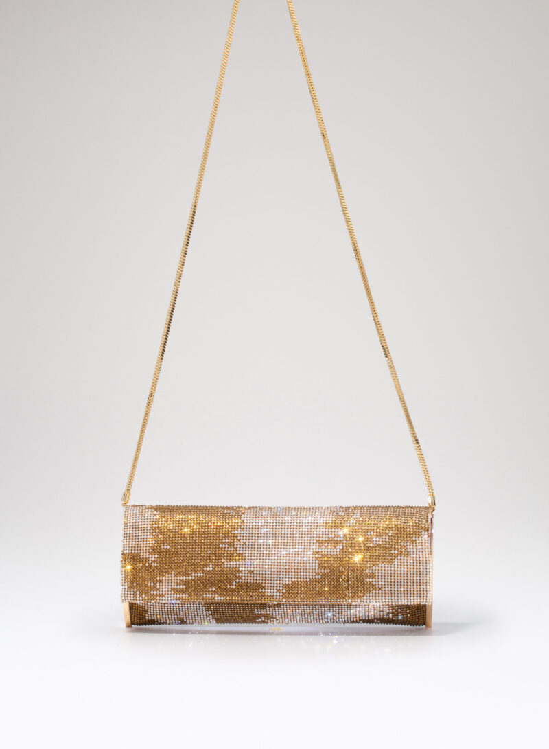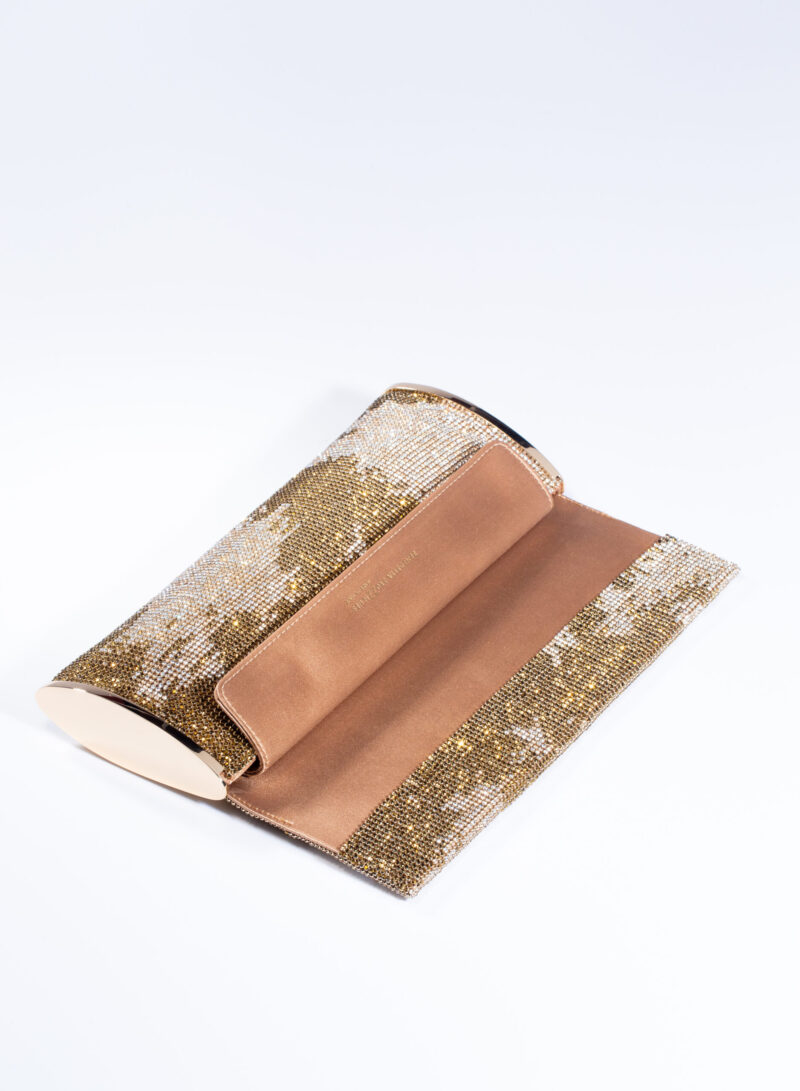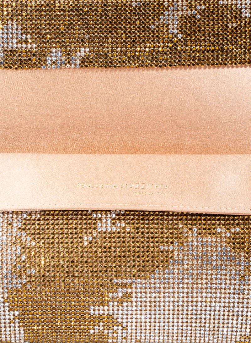Impreziosita da due elementi ovali laterali, realizzata in crystal mesh e foderata in puro raso di seta organico,
