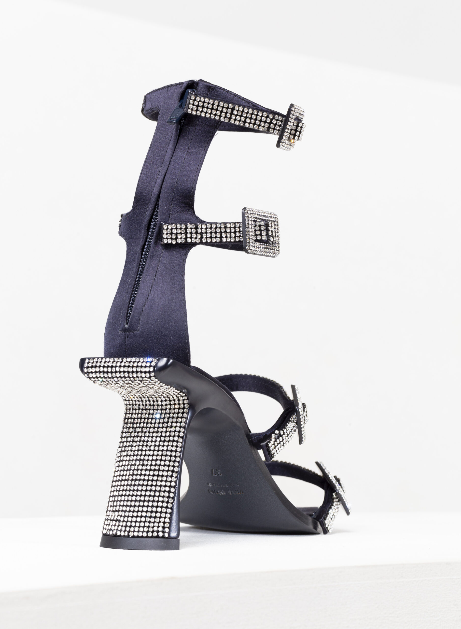 Lola è una versione 2.0 della nostra Ewa. Una party girl pronta a farti divertire nel miglior modo possibile. Il suo retro in raso di seta apribile con una zip e arricchito dagli iconici cinturini in crystal mesh, insieme al tacco scultura, dimostra quanto l’esagerazione sia un punto di forza.