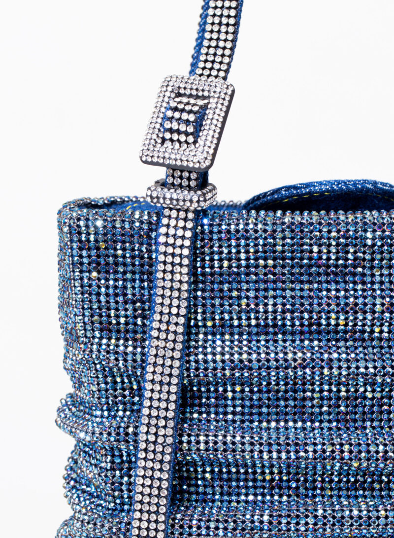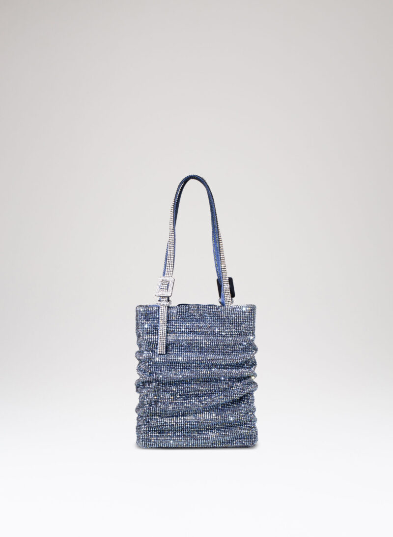 A questa donna divina è dedicata Lollo, la mini-tote con un’anima in denim ricoperta dal più prezioso crystal mesh.