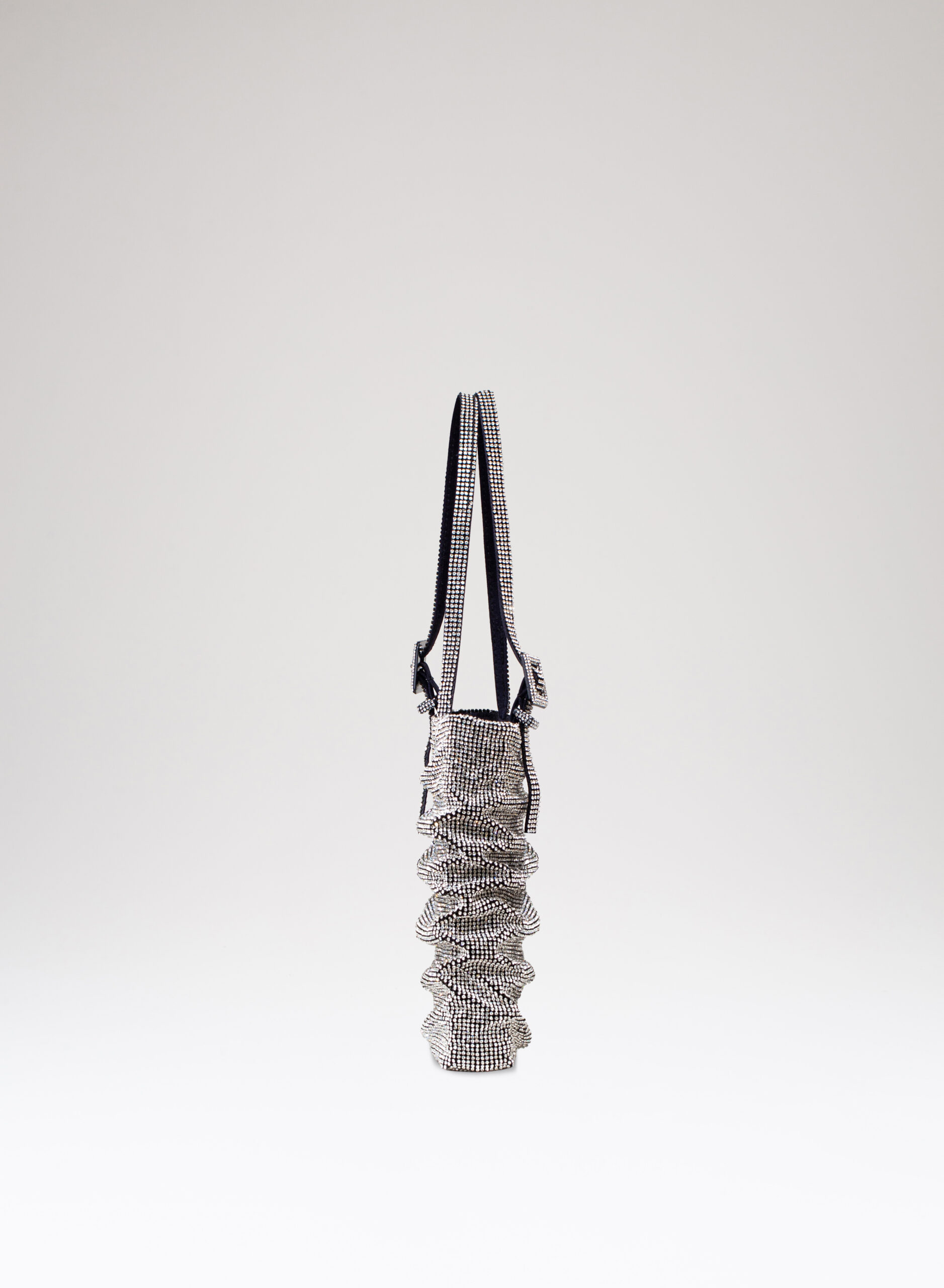 Dedicated to the world’s most beautiful woman, a majestic soul who has gracefully lived nearly a century, untouched by the passage of time, like a true Goddess. She embodies a multitude of talents: photographer, painter, sculptor, actress. Throughout her life, she insisted on being addressed by the name she was given at birth, for no other name could ever capture her essence. Her diminutive, a sensuous and melodious word that makes the tongue touch the palate twice when spoken, belongs to her and her alone. Lollo, our mini-tote featuring a pure silk satin soul adorned with the most precious crystal…