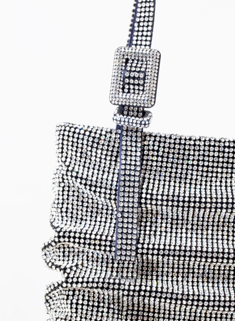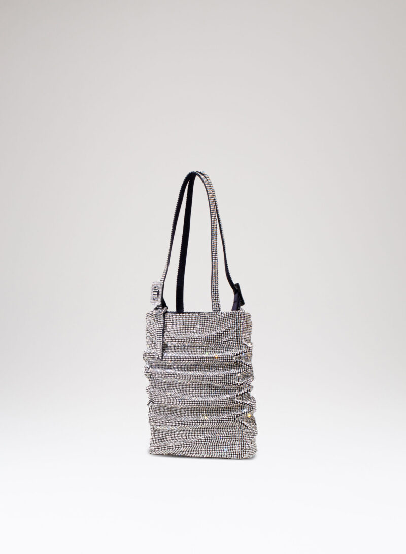 A questa donna divina è dedicata Lollo, la mini-tote con un’anima in raso di seta ricoperta dal più prezioso crystal mesh.