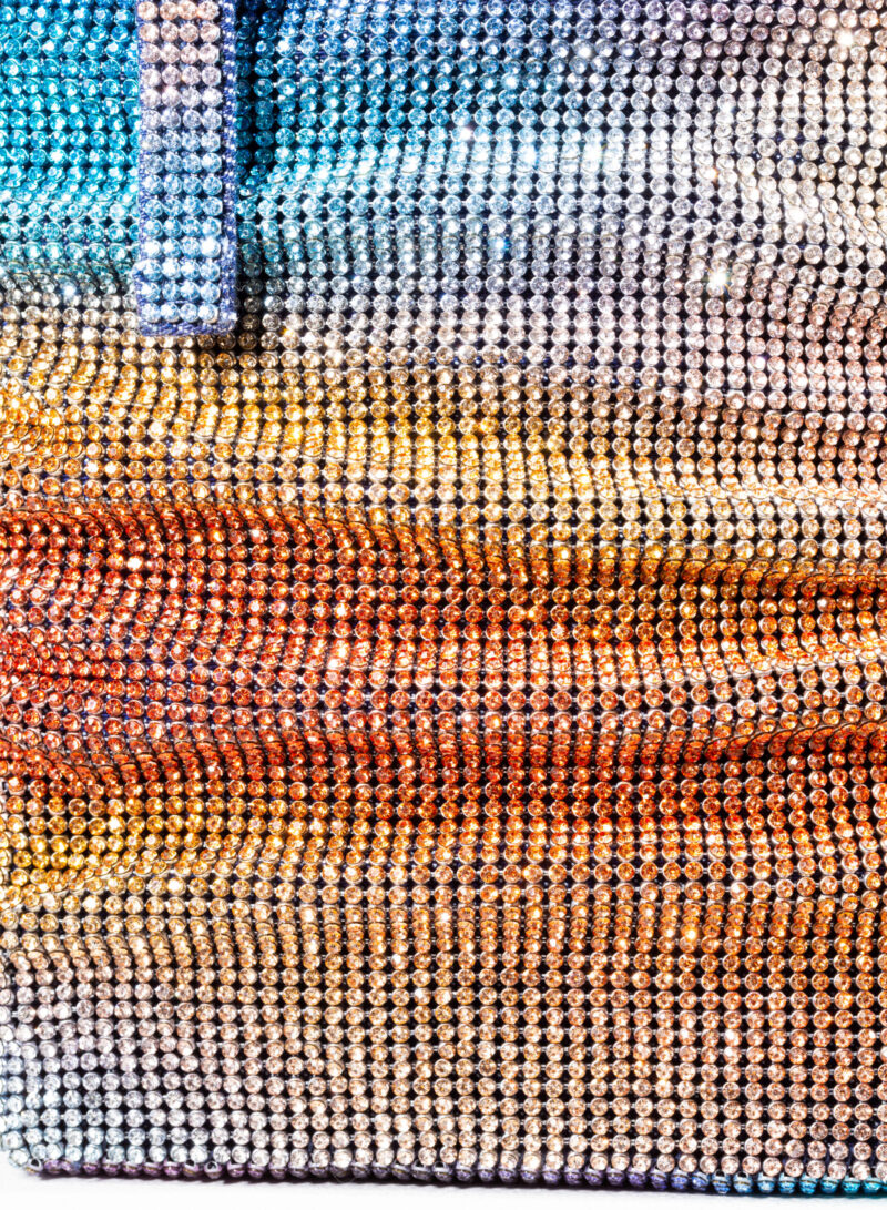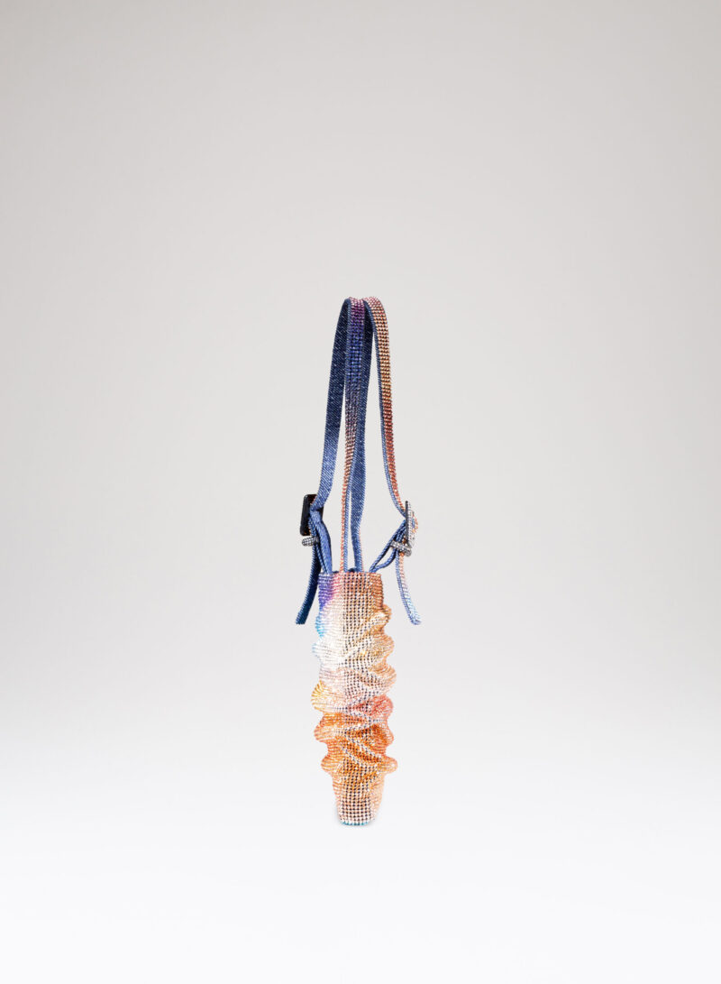 A questa donna divina è dedicata Lollo, la mini-tote con un’anima in denim ricoperta dal più prezioso crystal mesh.