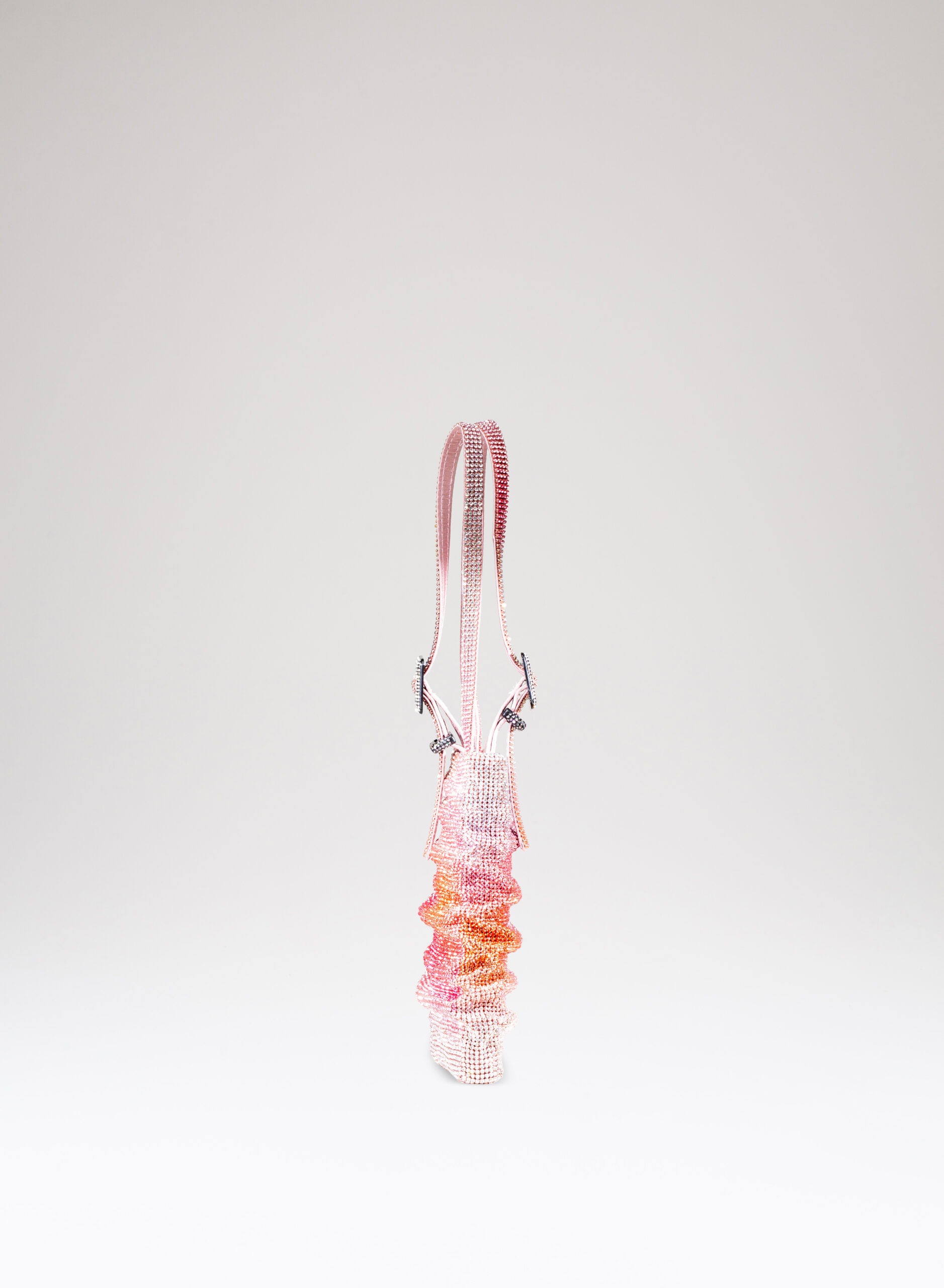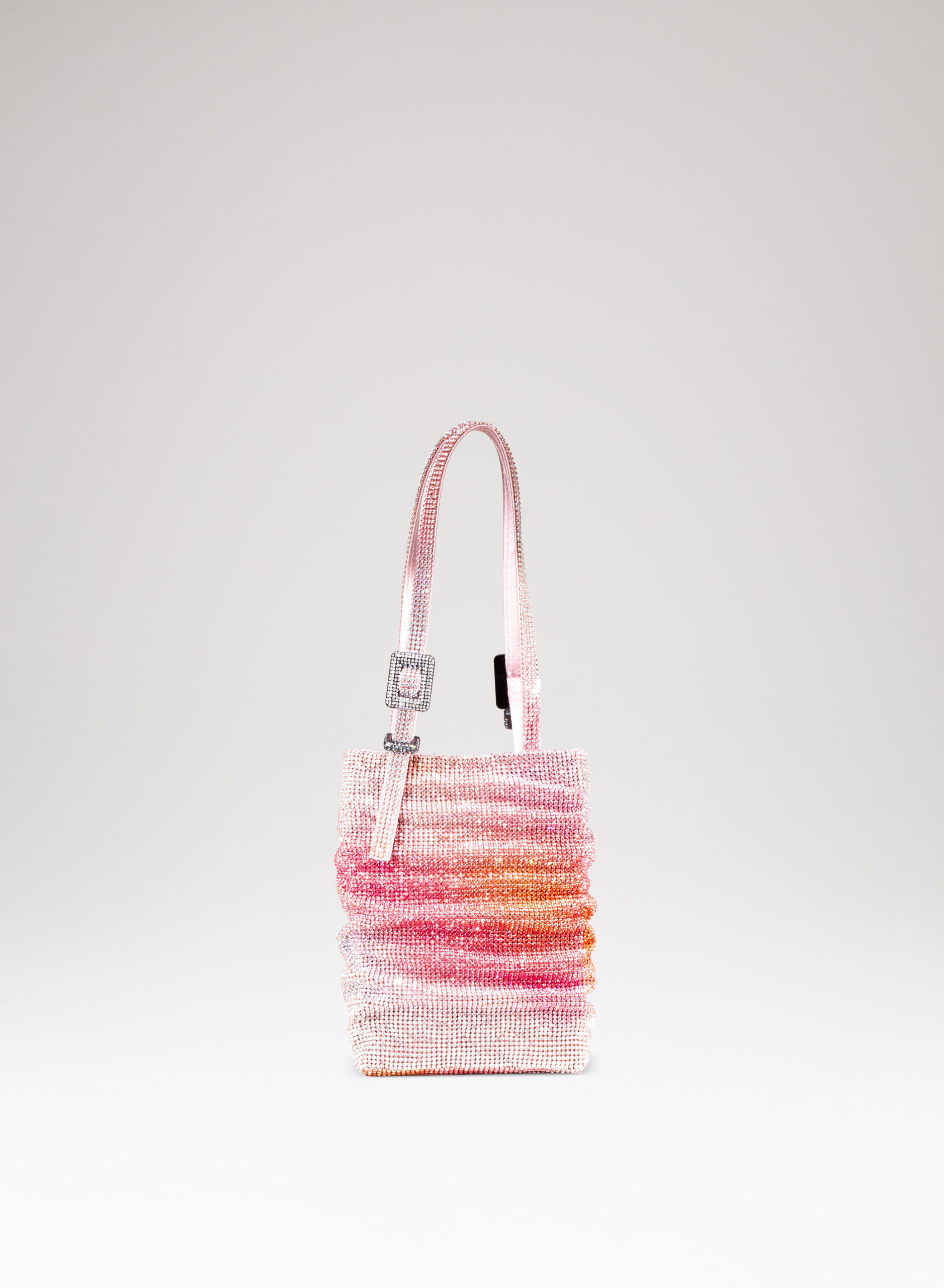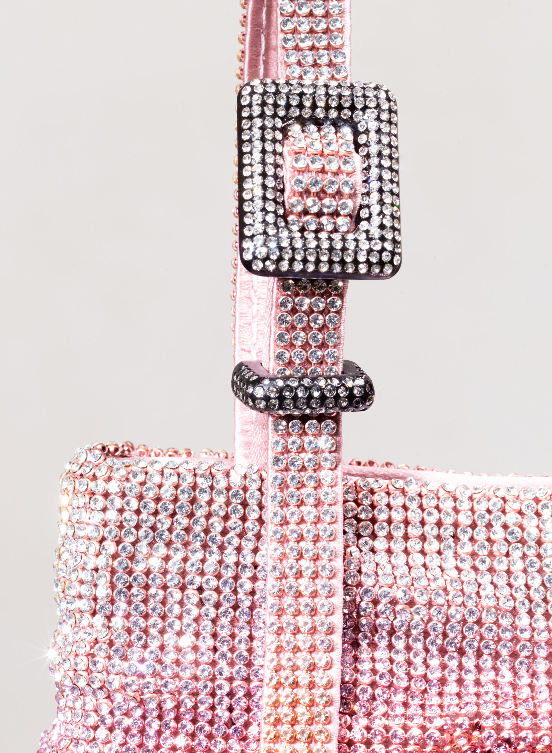 Dedicated to the world’s most beautiful woman, a majestic soul who has gracefully lived nearly a century, untouched by the passage of time, like a true Goddess. She embodies a multitude of talents: photographer, painter, sculptor, actress. Throughout her life, she insisted on being addressed by the name she was given at birth, for no other name could ever capture her essence. Her diminutive, a sensuous and melodious word that makes the tongue touch the palate twice when spoken, belongs to her and her alone. Lollo, our mini-tote featuring a pure silk satin soul adorned with the most precious crystal…