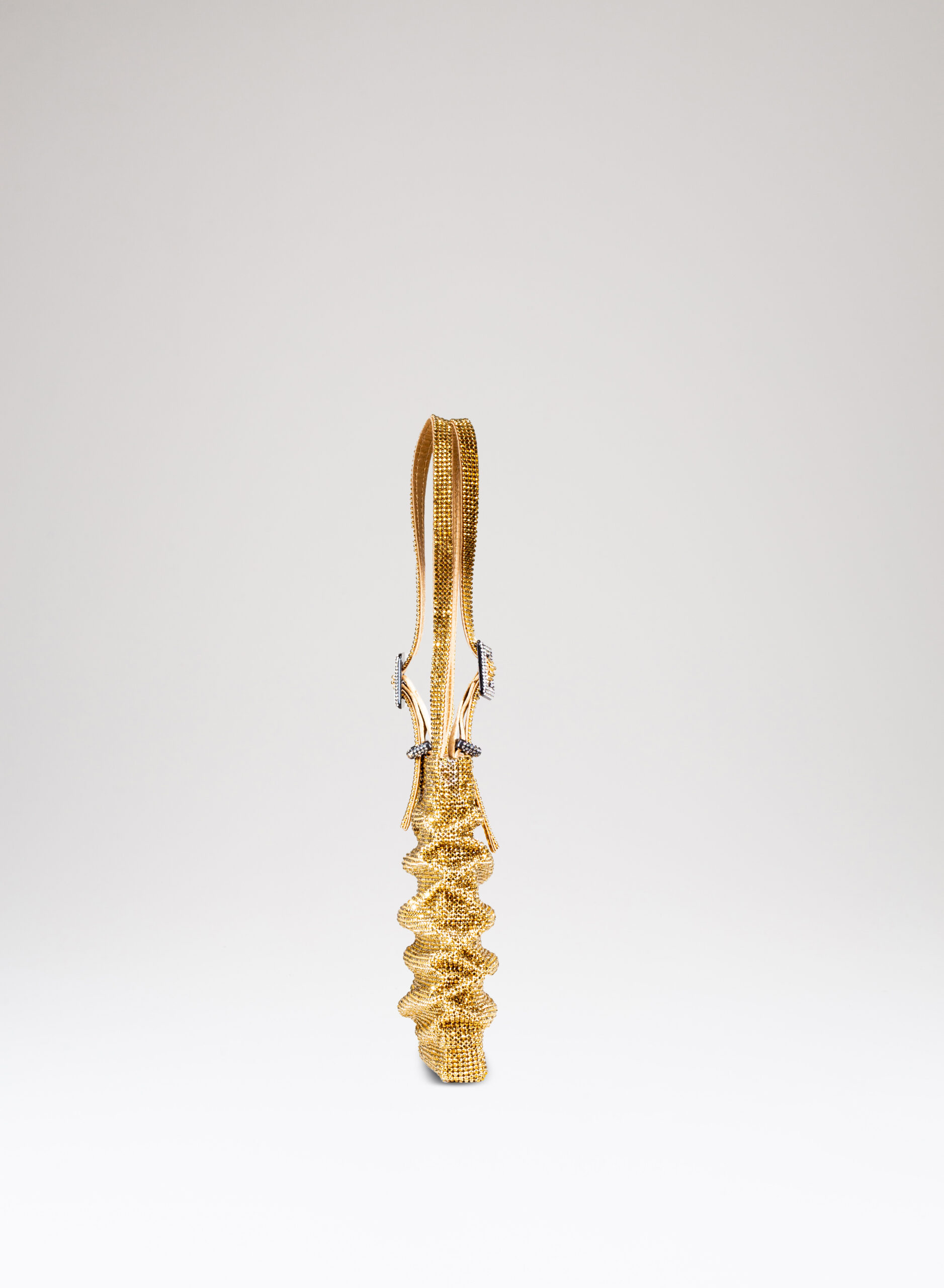 Dedicated to the world’s most beautiful woman, a majestic soul who has gracefully lived nearly a century, untouched by the passage of time, like a true Goddess. She embodies a multitude of talents: photographer, painter, sculptor, actress. Throughout her life, she insisted on being addressed by the name she was given at birth, for no other name could ever capture her essence. Her diminutive, a sensuous and melodious word that makes the tongue touch the palate twice when spoken, belongs to her and her alone. Lollo, our mini-tote featuring a pure silk satin soul adorned with the most precious crystal…