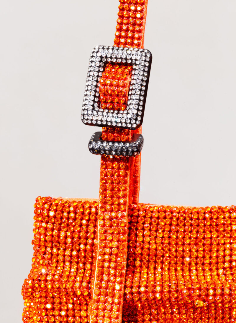 A questa donna divina è dedicata Lollo, la mini-tote con un’anima in raso di seta ricoperta dal più prezioso crystal mesh.