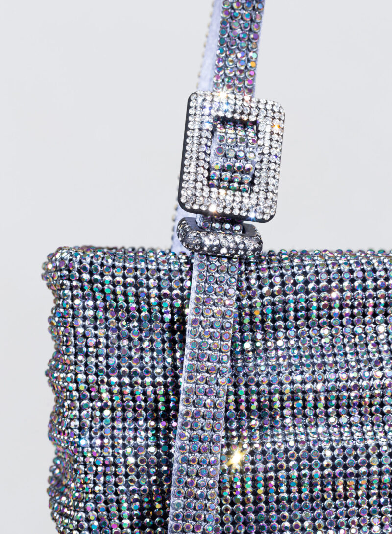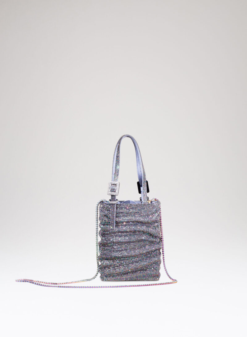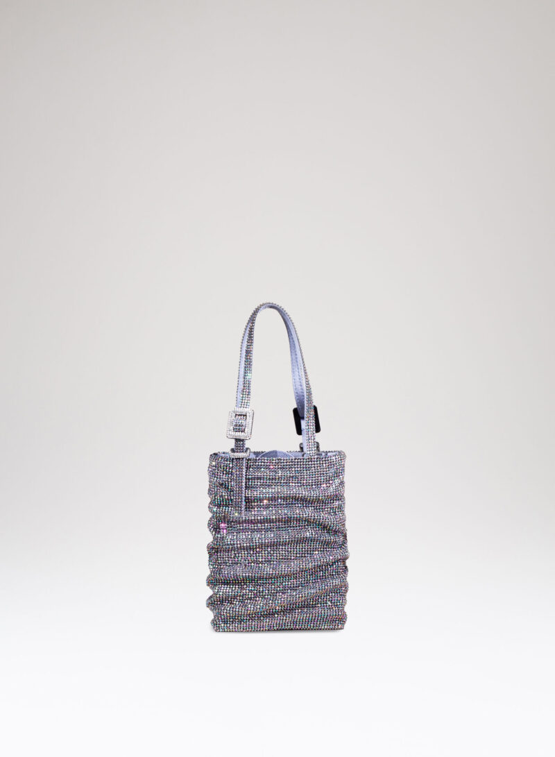 A questa donna divina è dedicata Lollo, la mini-tote con un’anima in raso di seta ricoperta dal più prezioso crystal mesh.