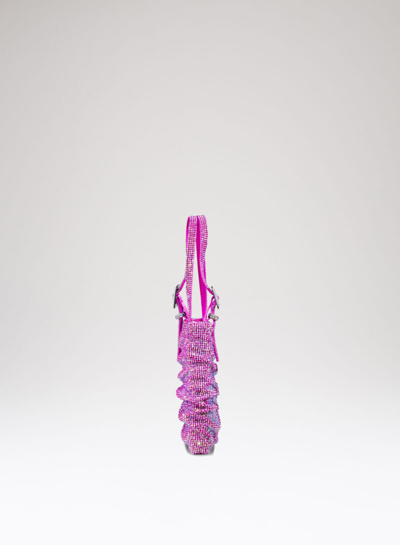 A questa donna divina è dedicata Lollo, la mini-tote con un’anima in raso di seta ricoperta dal più prezioso crystal mesh.