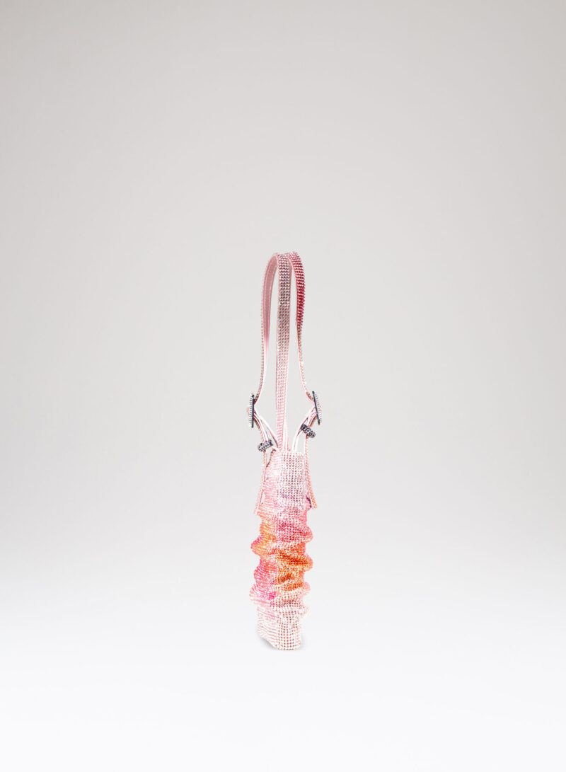A questa donna divina è dedicata Lollo, la mini-tote con un’anima in raso di seta ricoperta dal più prezioso crystal mesh.