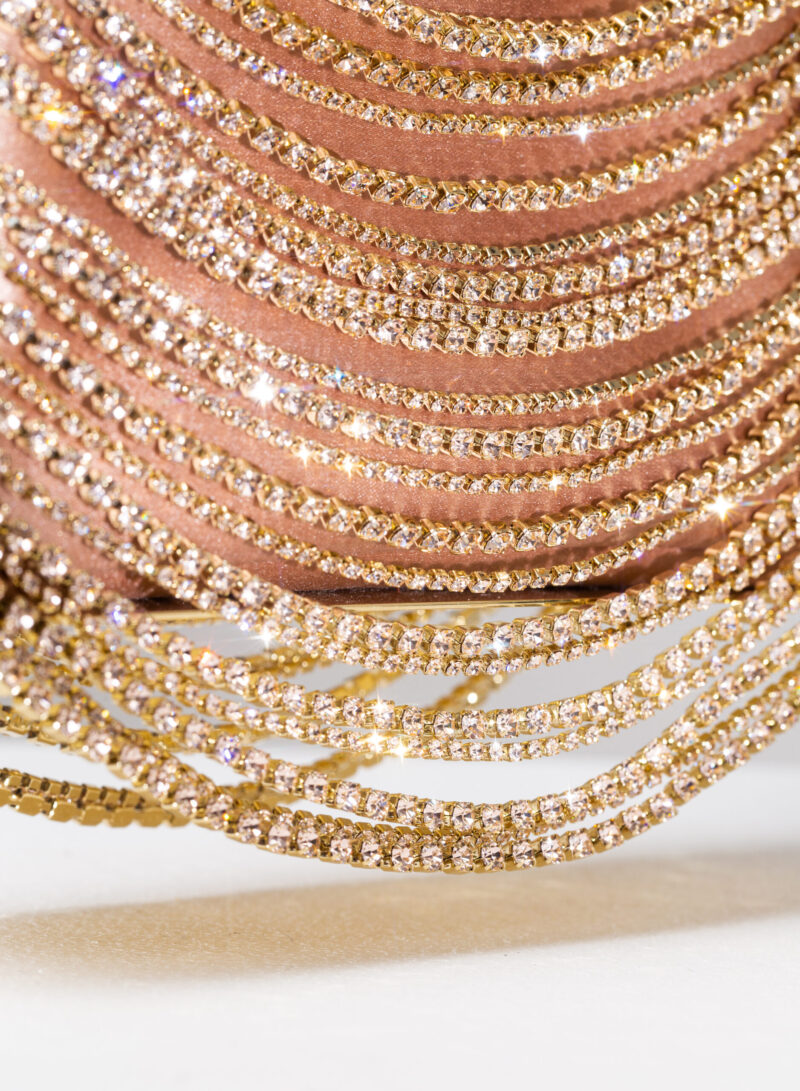 La luminosa trama di morbide catene di cristalli si lega delicatamente a una sottilissima cornice d’ottone, intenta a catturare e restituire la magia della luce delle cattedrali cistercensi al solstizio, quando ogni cosa è un incessante divenire di luce che reinventa il mondo.