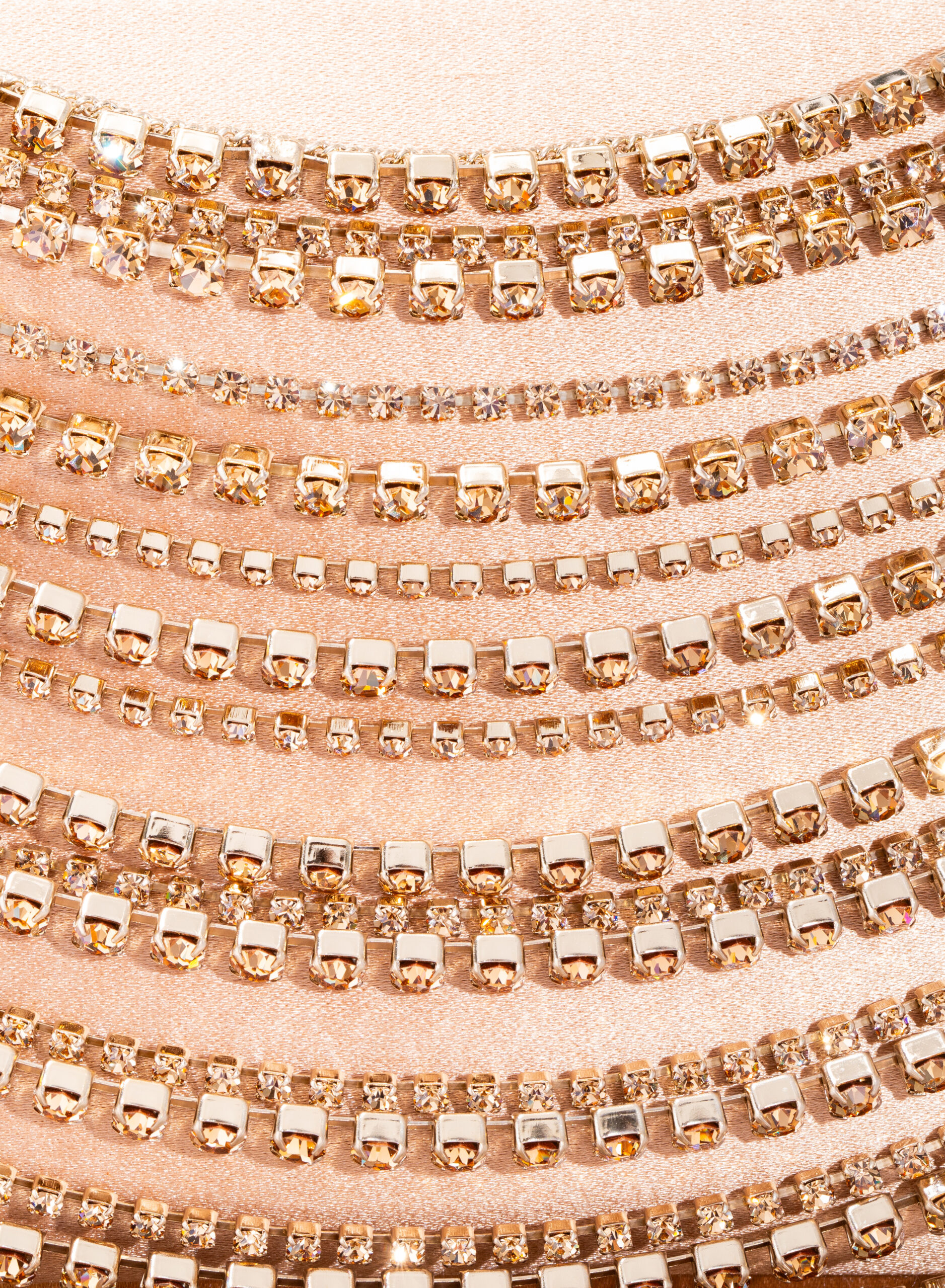There is an instant in which thoughts lose the shadowy consistency that weighs them down and hover light, gradually acquiring light and color. That’s how the instant before the glow from which the Universe was born must have looked. That’s how I feel an idea sparking. Made of light and little more, Lucia is lightweight and powerful at the same time, as a newborn idea. The luminous texture of soft chains of crystals delicately binds to a very thin brass frame, intent on capturing and restoring the magic of light of the Cistercian cathedrals to the solstice, when…
