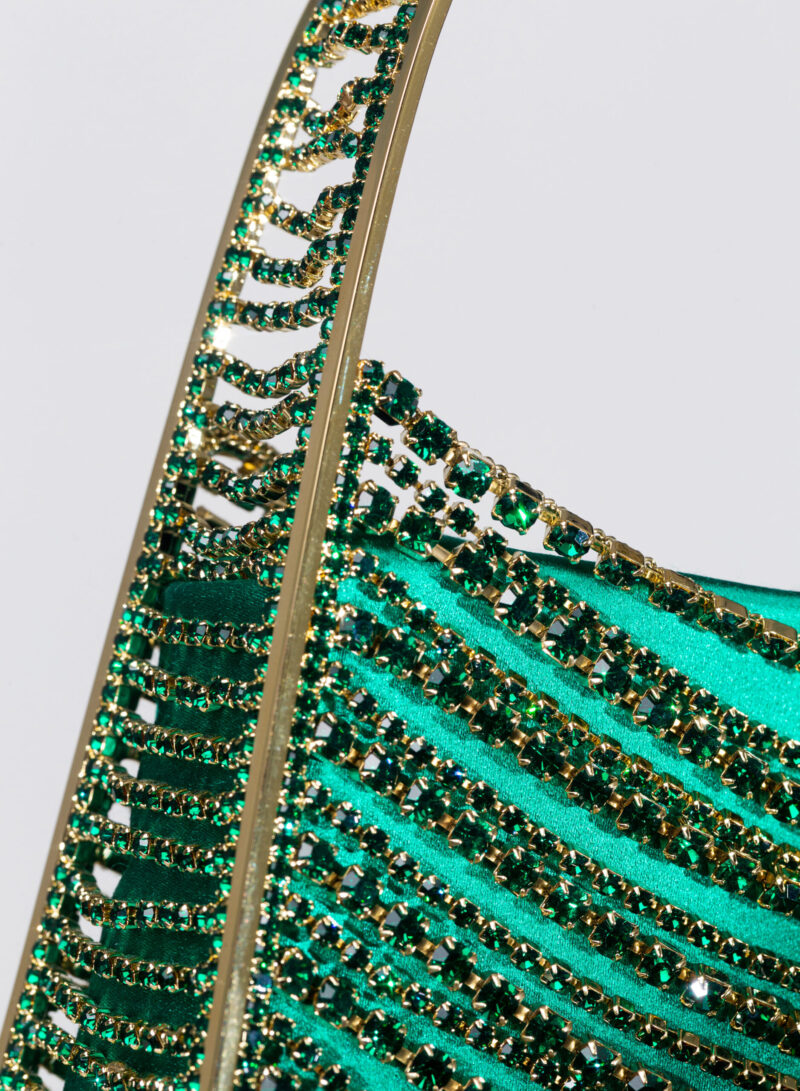 Lucia  si completa con una pochette in raso di seta biologica in cui riporre l’essenziale.
