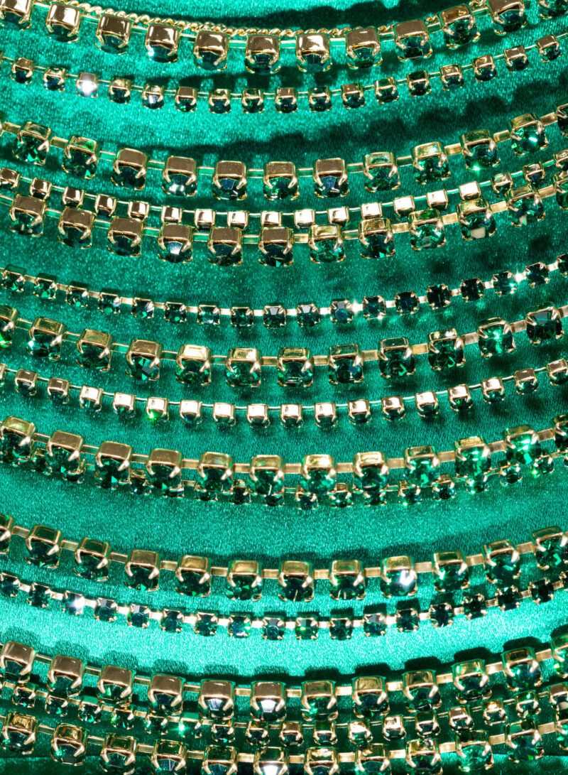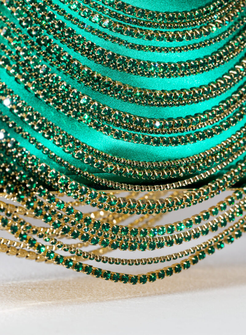 La luminosa trama di morbide catene di cristalli si lega delicatamente a una sottilissima cornice d’ottone,  intenta a  catturare e restituire la magia della luce delle cattedrali cistercensi al solstizio, quando ogni cosa è un incessante divenire di luce che reinventa il mondo.