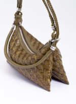 Compatta ma ben strutturata, è pensata per accompagnare chi viaggia leggera ma non rinuncia all’essenziale. Ha due scomparti separati, per tenere ogni cosa al suo posto, e un manico intrecciato a mano che può essere regolato: portata a spalla, a tracolla, oppure al braccio, si adatta al corpo e al momento.