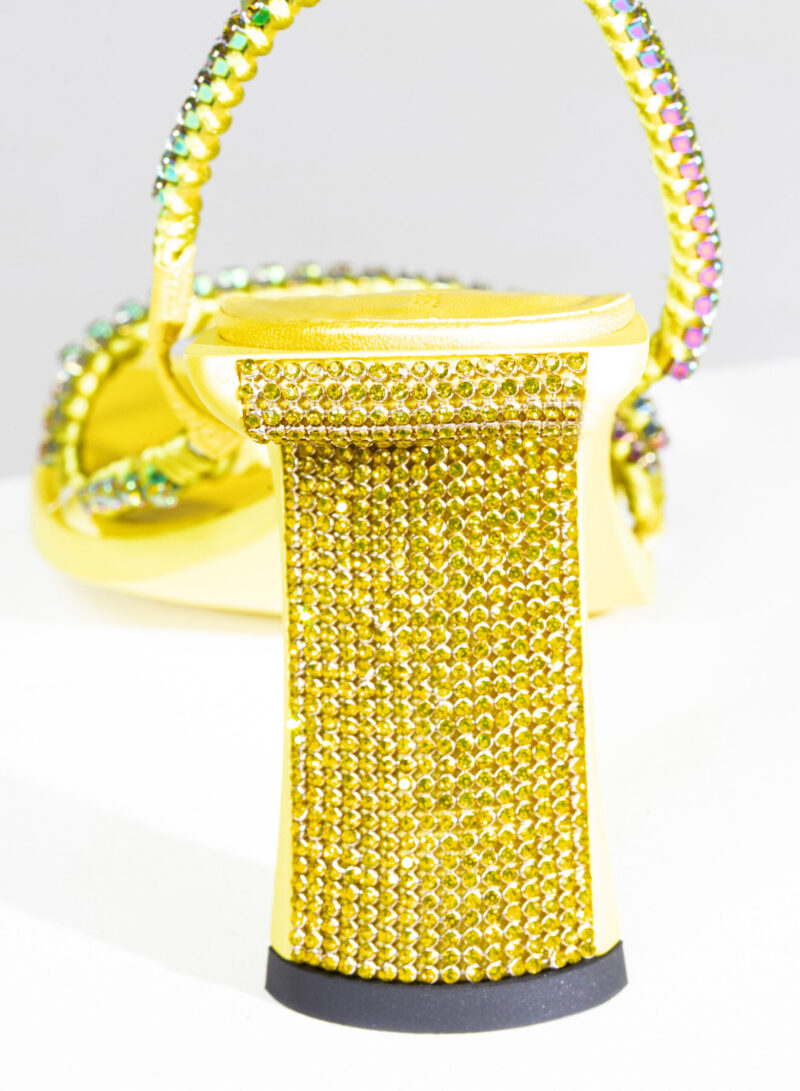 L’unicità del sandalo Simone va oltre all’ipnotico tacco ricoperto da crystal mesh.