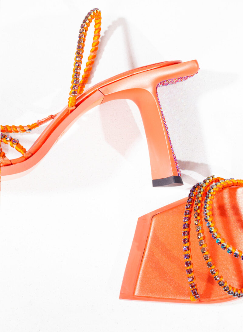 L’unicità del sandalo Simone va oltre all’ipnotico tacco ricoperto da crystal mesh.