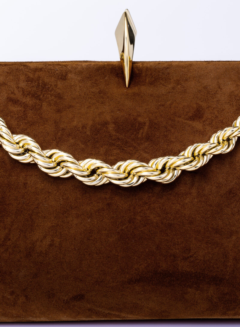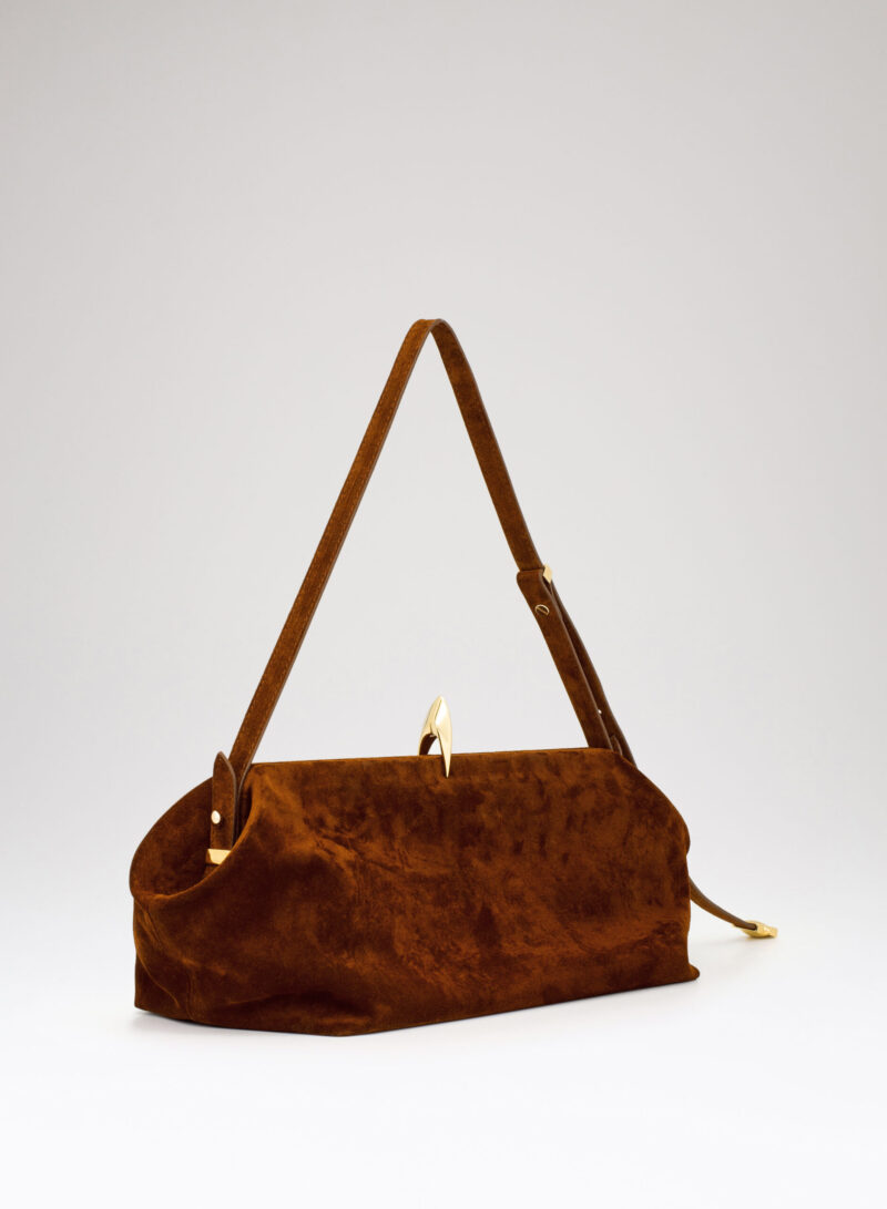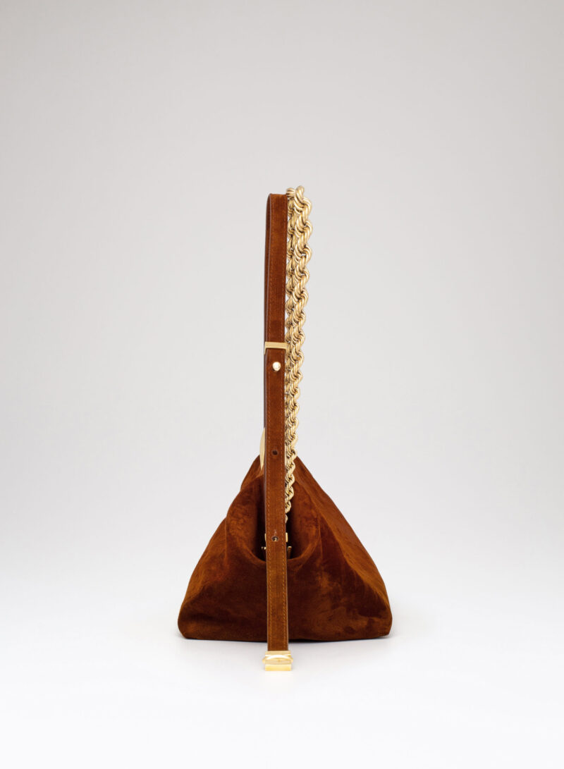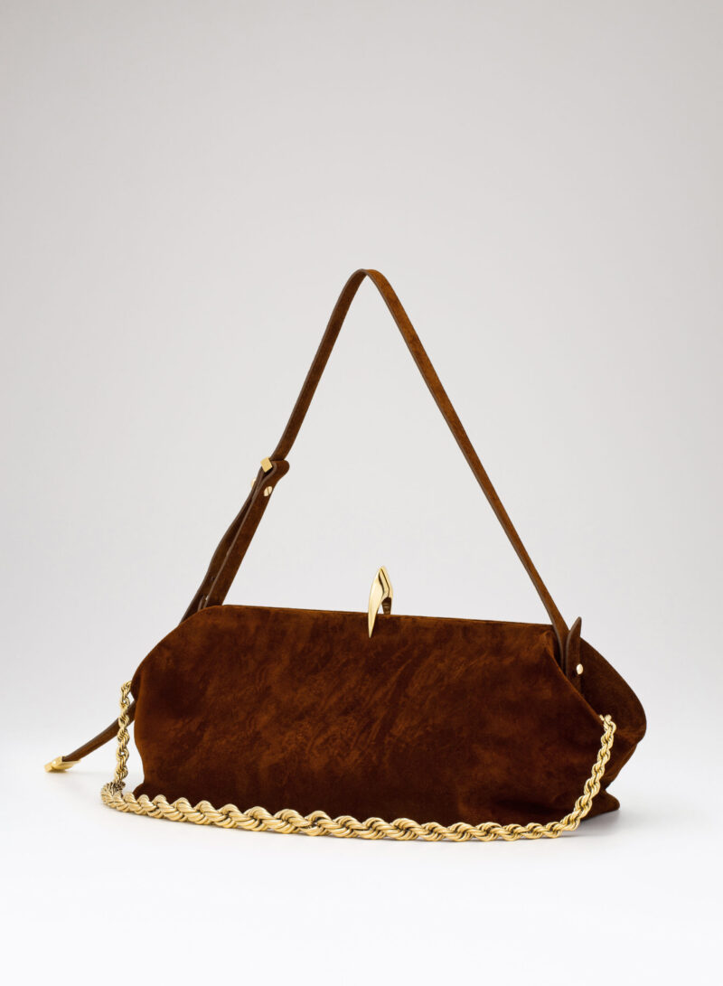 Questa è Sophia. Una borsa che nella raffinata catena in alluminio e la frame interna in metallo racconta echi di epoche passate, mentre nel corpo in pelle e la chiusura magnetica scultorea rivela il suo sguardo rivolto al futuro.