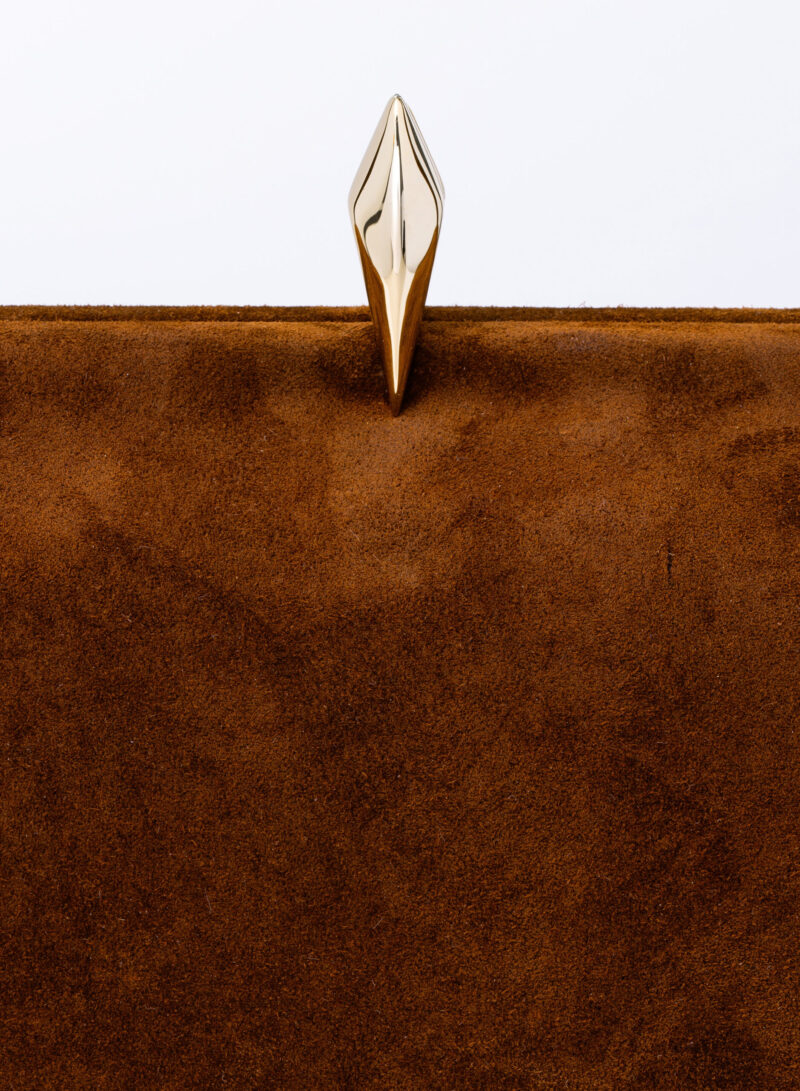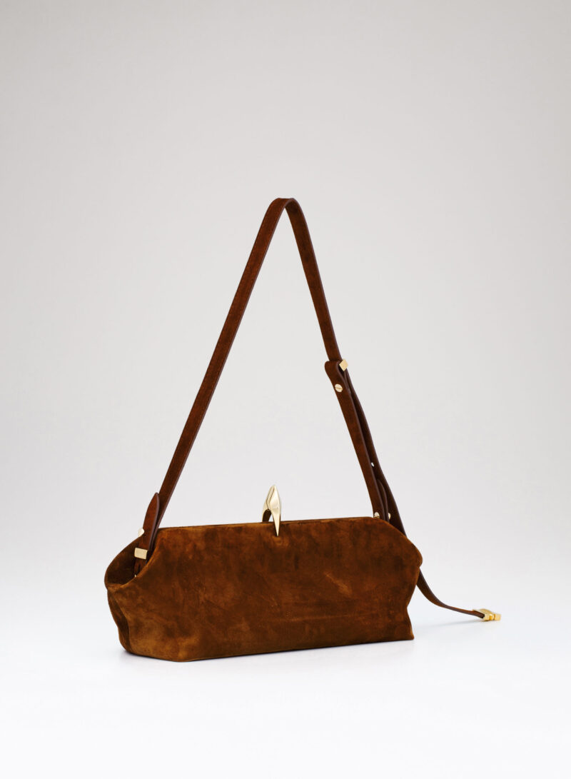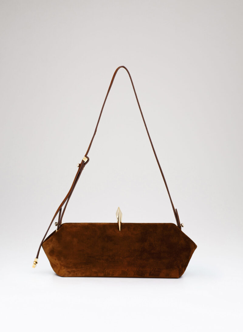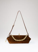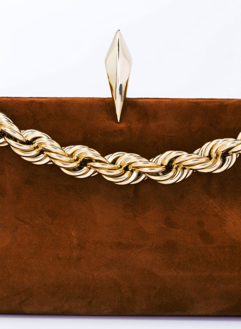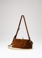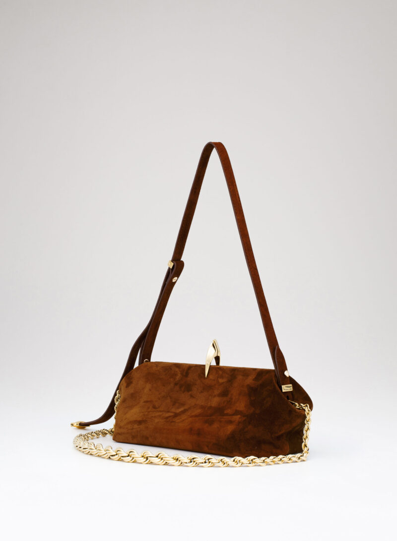 Questa è Sophia. Una borsa che nella raffinata catena in alluminio e la frame interna in metallo racconta echi di epoche passate, mentre nel corpo in pelle e la chiusura magnetica scultorea rivela il suo sguardo rivolto al futuro.