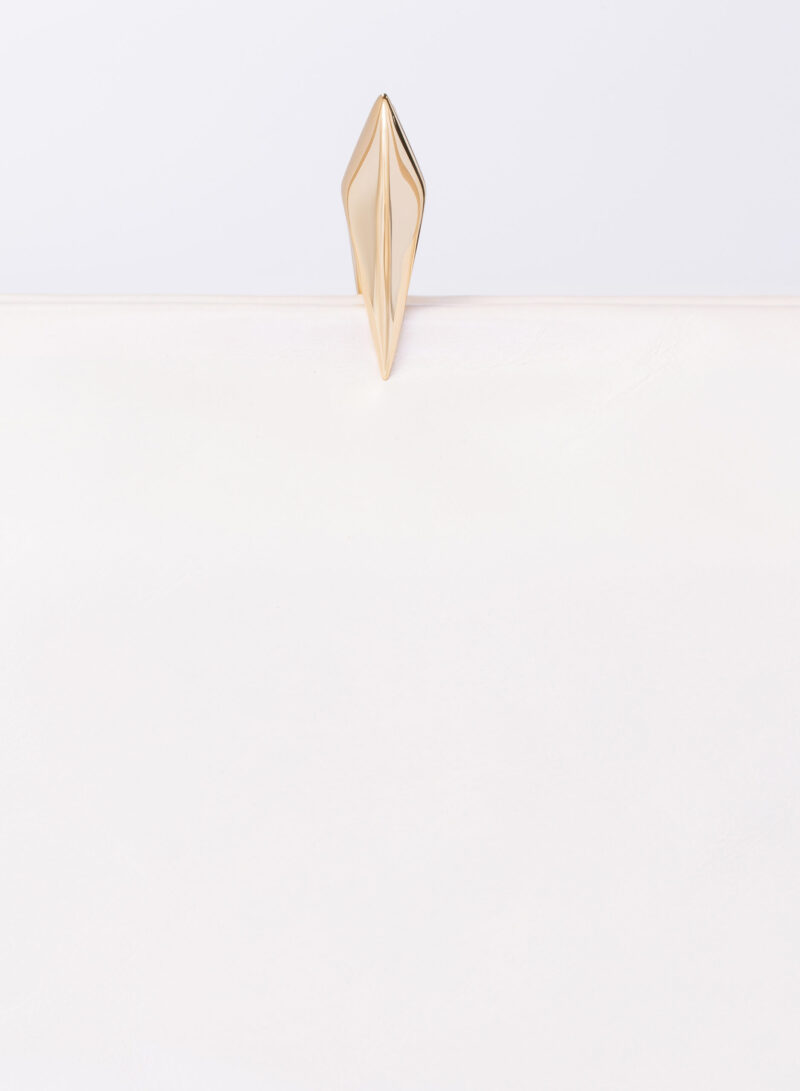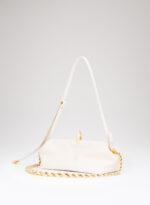 Questa è Sophia. Una borsa che nella raffinata catena in alluminio e la frame interna in metallo racconta echi di epoche passate, mentre nel corpo in pelle e la chiusura magnetica scultorea rivela il suo sguardo rivolto al futuro.