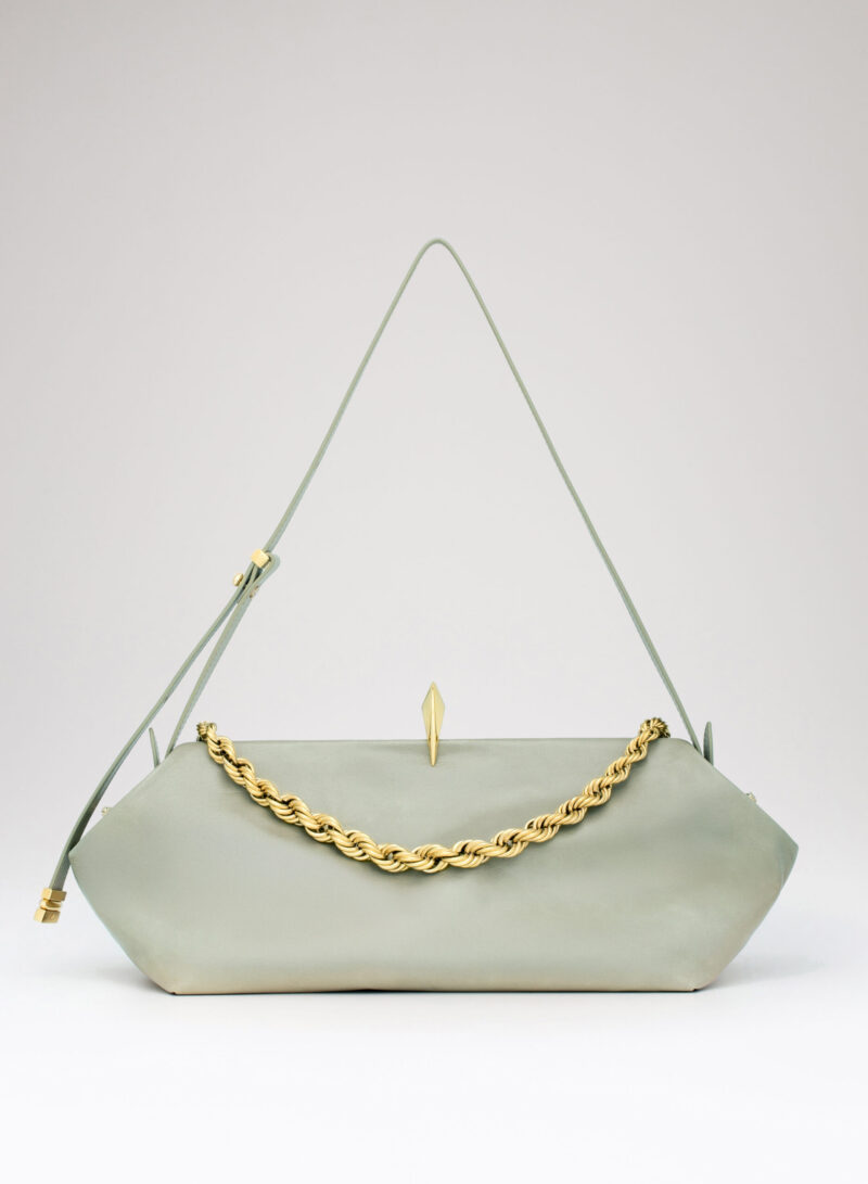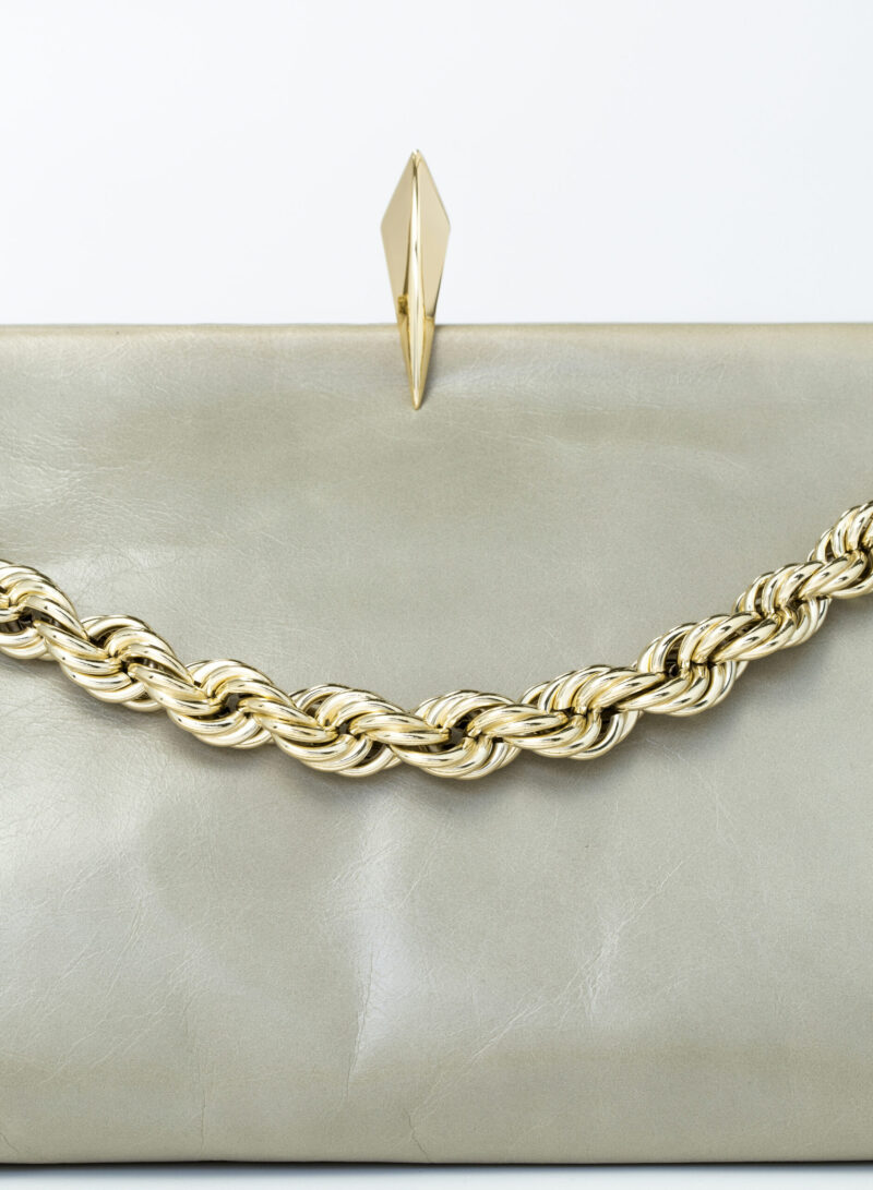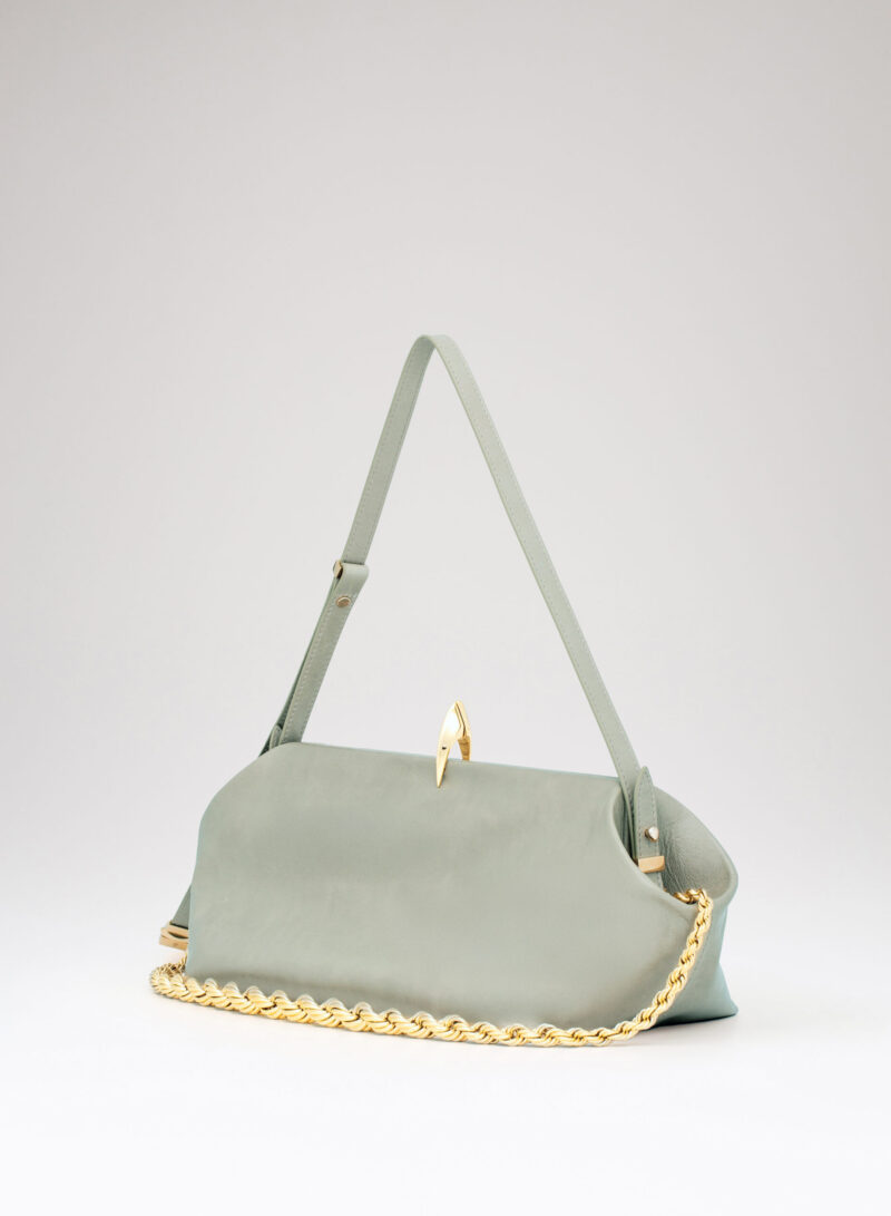 Questa è Sophia. Una borsa che nella raffinata catena in alluminio e la frame interna in metallo racconta echi di epoche passate, mentre nel corpo in pelle e la chiusura magnetica scultorea rivela il suo sguardo rivolto al futuro.