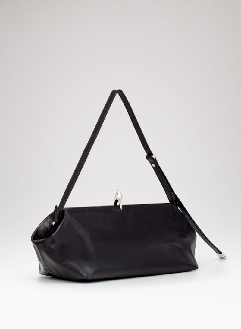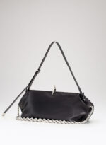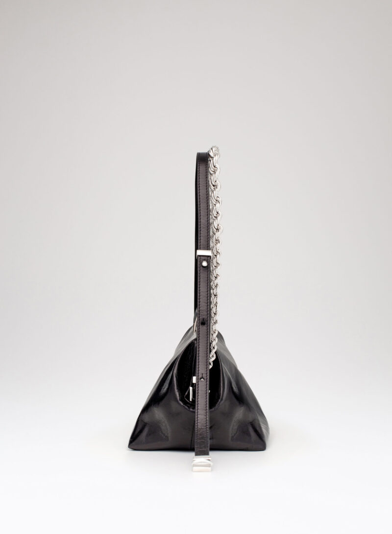Questa è Sophia. Una borsa che nella raffinata catena in alluminio e la frame interna in metallo racconta echi di epoche passate, mentre nel corpo in pelle e la chiusura magnetica scultorea rivela il suo sguardo rivolto al futuro.