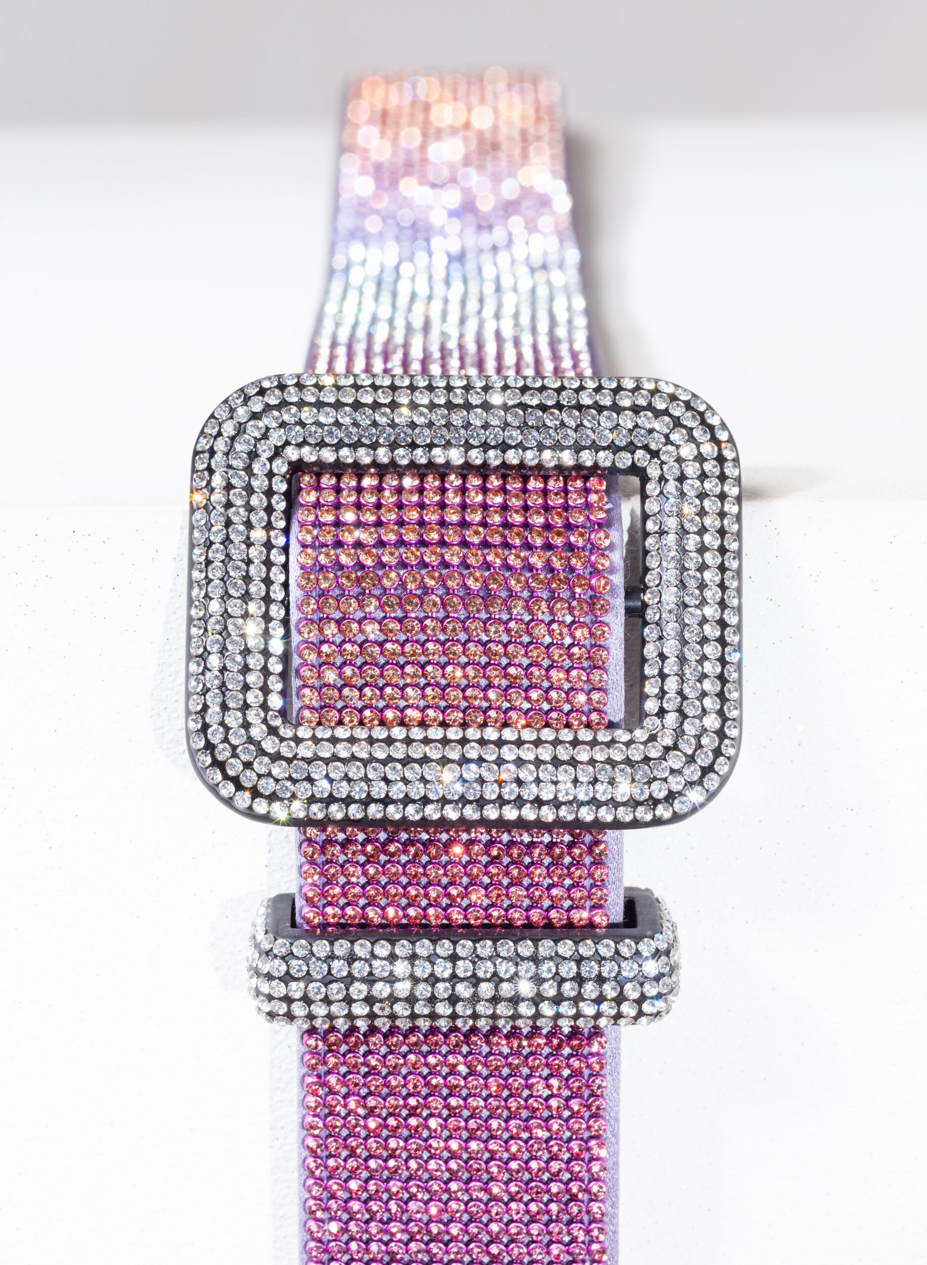 Like the stormy sea. Thus the seduction of a woman is offered: extremely risky and fascinating but often the only great feat that Fortune can ever grant to a man. It was said that Venus had a belt that allowed anyone to be enchanted, despite not possessing charm and beauty. Our Venus Belt has a color for every shade of feminine charm. Created by the skilled hands of the artisans of Caprarola covering a silk belt with a glittering metallic mesh of crystals.