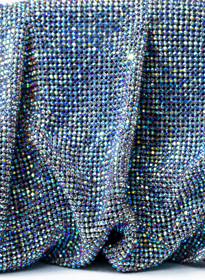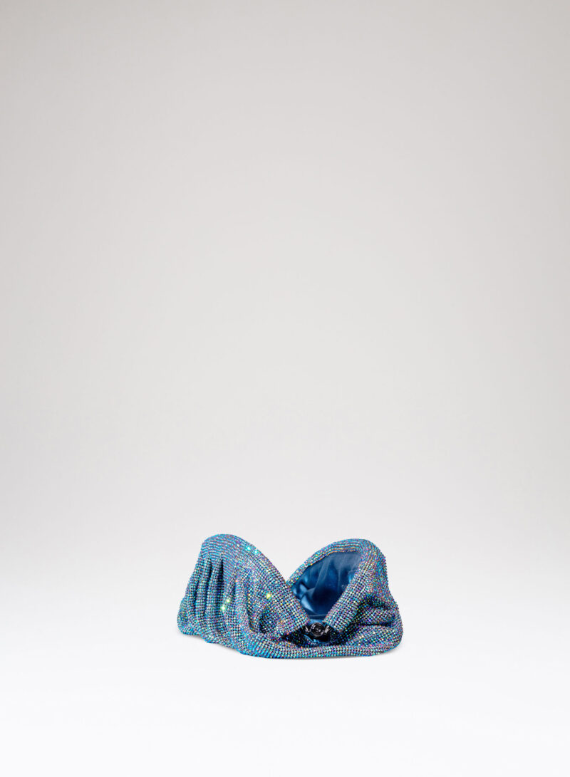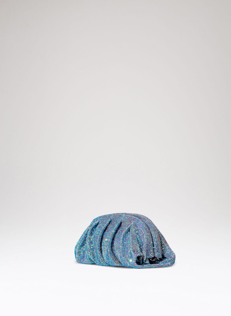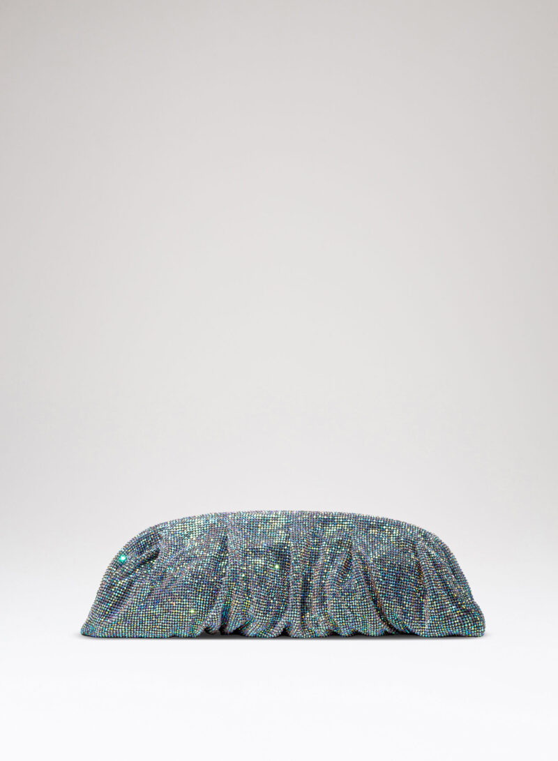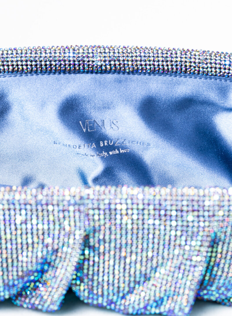 Dalle forme morbide e ondulate, Venus è realizzata con una rete di scintillanti cristalli cucita a mano con la stessa attenzione che si dedicherebbe a un gioiello. Al suo interno, una pochette in raso di seta è pronta ad accogliere il necessario per una serata fuori.